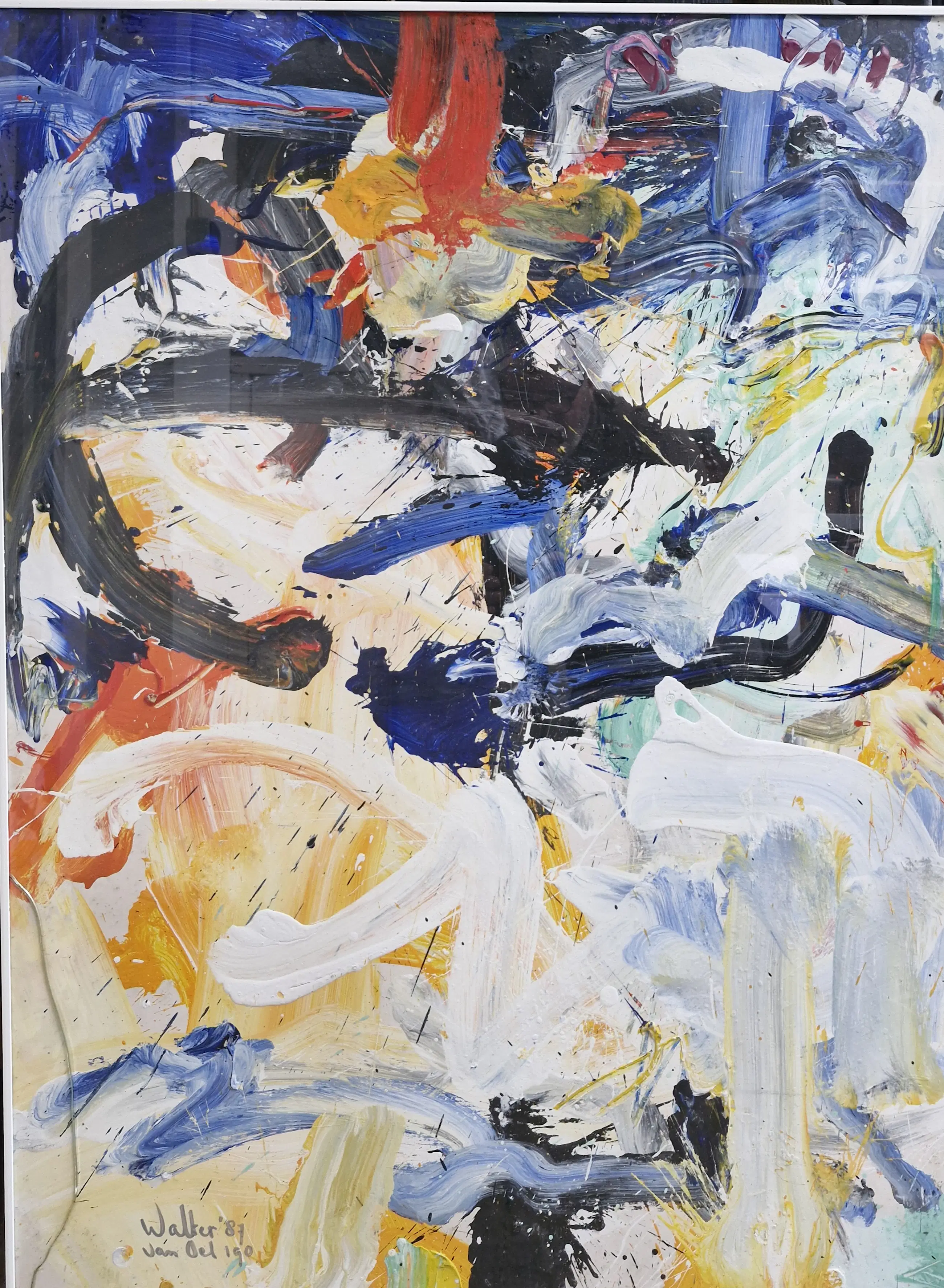 Helaas is de glasplaat van de lijst gebarsten en een paar kleine beschadigingen aan de verf