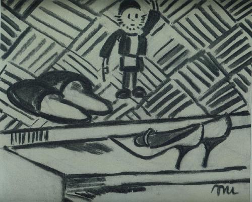 Walter Wellenstein - Wellenstein Pantoffelkasper monogr.Kohlezeichnung