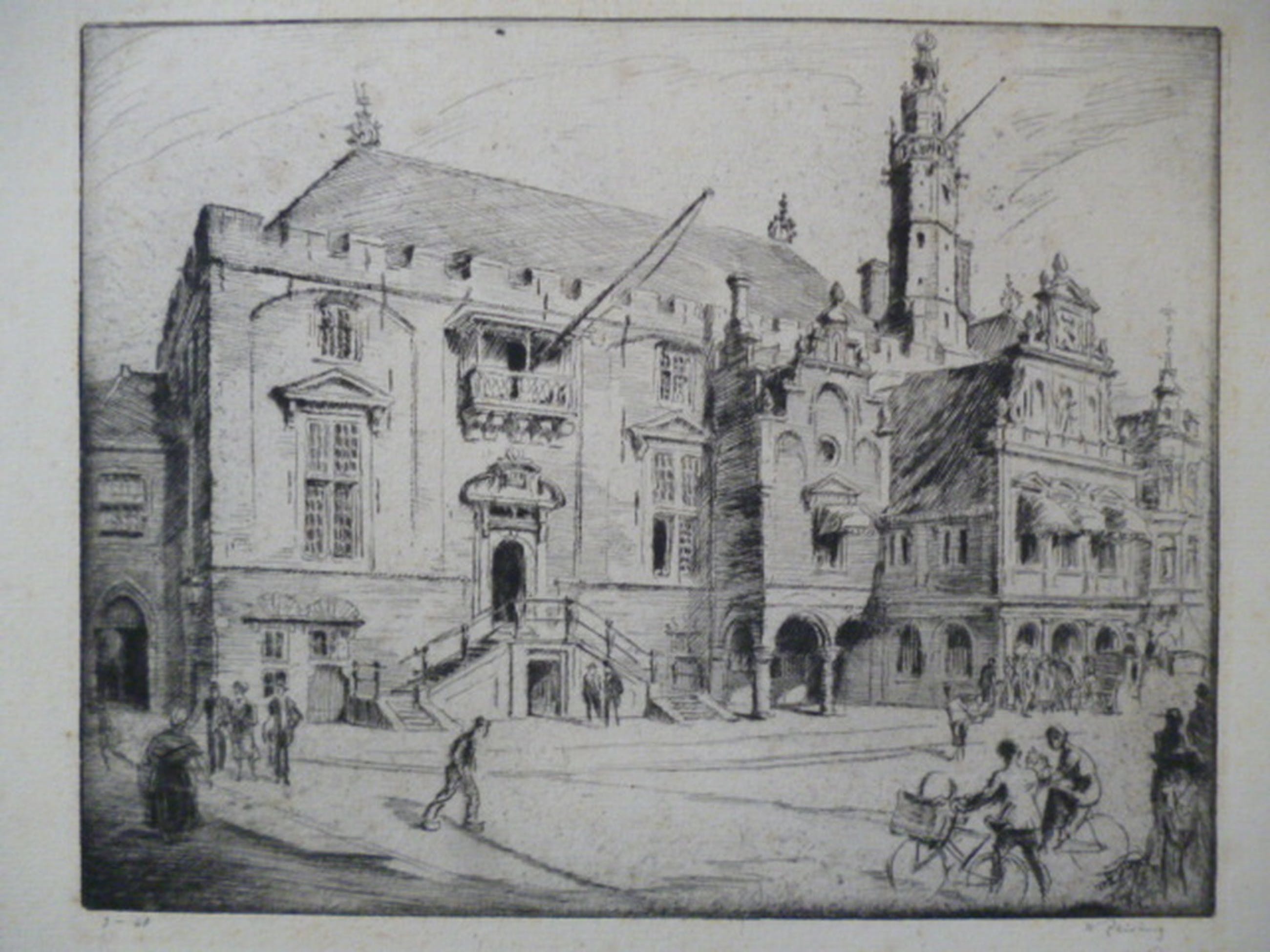 Ets uit een serie van 7 die Zeising maakte van Haarlem in opdracht van de beroemde Kunsthandel De Bois te Haarlem