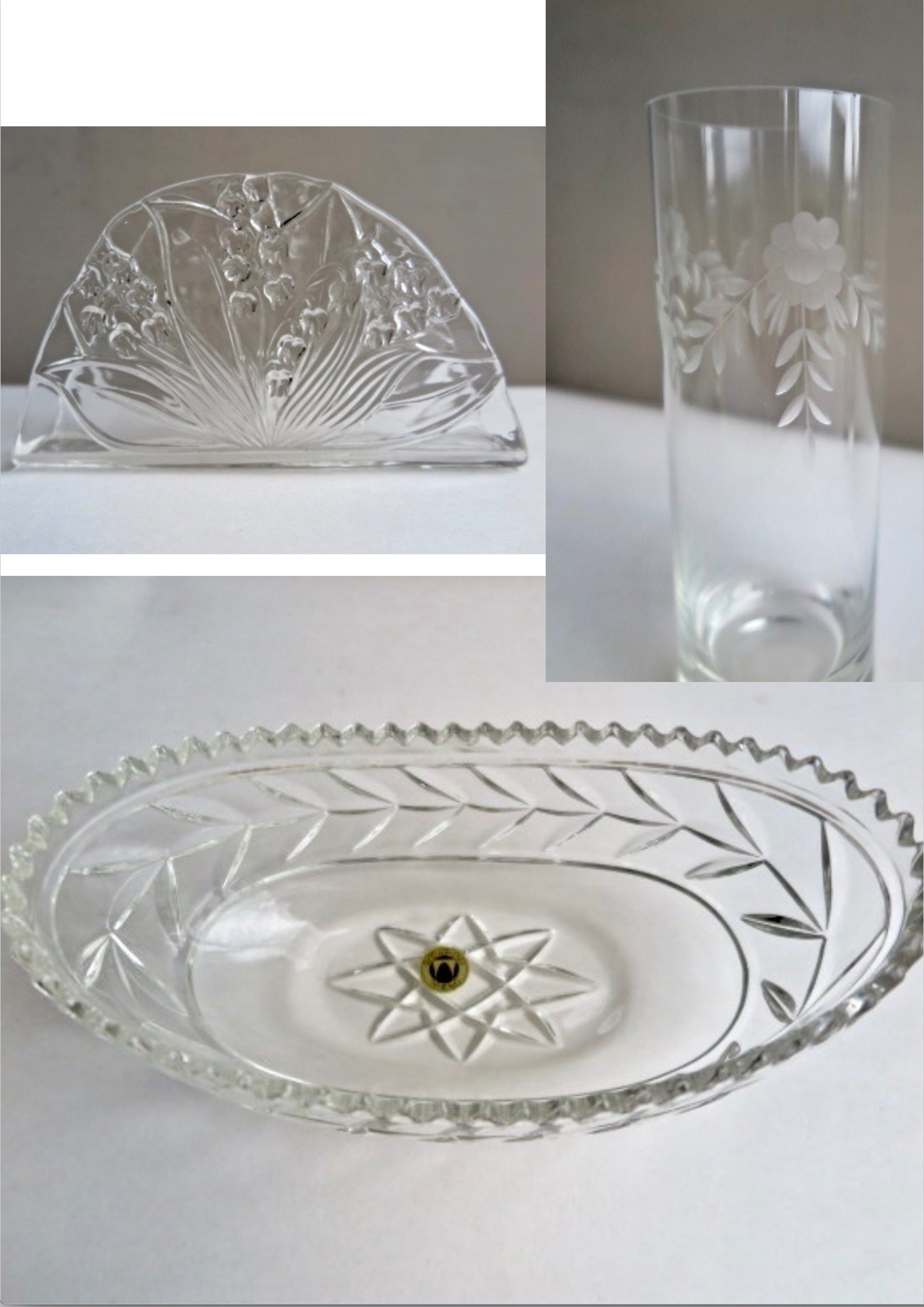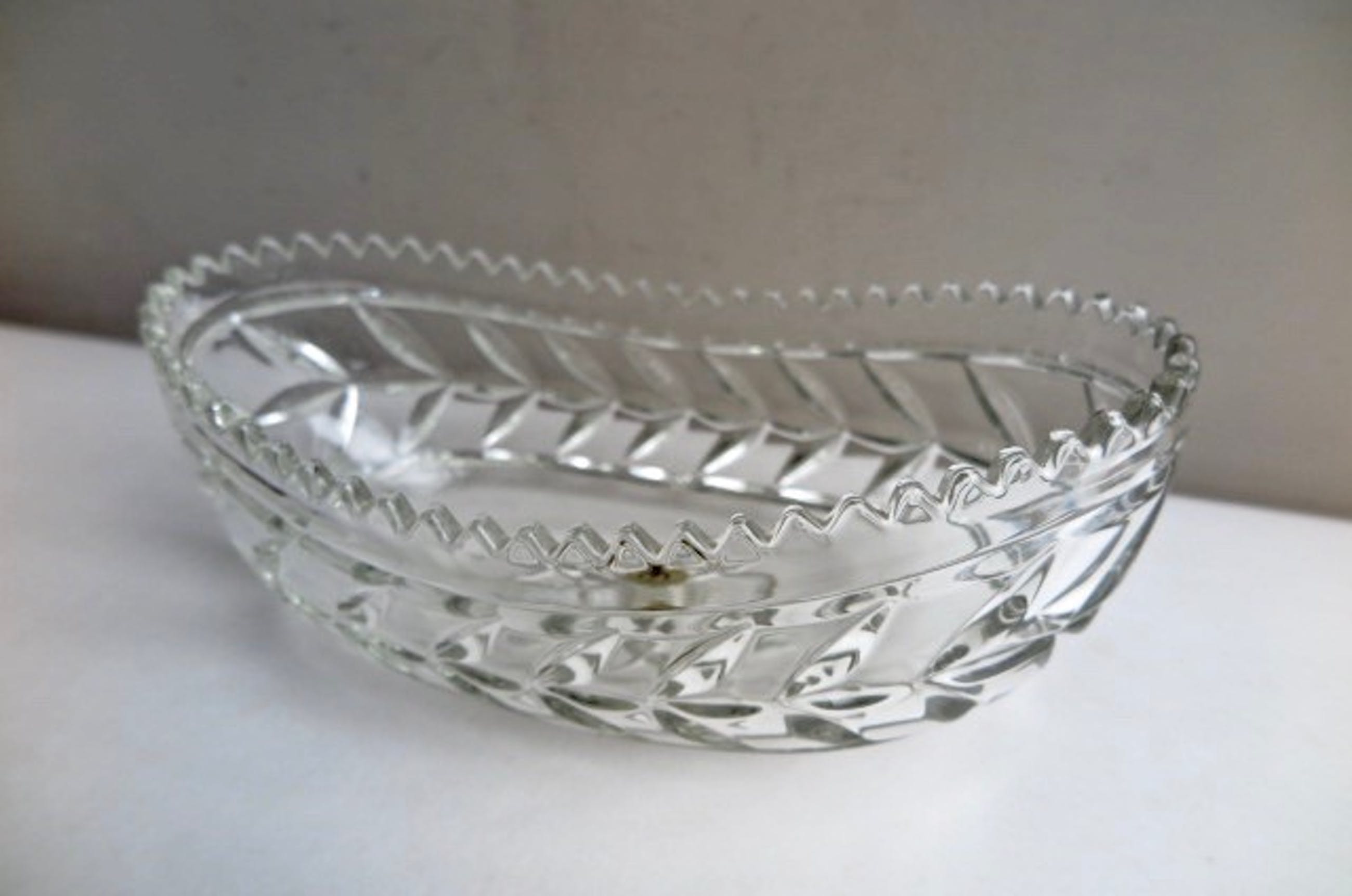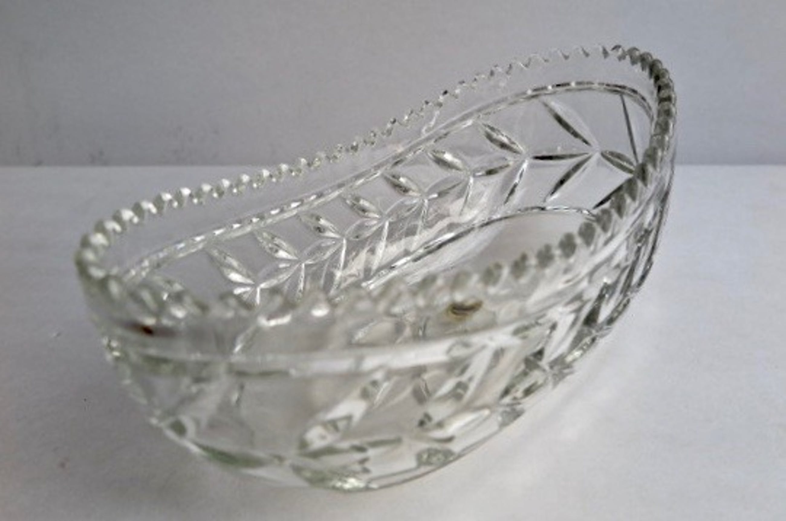 Het kavel bestaat uit: 1) Walther Ovale diepe Schaal - 12x26x13 cm - Kristalglas - ingeslepen sierrand en floraal motief - merkje aan binnenzijde - in uitstekende conditie