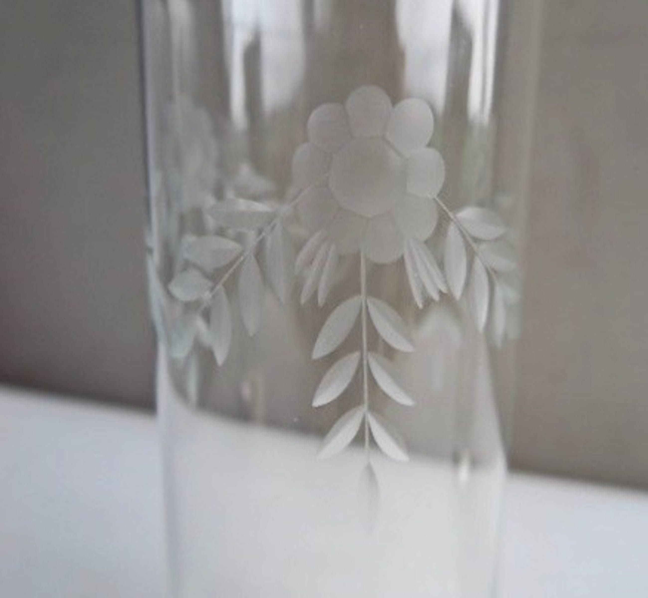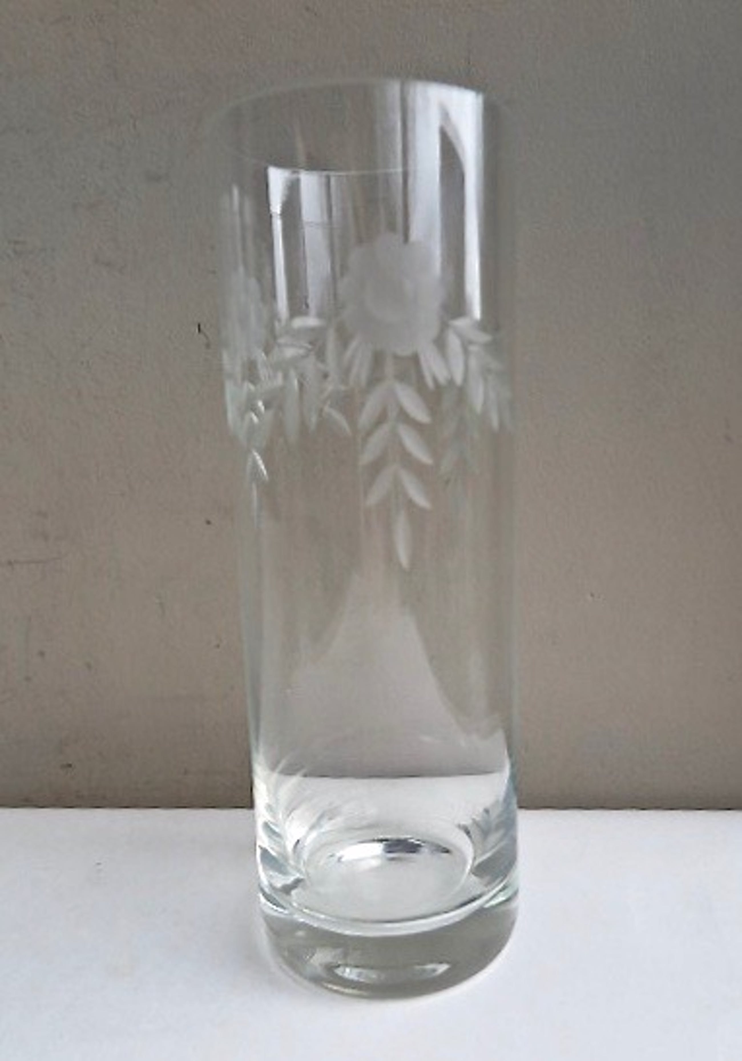 3) Kristallen vaas met mooi floraal slijpmotief - 20x7x7 cm - merk onbekend - in goede conditie, oppervlakkig krasje buiten het slijpdecor.