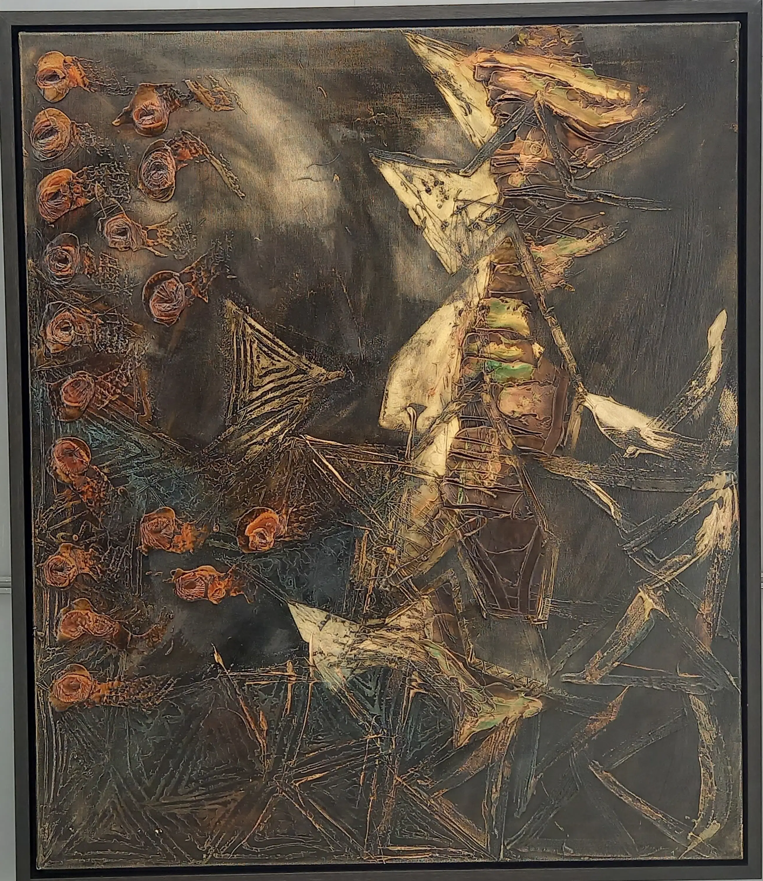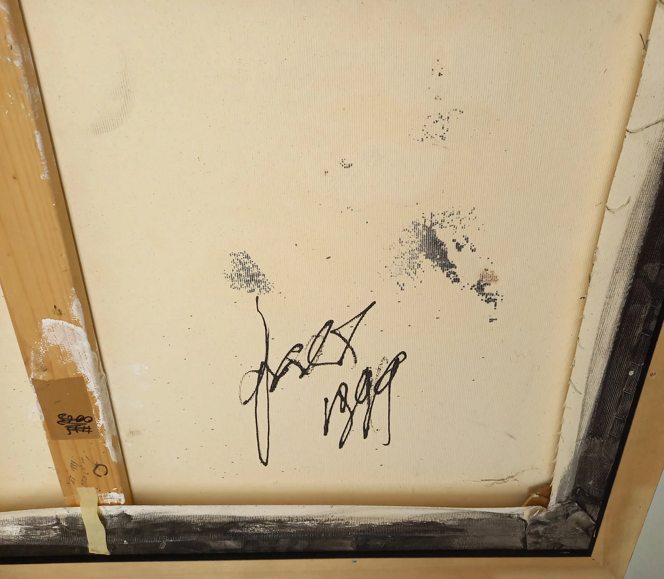 Schilderij in zwarthouten baklijst. Gesigneerd op achterzijde.
