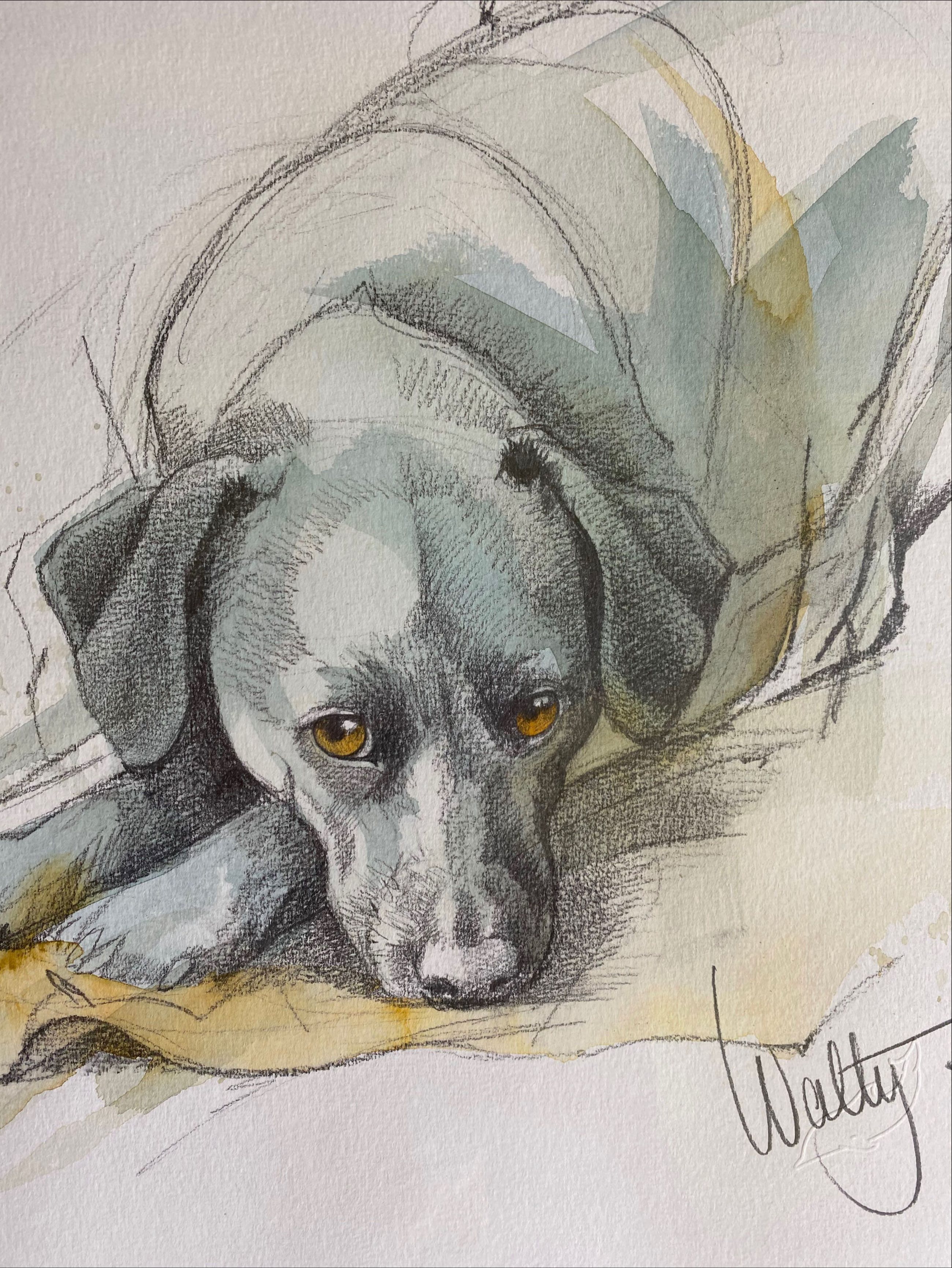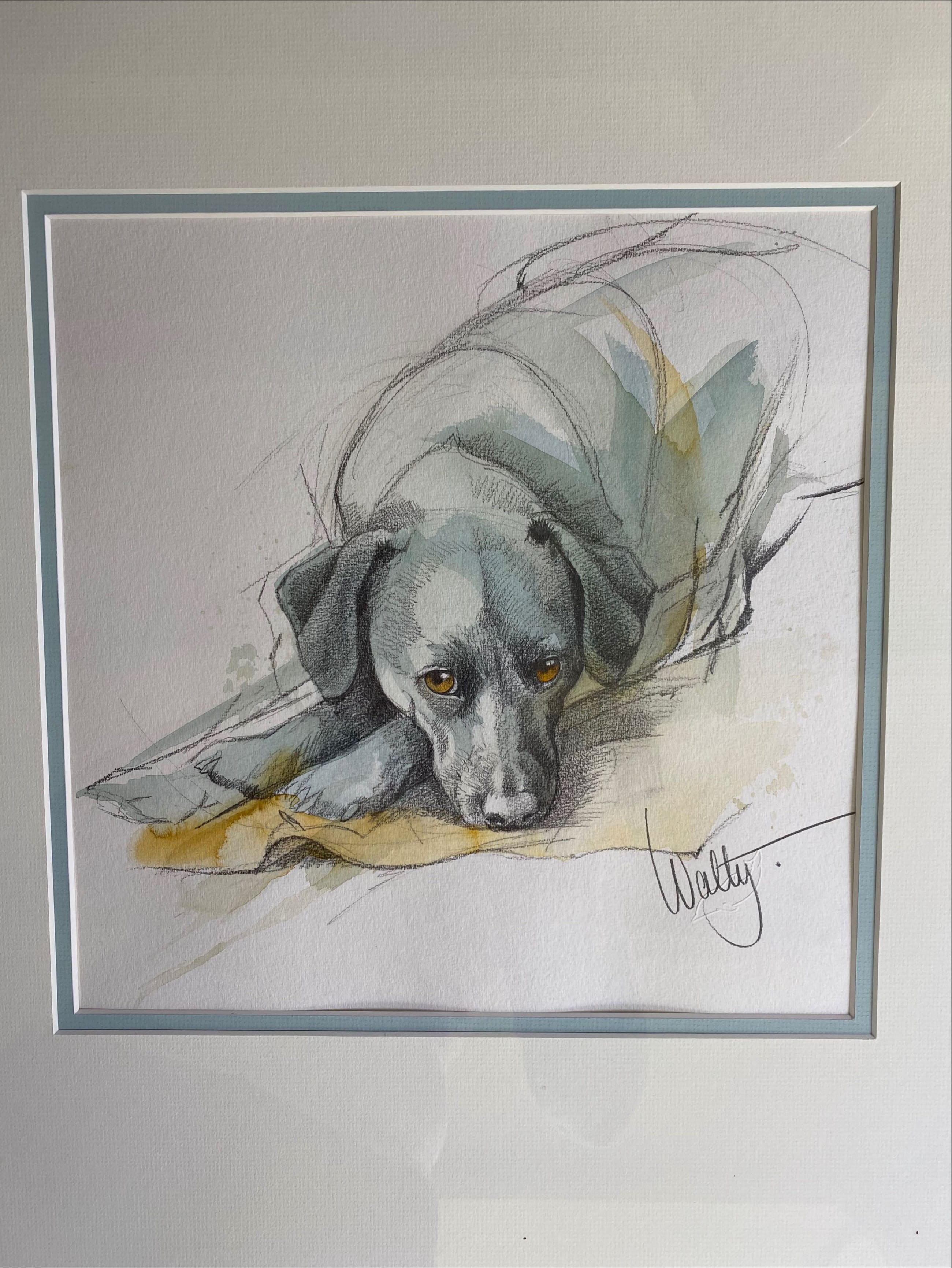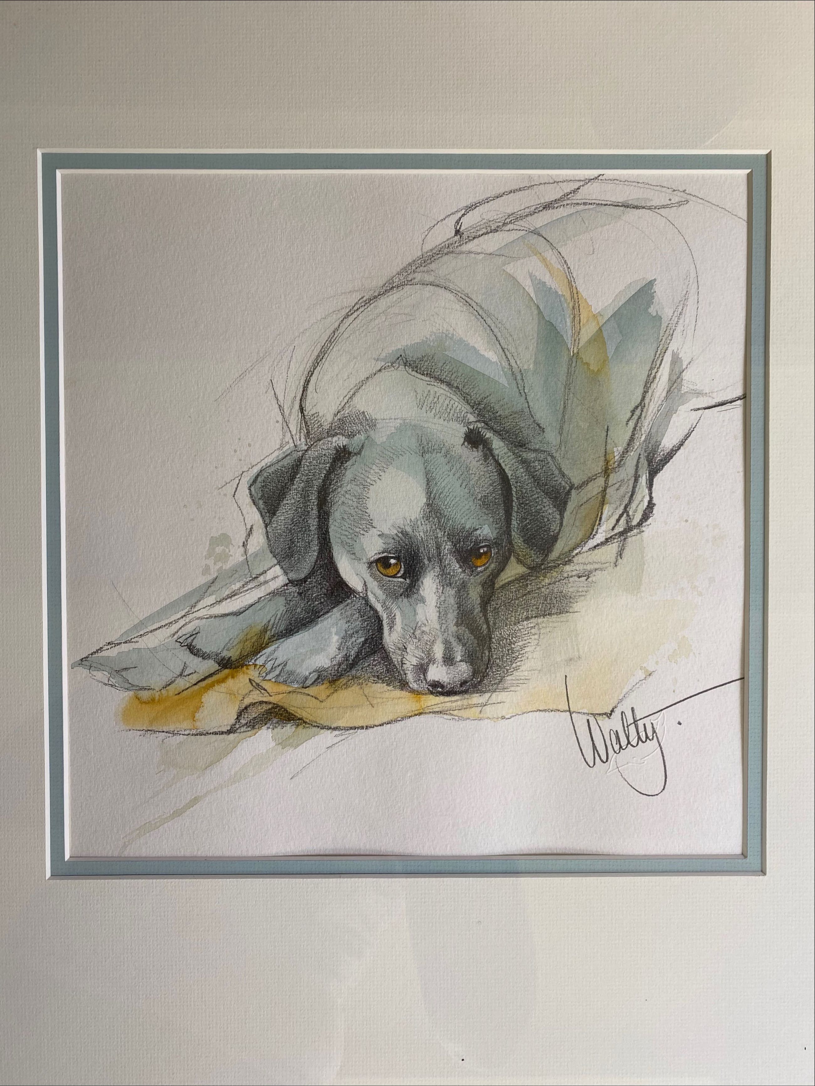 De bekende en geliefde kunstenares Walty Dudok van Heel, die het vastleggen van dieren en hun persoonlijkheid kon vangen als geen ander. Deze liggende labrador is daar een mooi voorbeeld van.