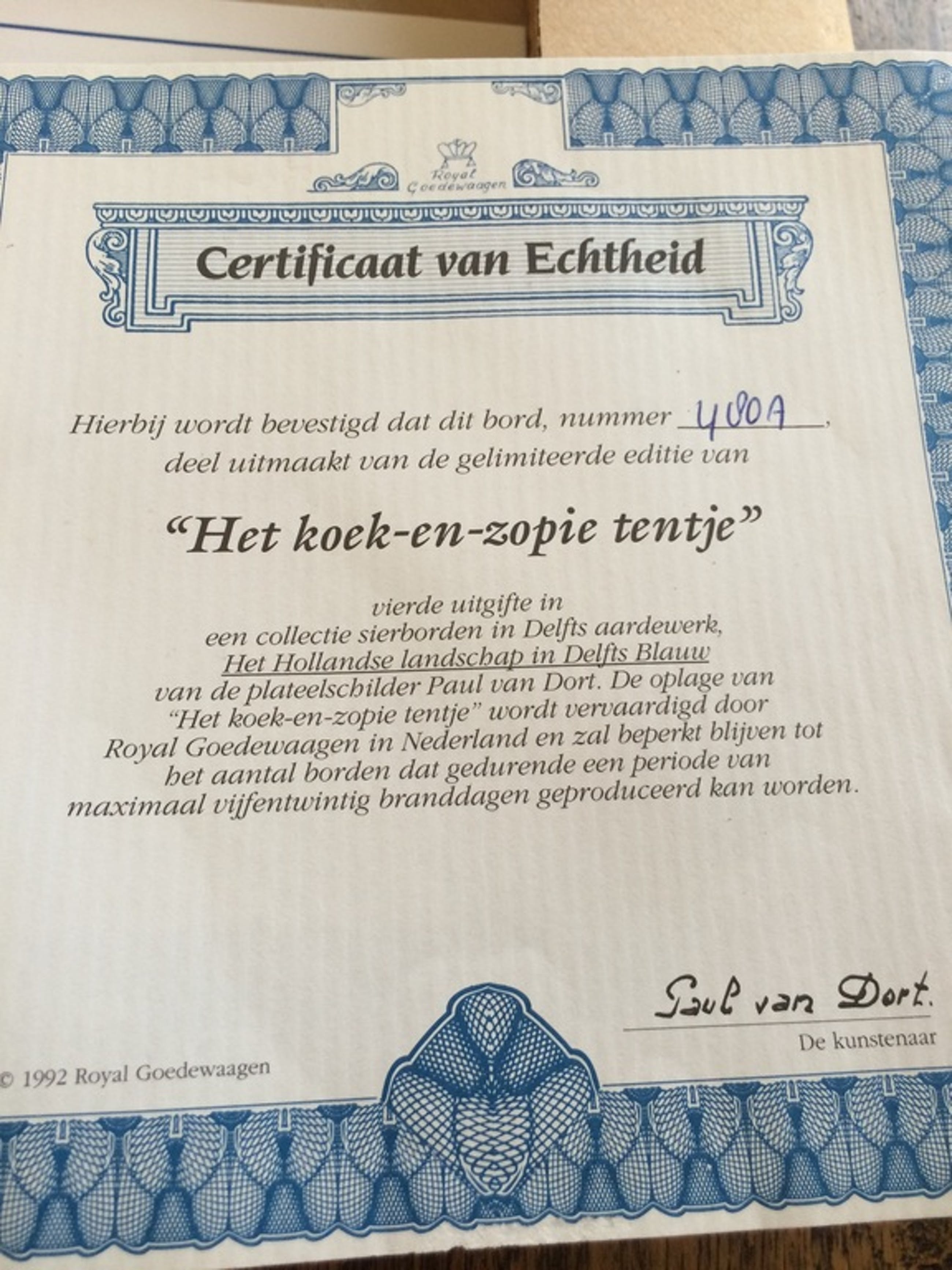 Ophangstuk ontbreekt maar bord is inclusief certificaat van echtheid. Bord nr. 480A