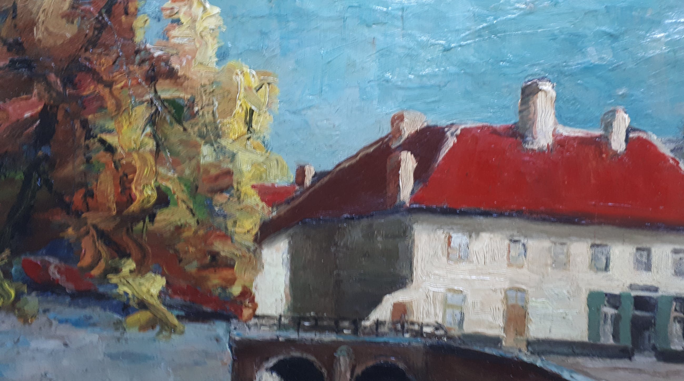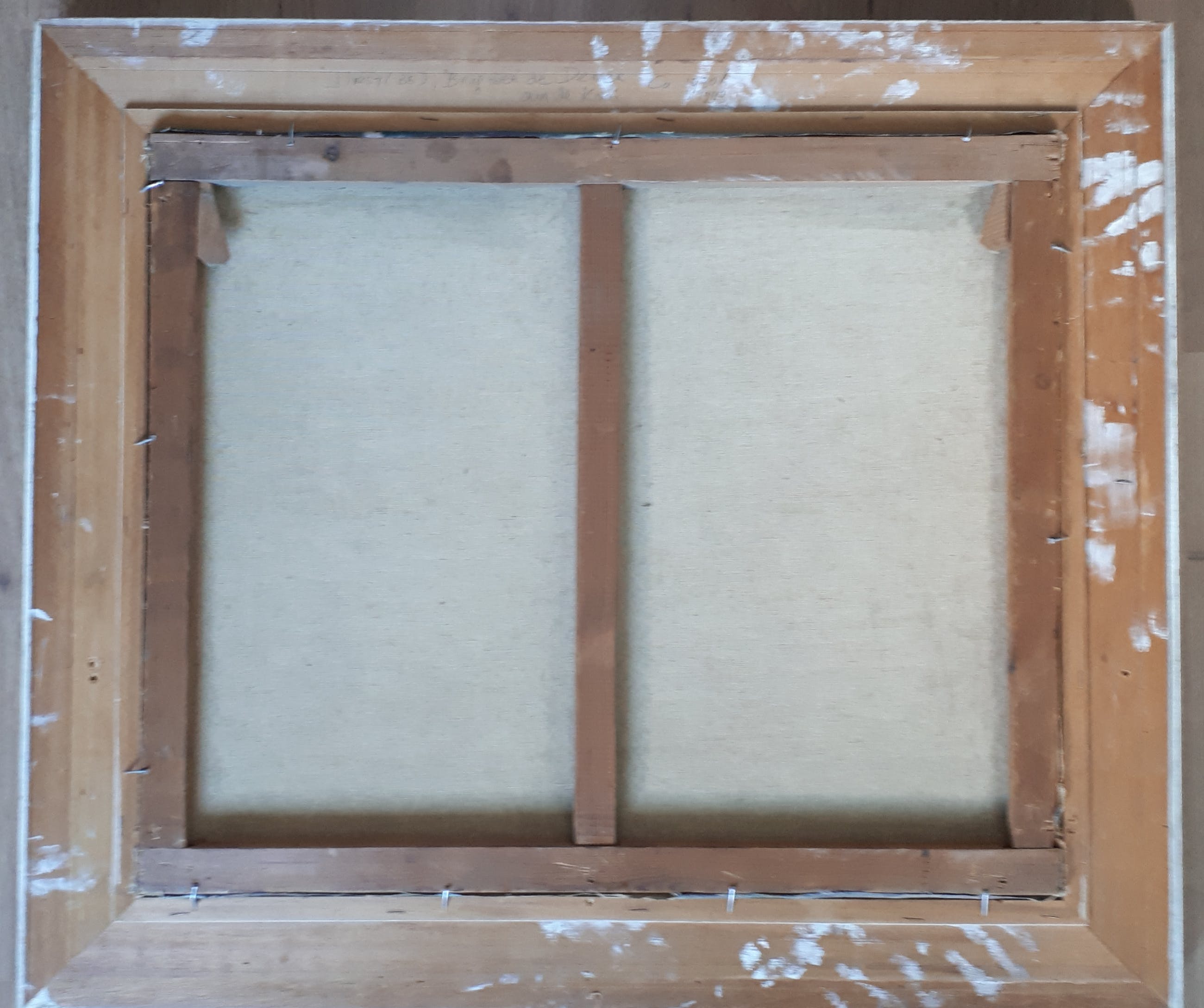 Het doek is professioneel gereinigd en verkeerd nu in zeer goed staat. De lijst is origineel en heeft lichte gebruikerssporen.