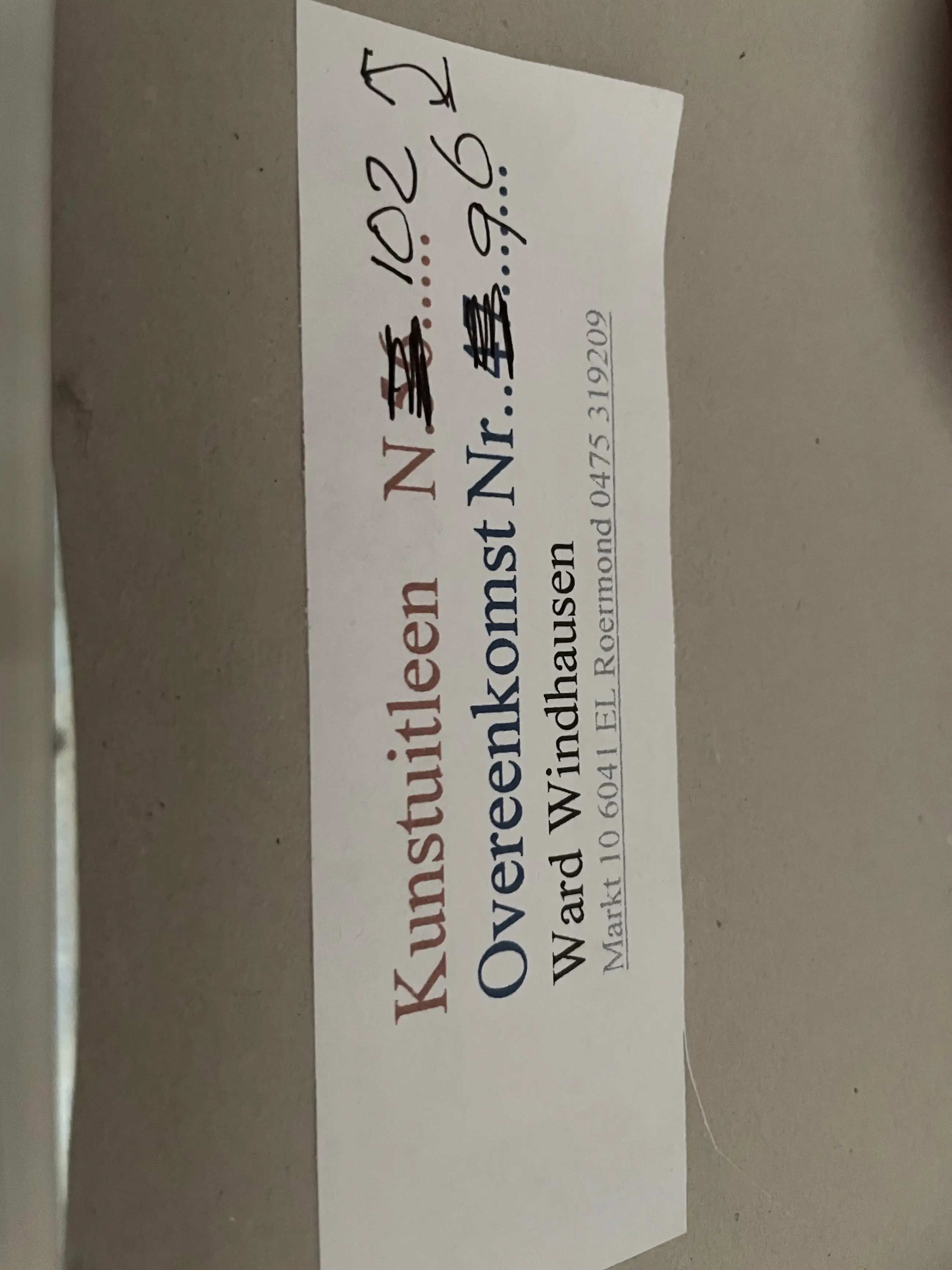 Het werk is af te halen op locatie. Als koper dient u zelf verpakkingsmateriaal mee te nemen. De locatie is: Reuver, Nederland
