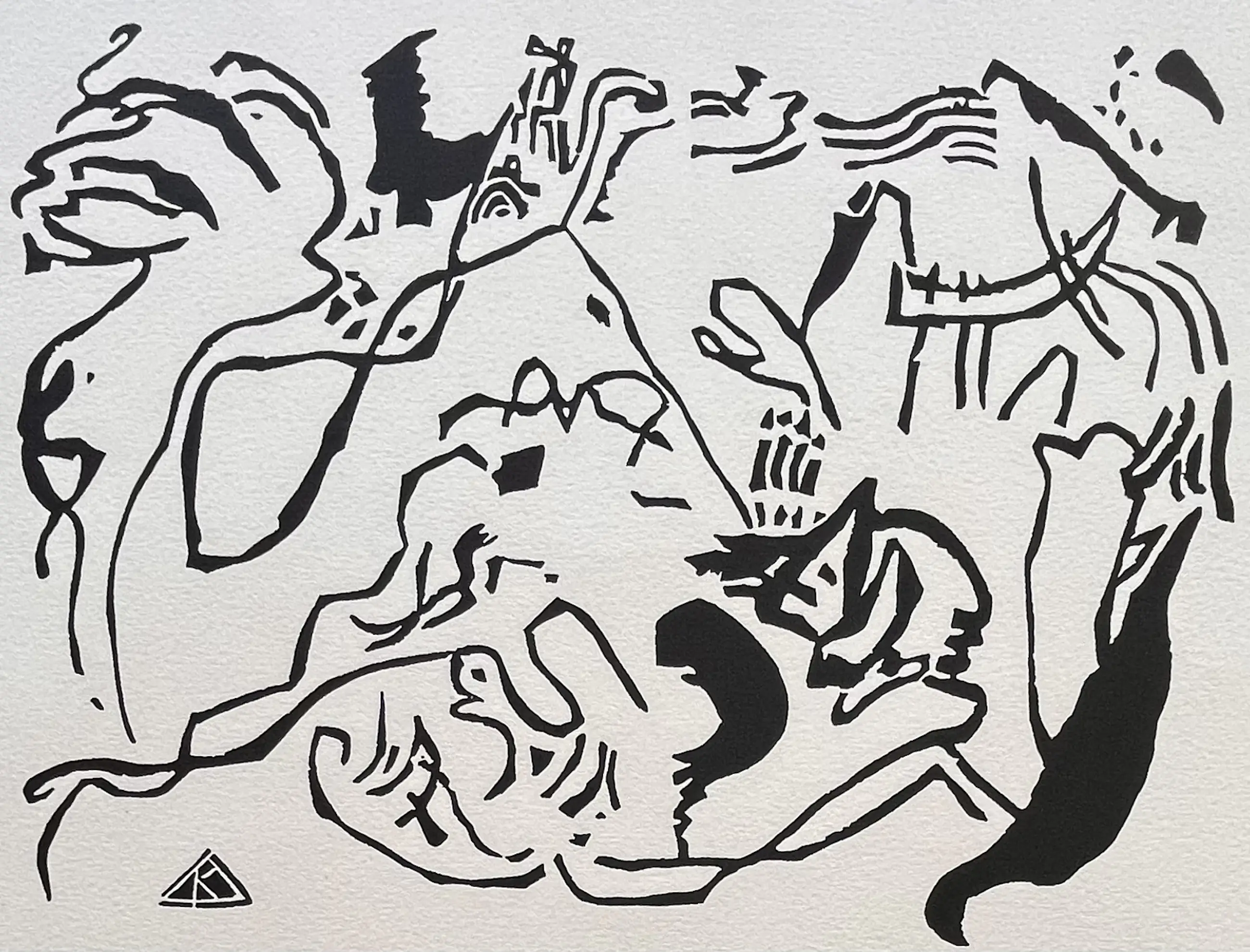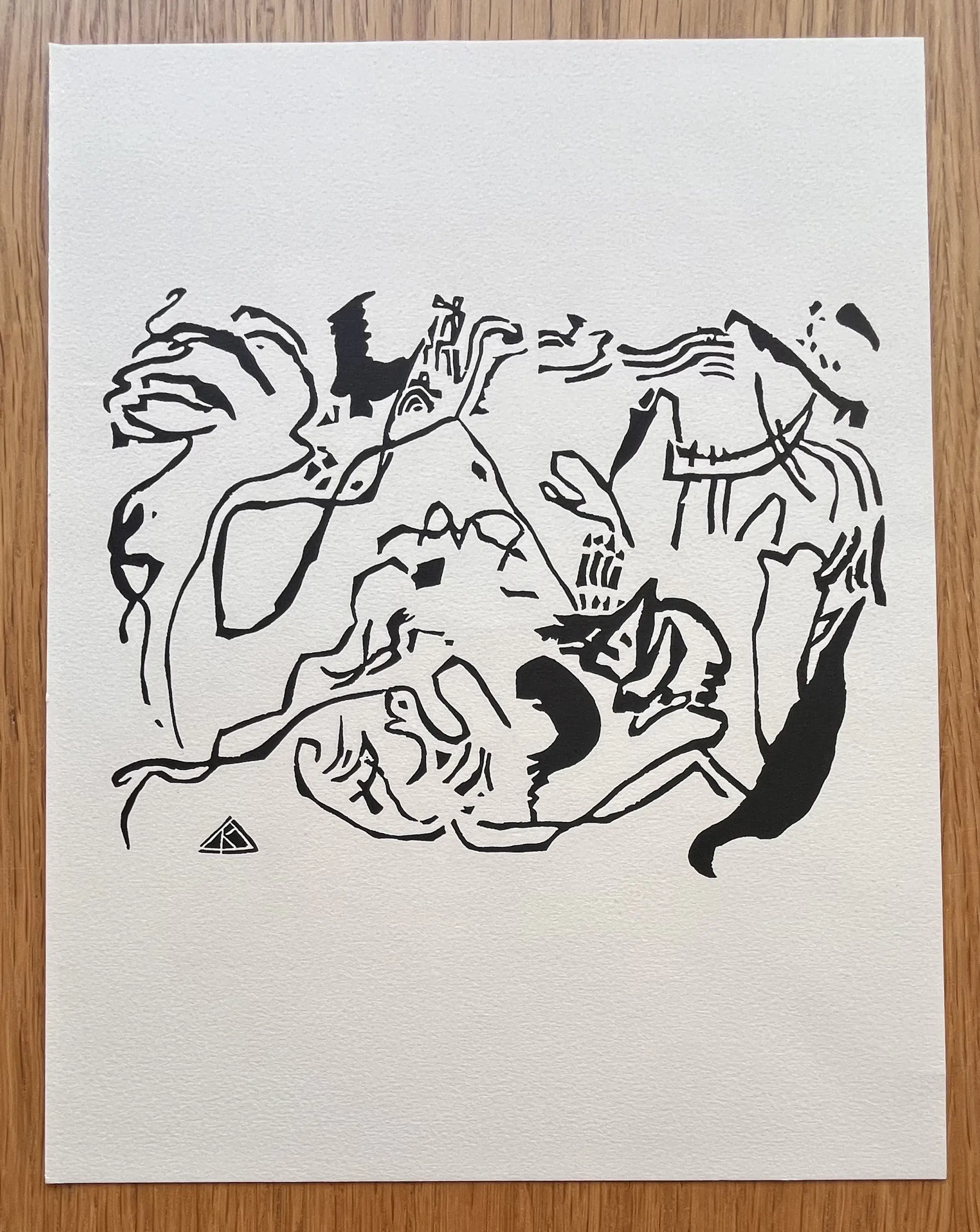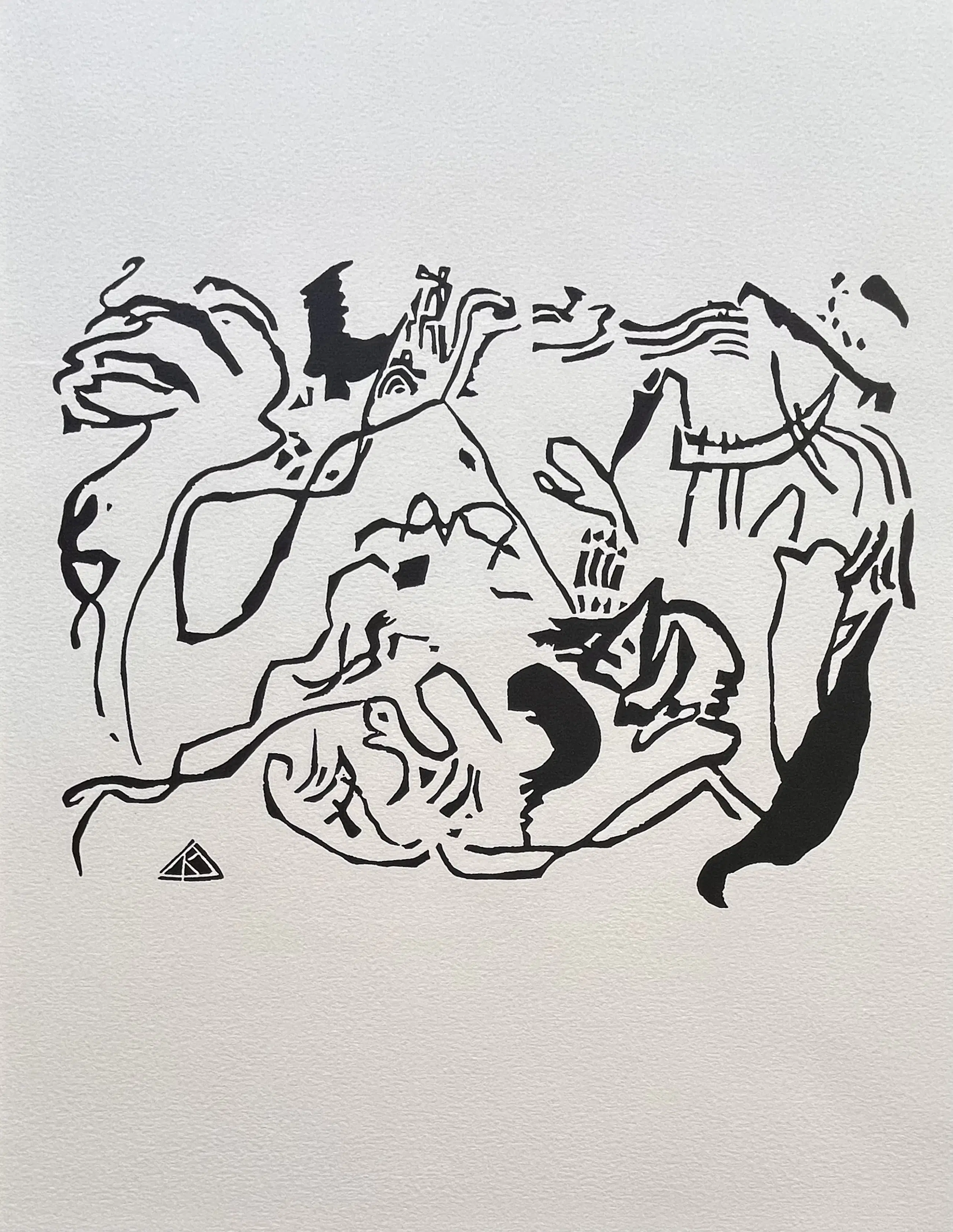 Wassily Kandinsky (1866 Moskou – 1944 Neuilly-sur-Seine). "Het Laatste Oordeel". Originele houtsnede op Arches-papier. Gemonogrammeerd in de blokdruk. Afmetingen afbeelding: 190 x 125 mm, papier: 310 x 240 mm. Gemaakt in 1911, voor het eerst gepubliceerd in 1913 in Klänge, dit is waarschijnlijk de 20e-eeuwse editie. In perfecte staat. Referentie: Roethel catalogue raisonné, p. 146.