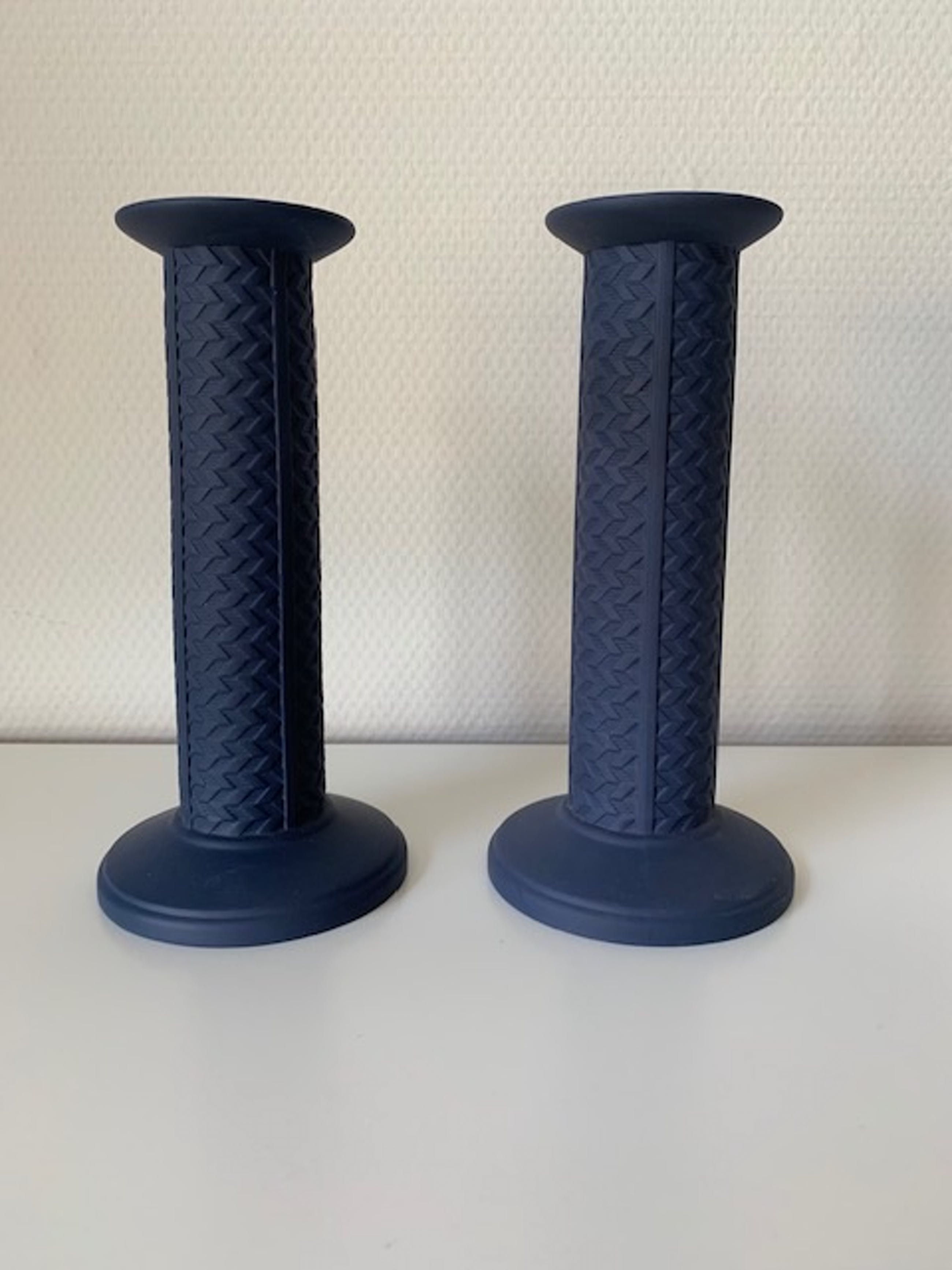 2 Identieke Wedgwood kandelaars in de kleur blauw.