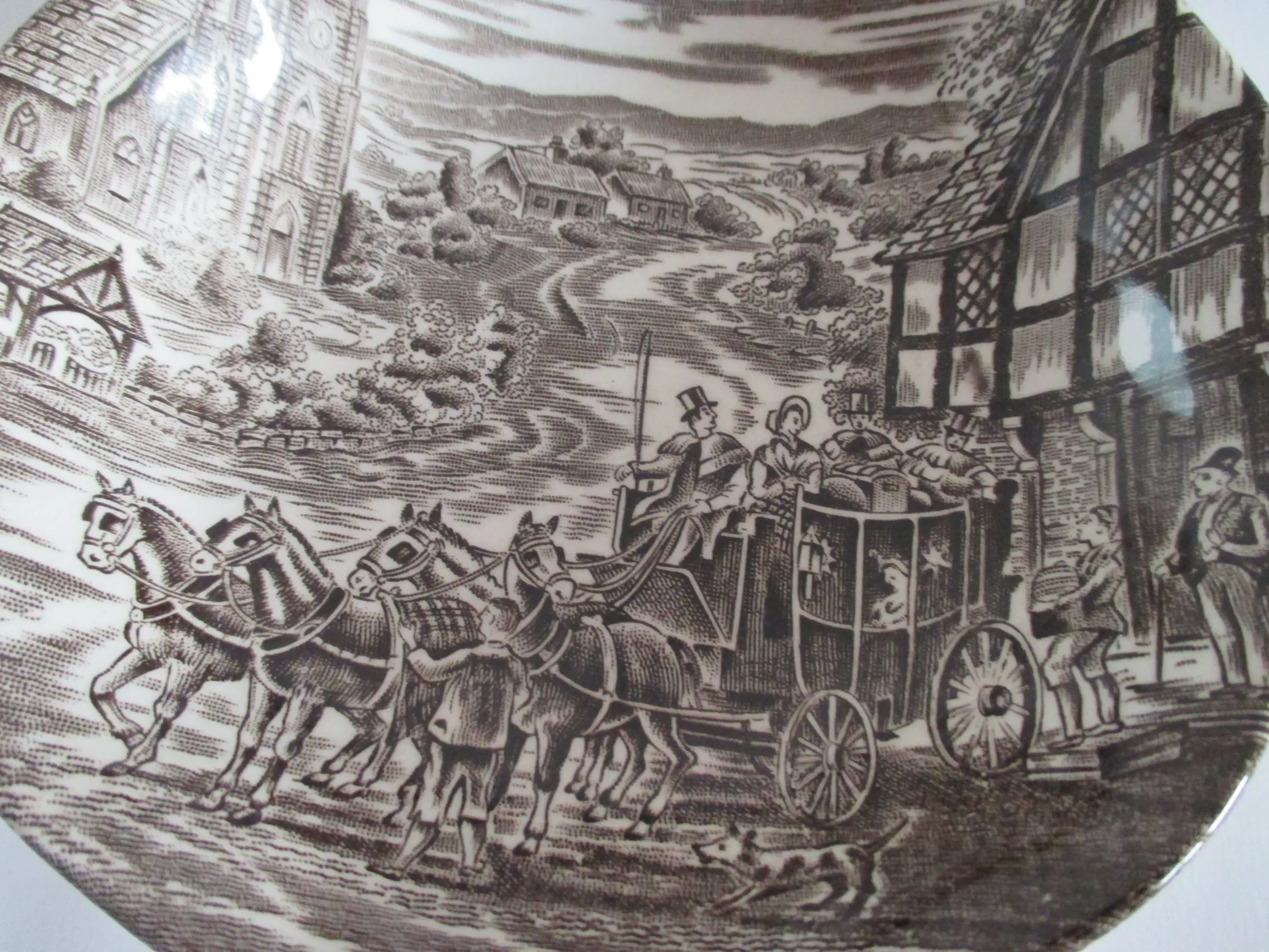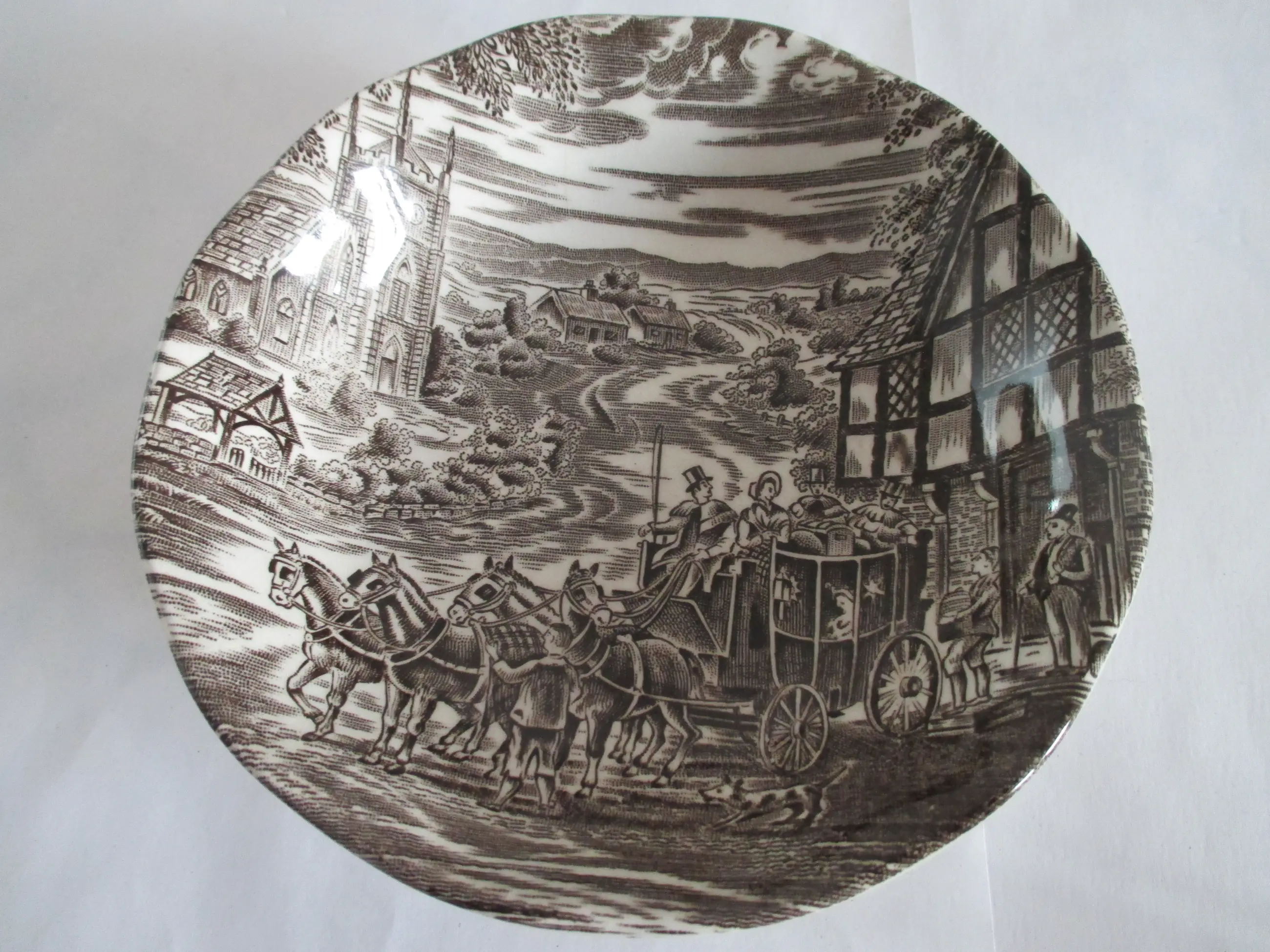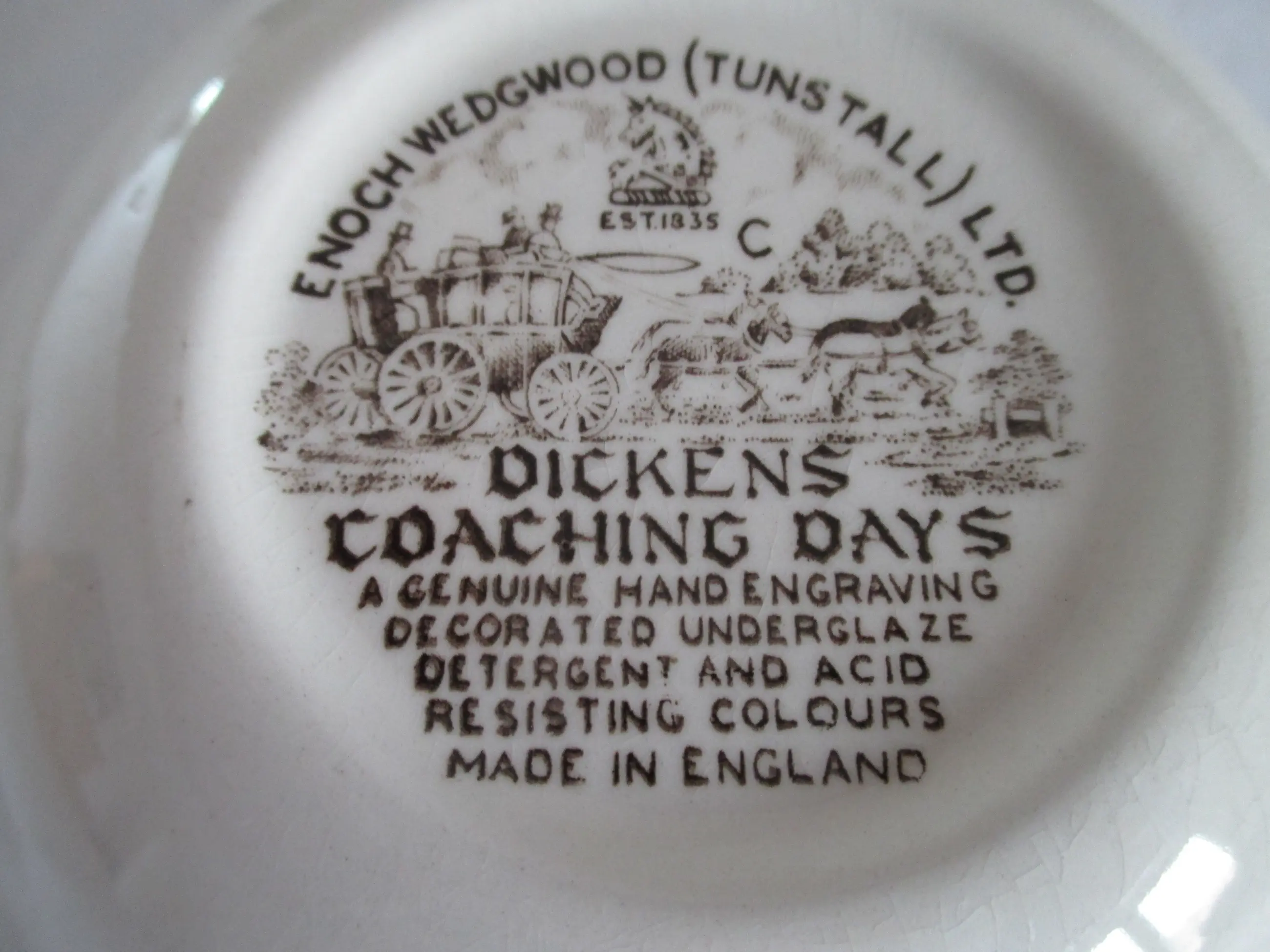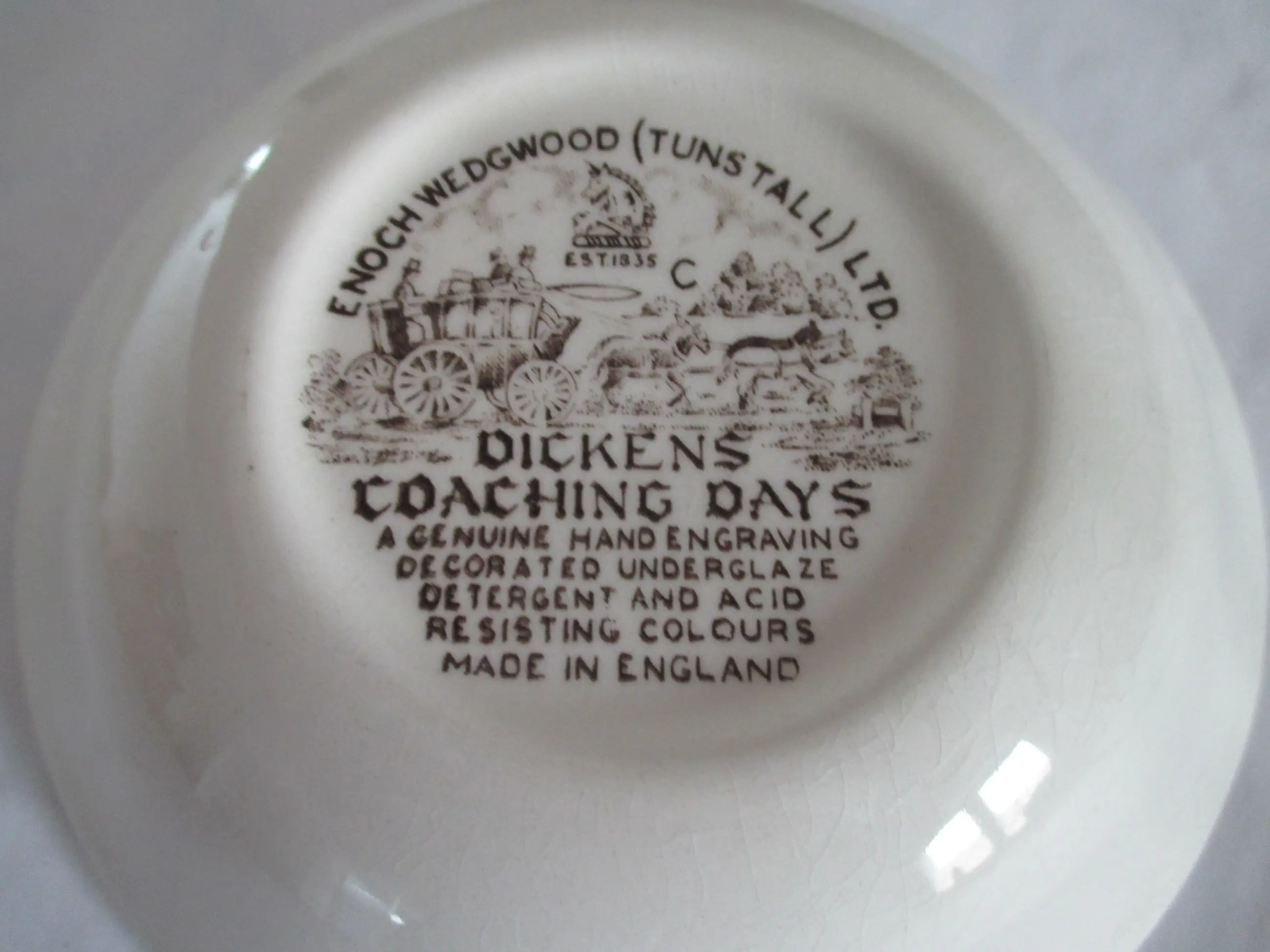 Dit schaaltje komt uit de bekende serie "Dickens Coaching Days" oorspronkelijk geproduceerd door de Britse aardewerkfabriek Enoch Wedgwood (Tunstall).