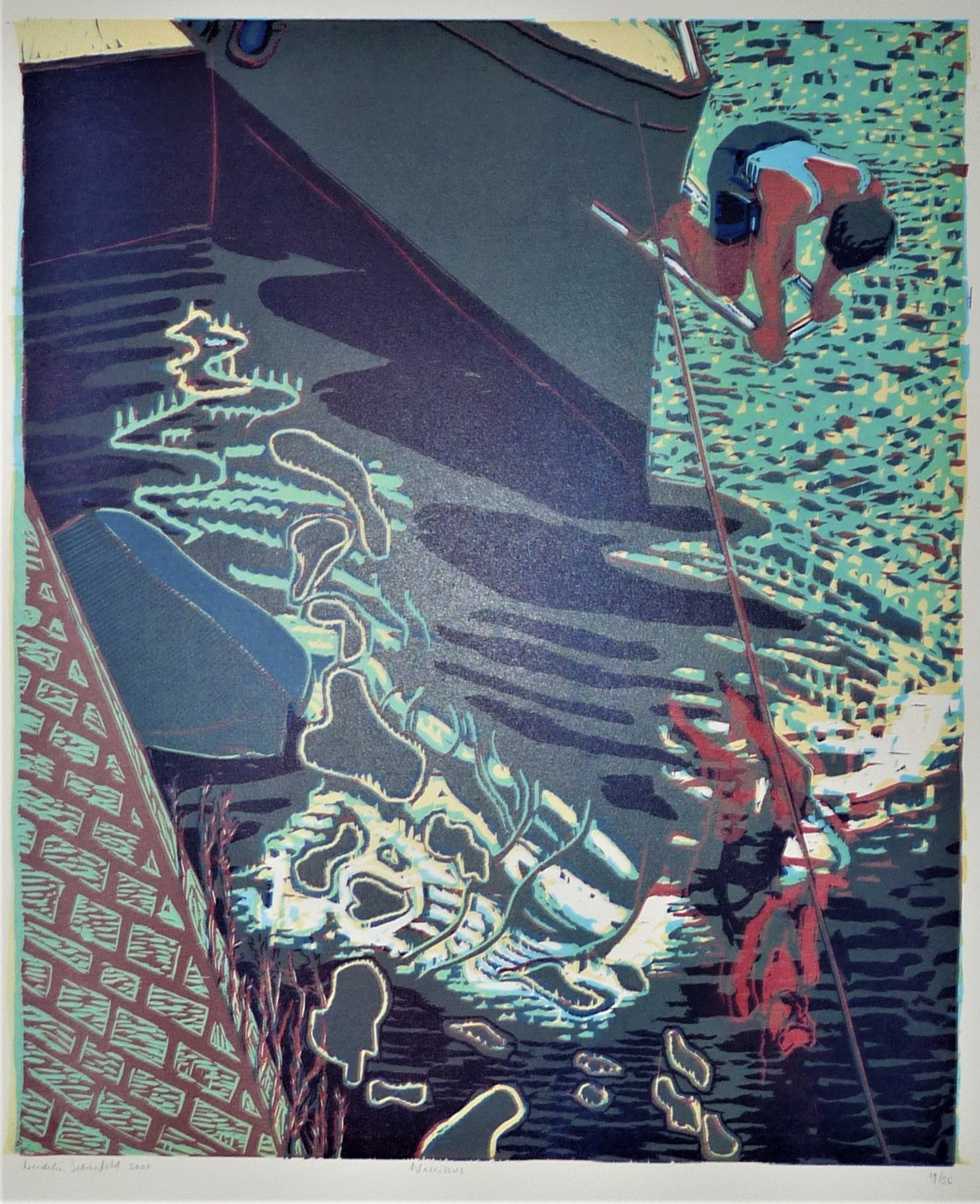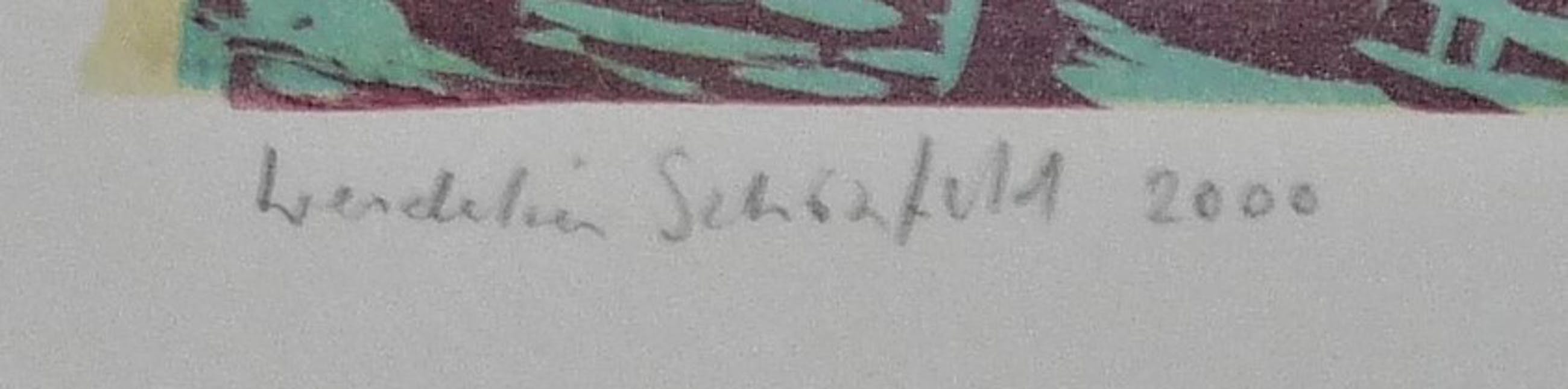 *Fraaie linosnede van de Nederlandse kunstenares Wendelien Schonfeld *P.P. maat 68,5 58,5 cm - Papiermaat werk 59 x 49,5 cm. Beeldmaat afdruk 49,5 x 41cm. *Verzending is aangetekend, verzekerd en goed verpakt.