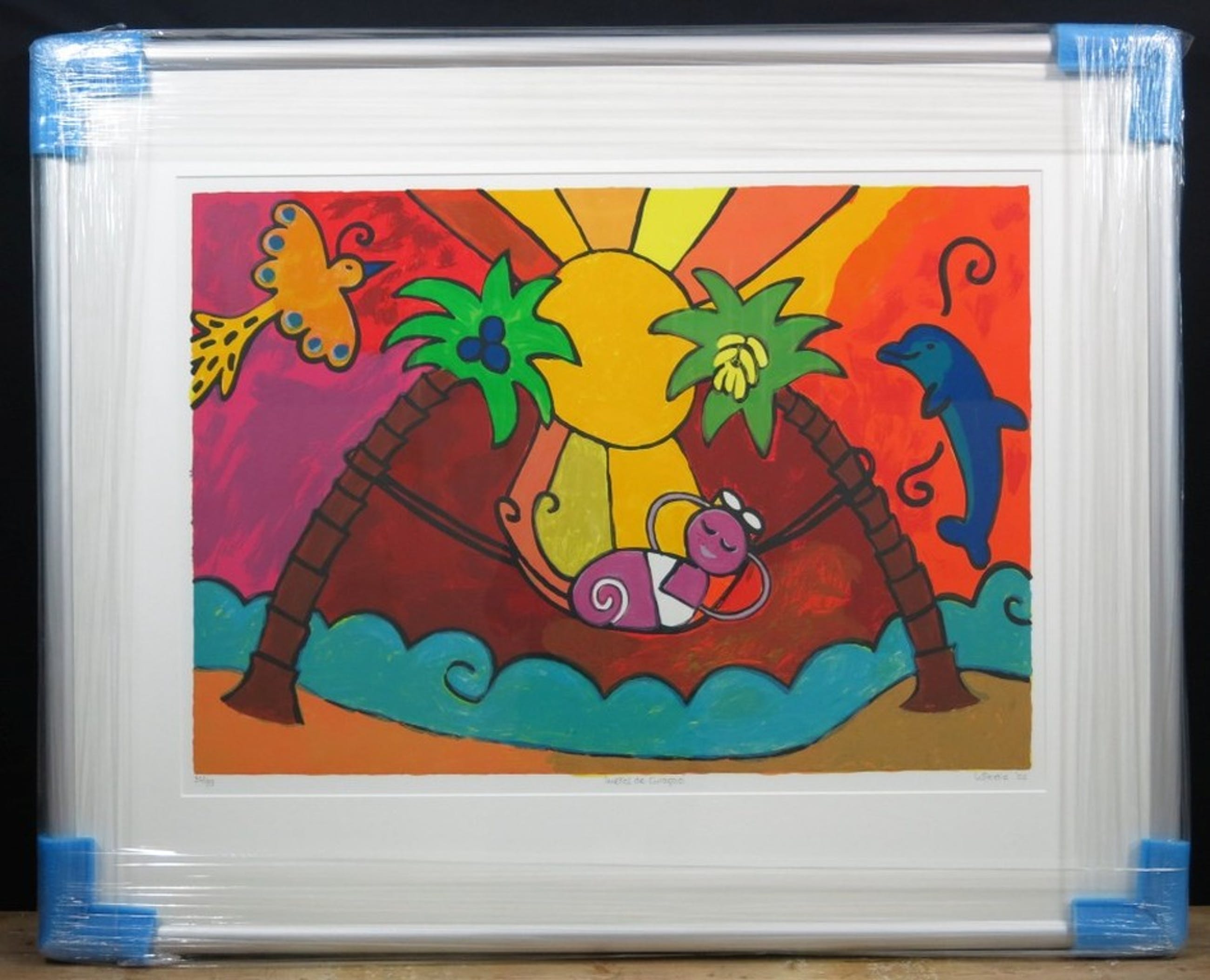 Bij foto´s van ingelijste werken kan spiegeling zichtbaar zijn. Alle werken en lijsten zijn in perfecte staat, tenzij nadrukkelijk anders aangegeven. Het oplagenummer op de foto(s) kan afwijken van het hierboven genoemde correcte oplagenummer.