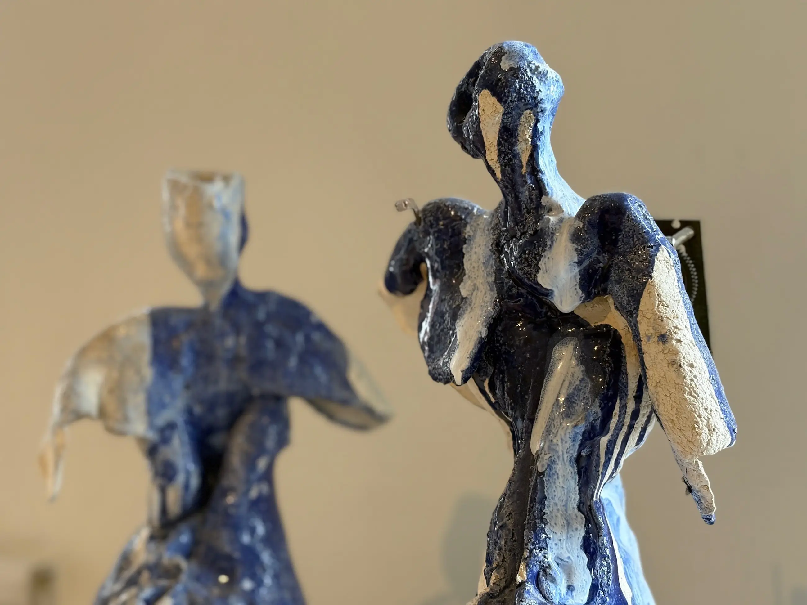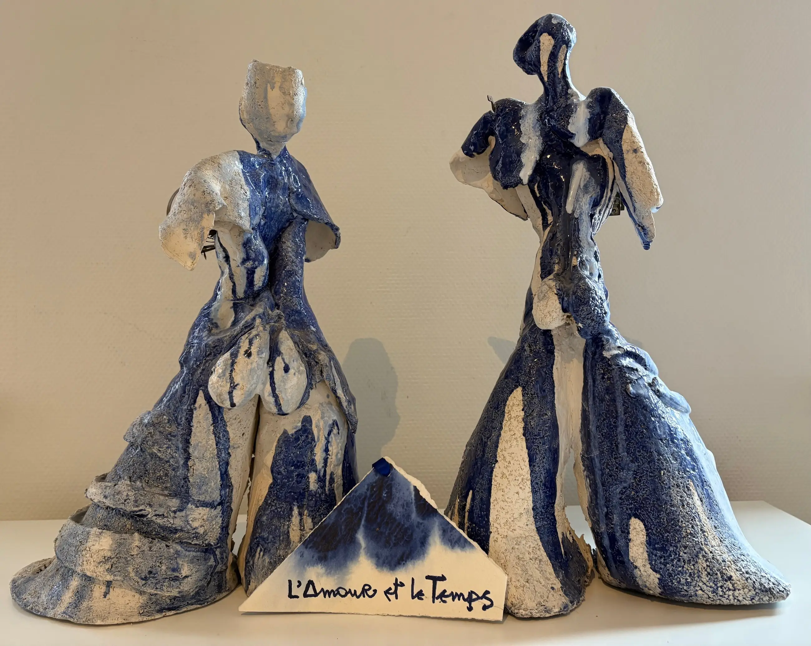 Keramisch werk "L' Amour et Le Temps" (“Liefde en tijd”; twee beelden) van Turnhoutse kunstenares Wenefrida Lewi (1942-2022).