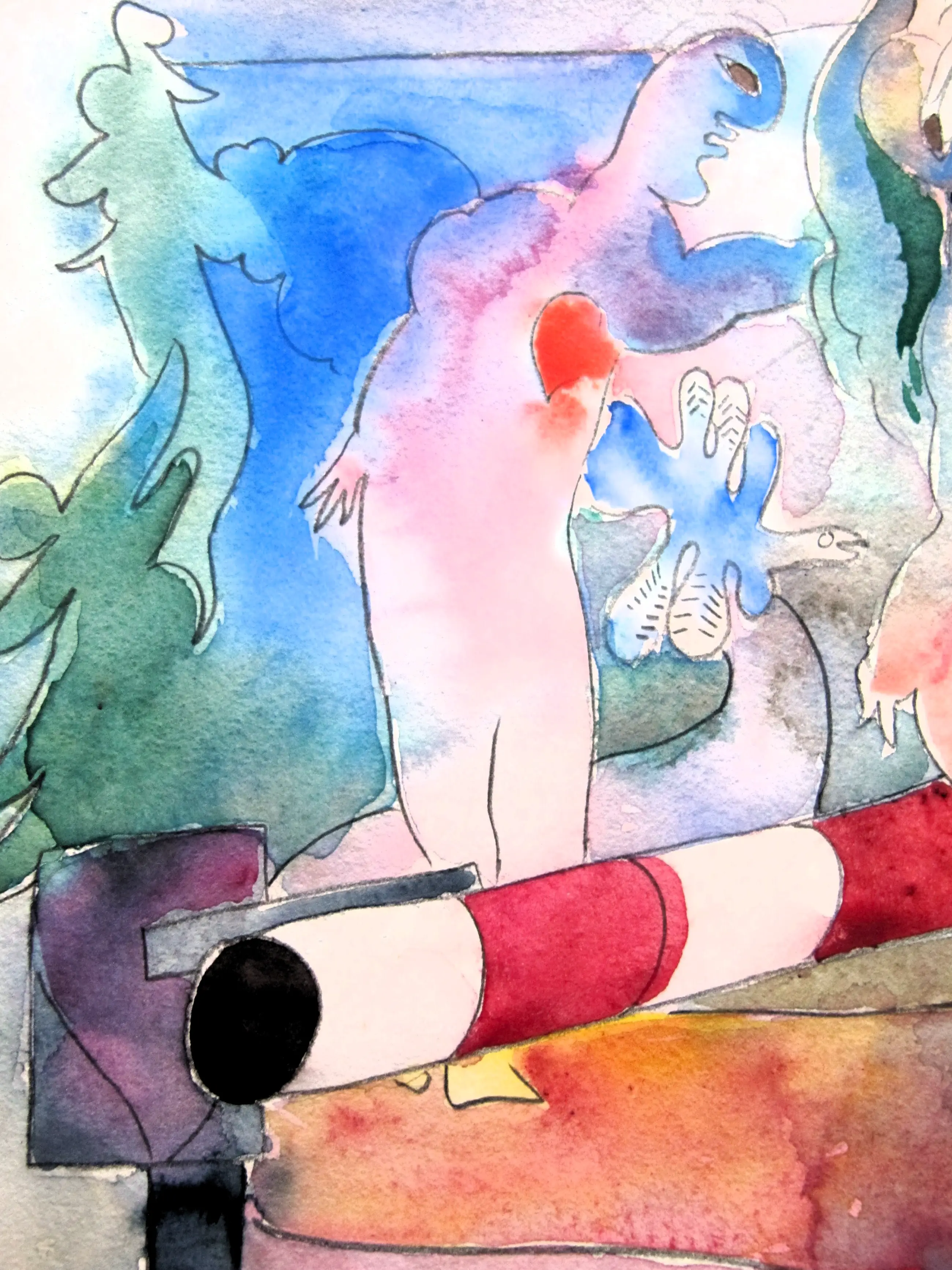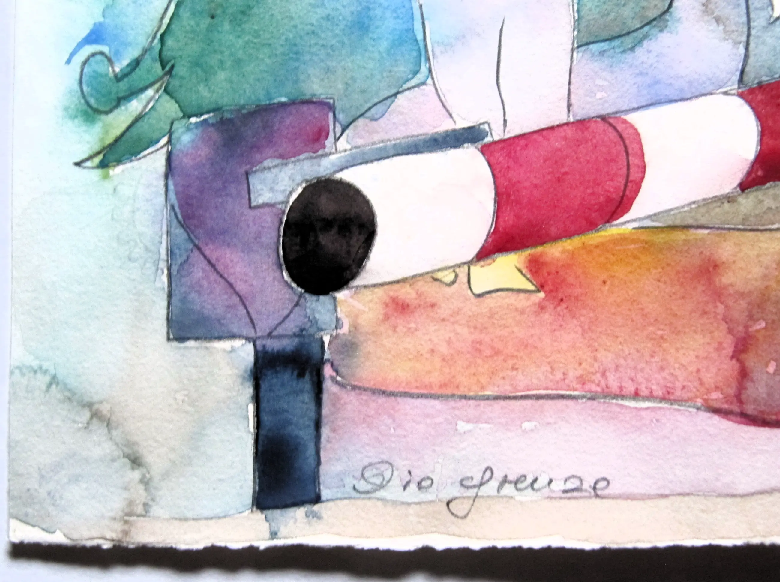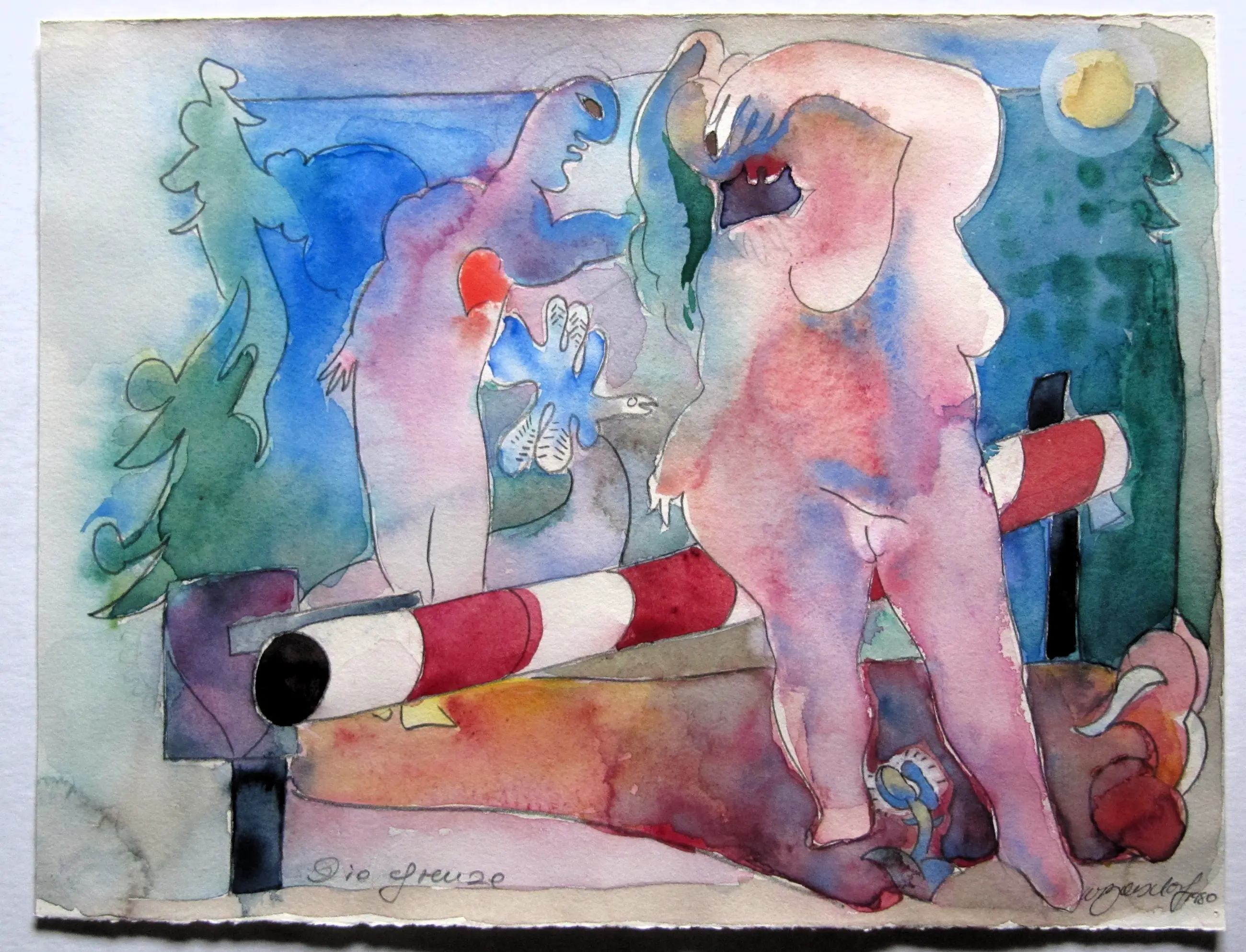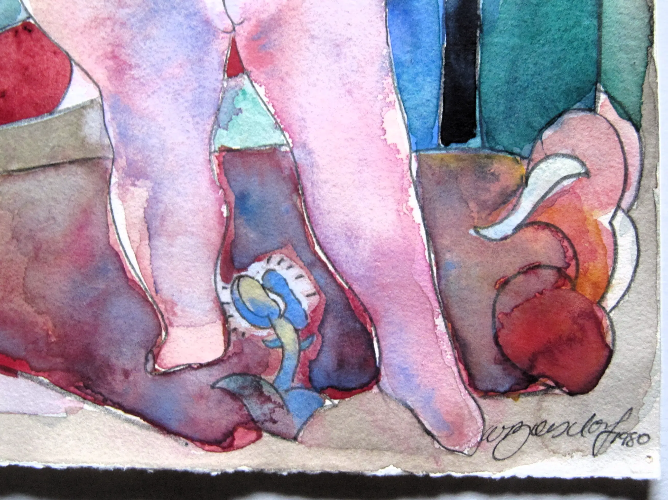 gekleurde aquarel, potlood op handgeschept papier, 1980