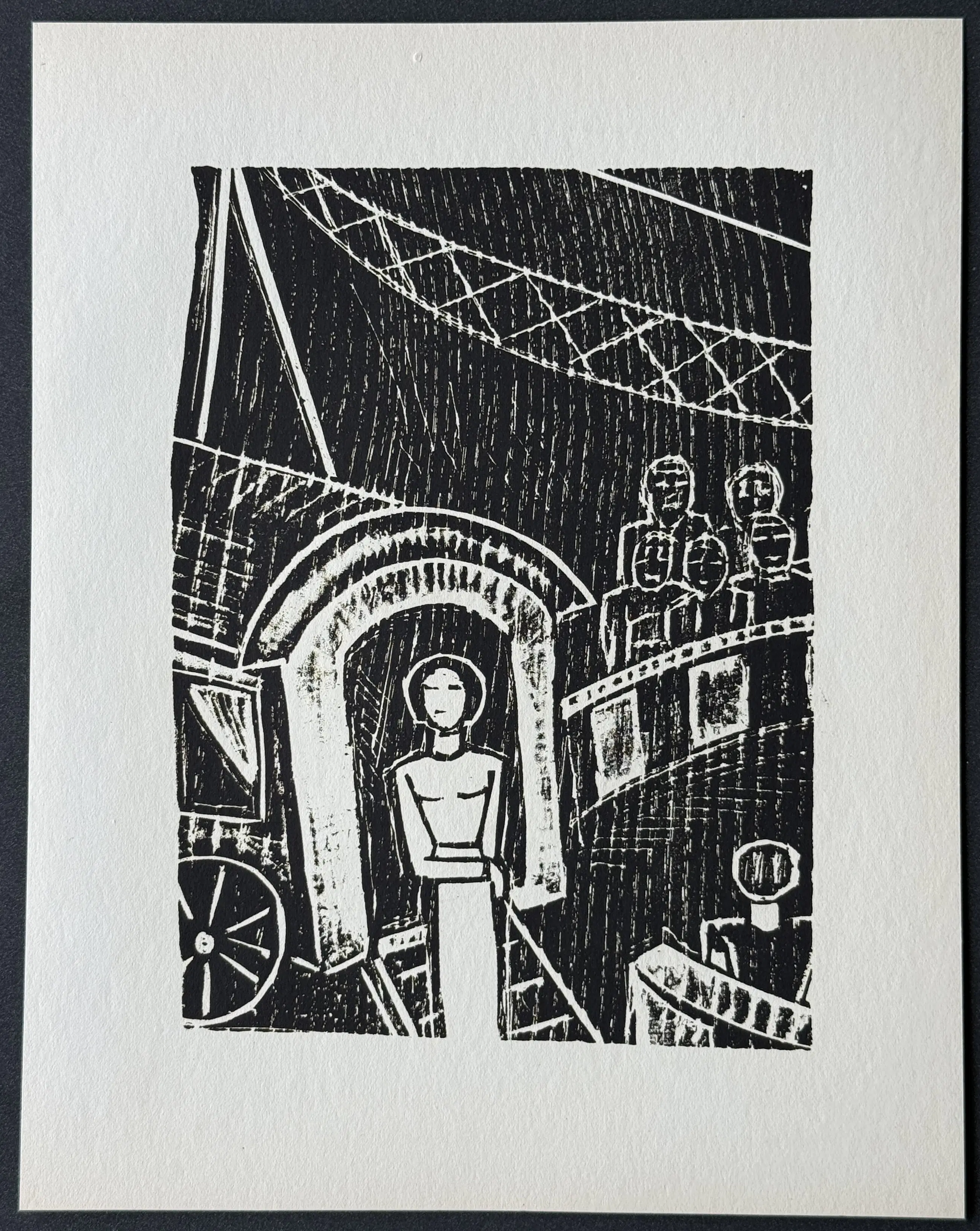 Circus. Originele laat-expressionistische houtsnede uit 1949. Beeldformaat 22 x 16 cm, bladformaat 29,5 x 23 cm. Zeer goed bewaard gebleven.