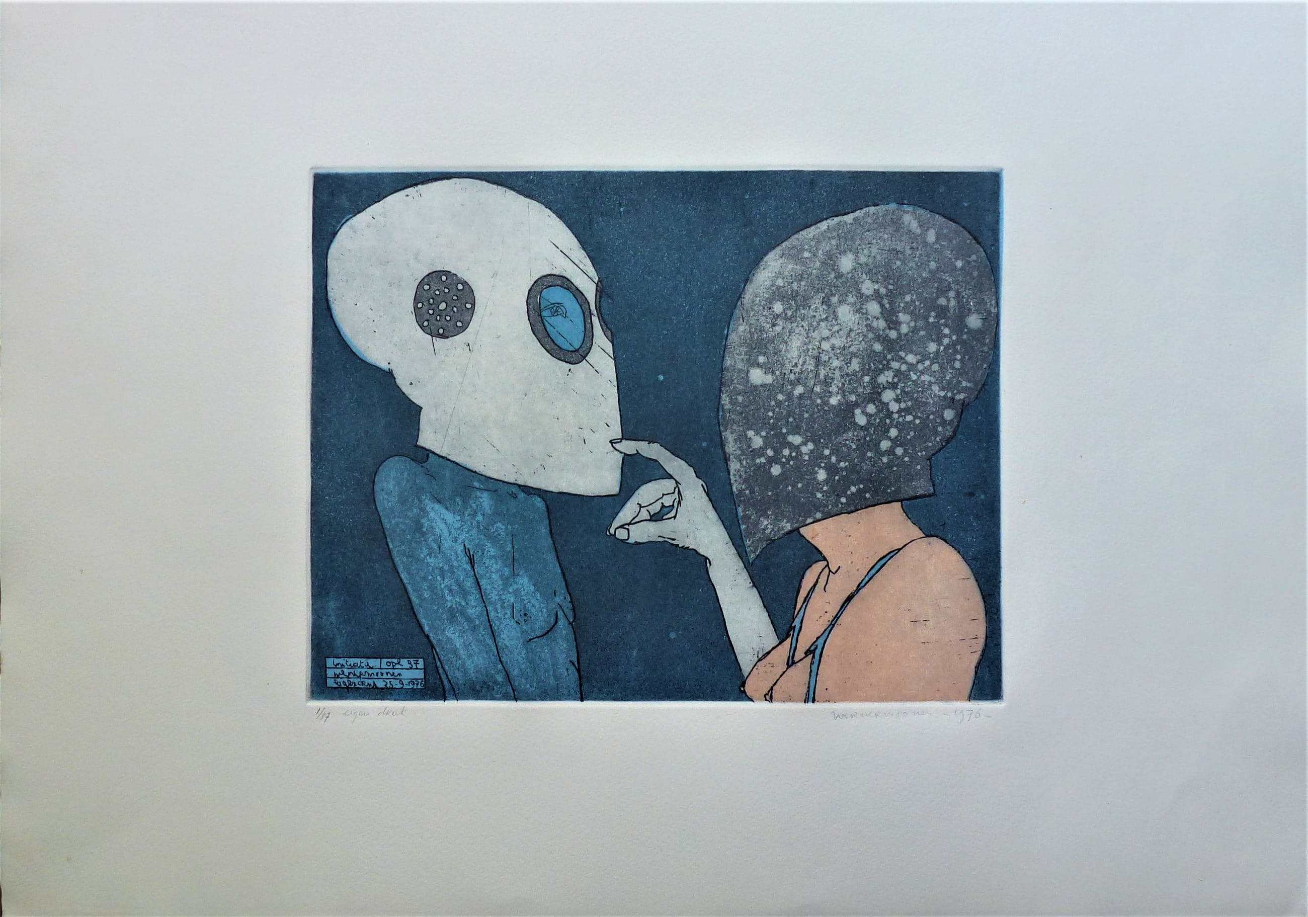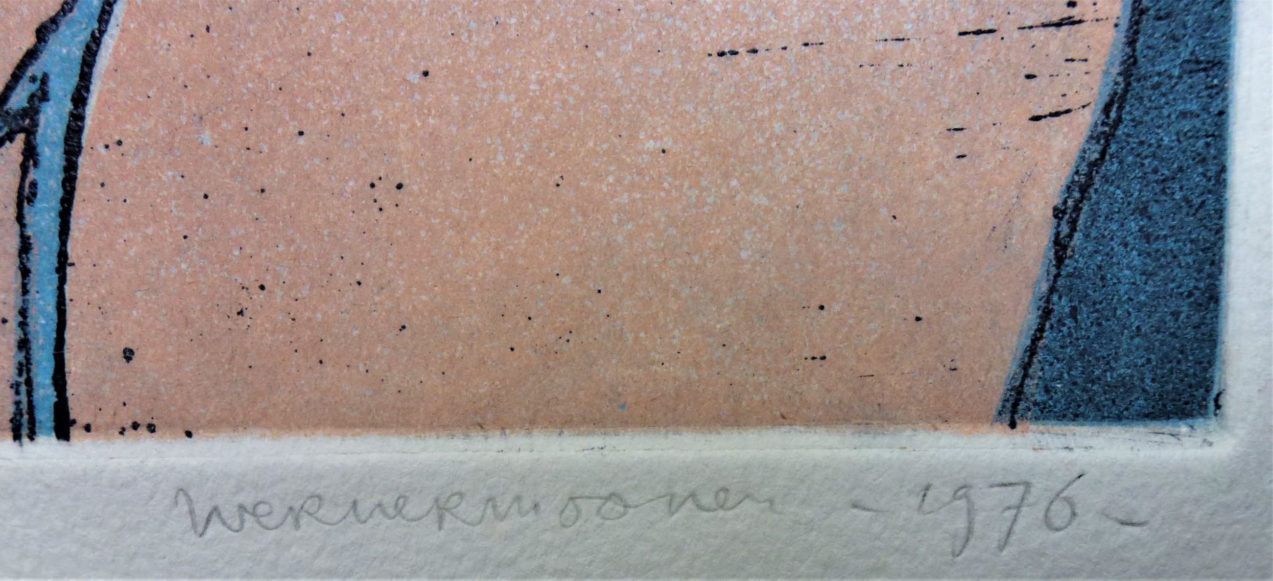 Geëtst en gedrukt door Werner Moonen in 1976. Gedateerd 25-9-1976 Afmetingen : Papier 39 cm x 53 cm . Ets 21 cm x 27,5 cm ,