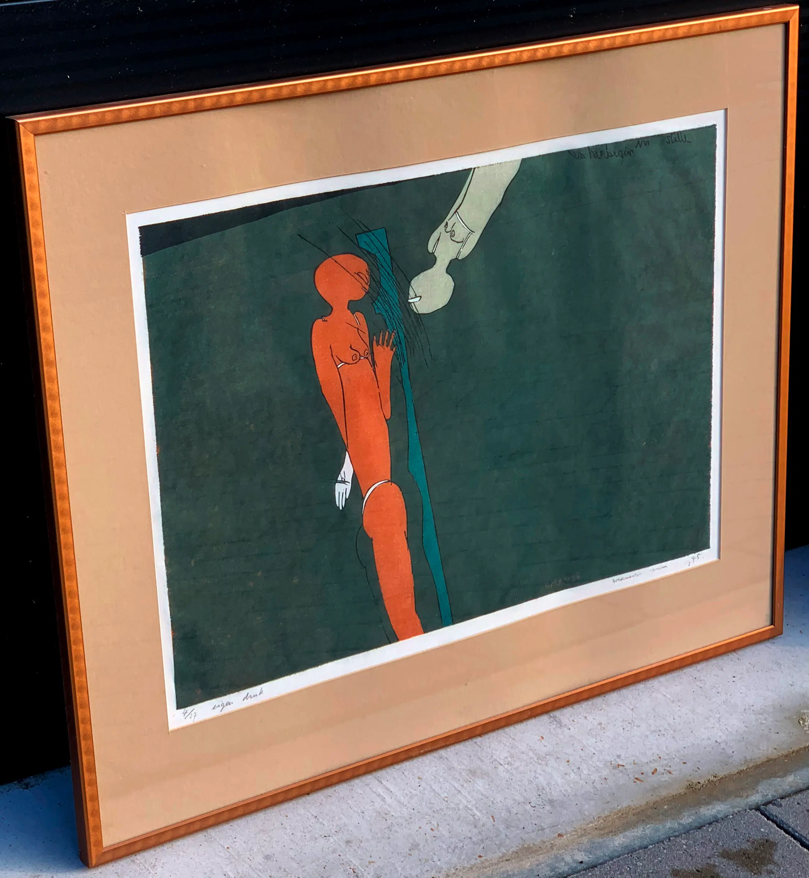 Passe-partout/lijsten: Beschadigingen aan een lijst worden niet beschreven. Indien het werk achter glas is ingelijst en het glas gebroken is, zal dit wel vermeld worden. Passe-partouts worden op geen enkele manier gegarandeerd en ook niet altijd meegezonden.