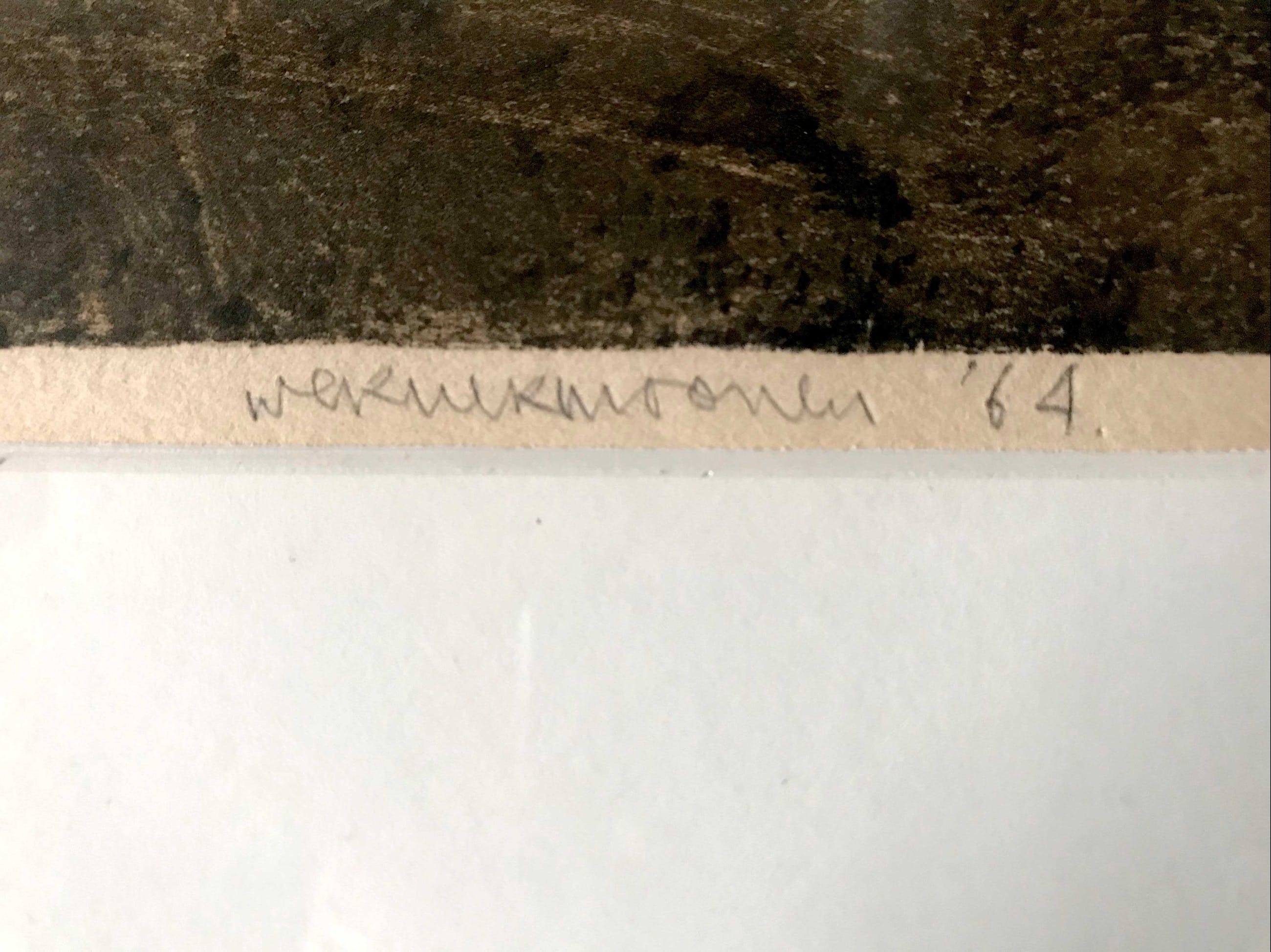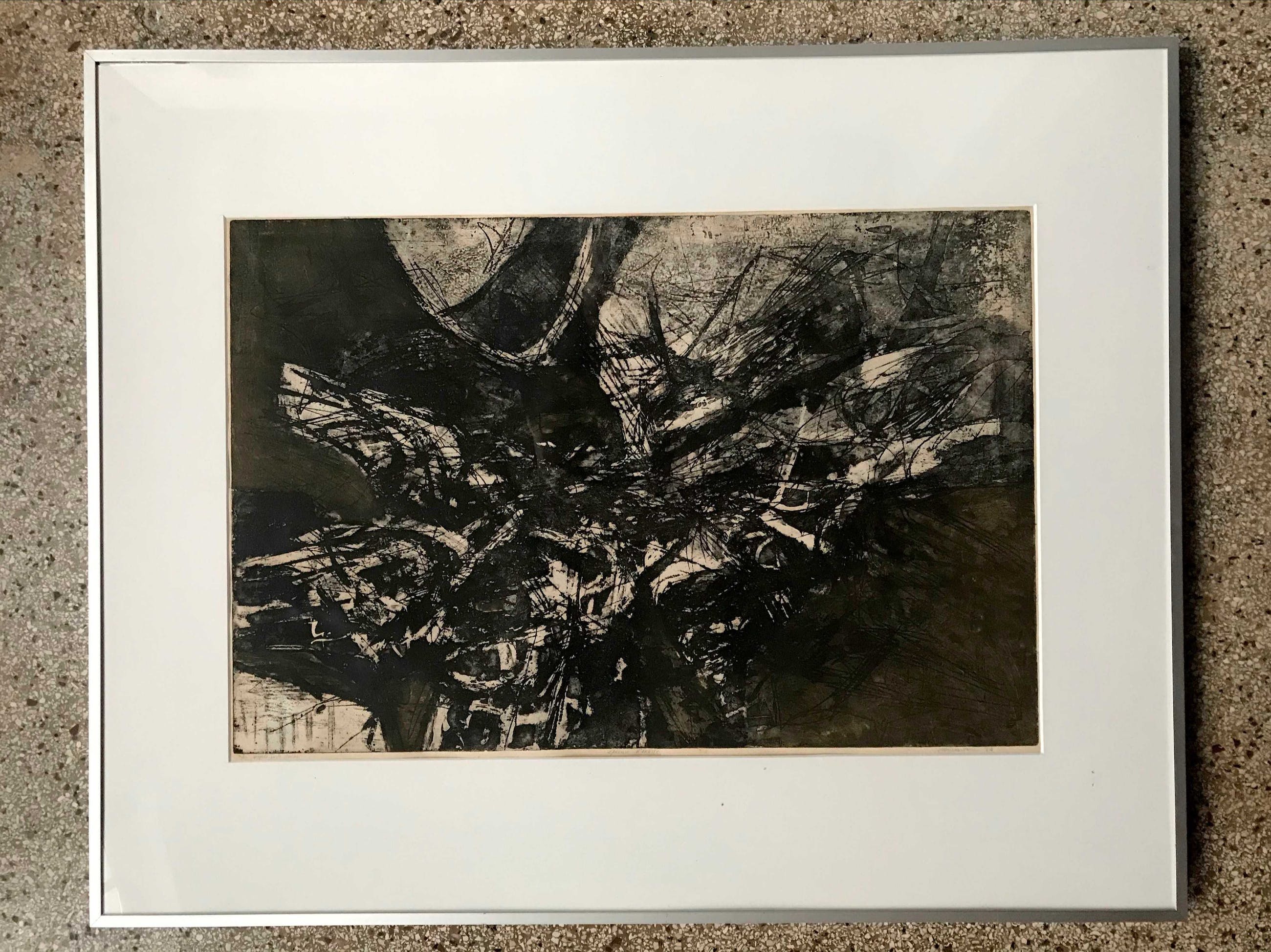 Imposante ets met groen-tinten van Werner Erik Moonen (1940-2011).