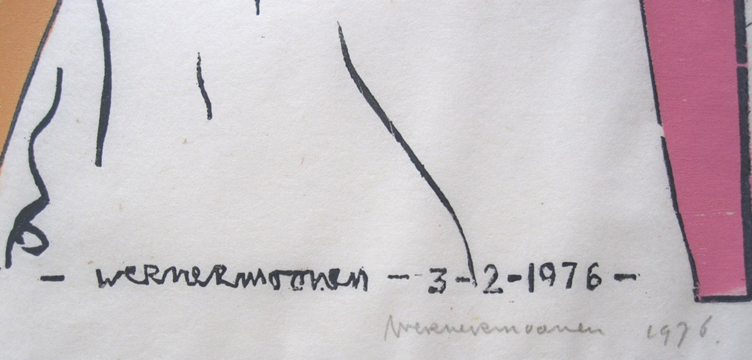 Houtsnede ''Zonder Titel'' uit 1976 van Werner Moonen (1940-2011)