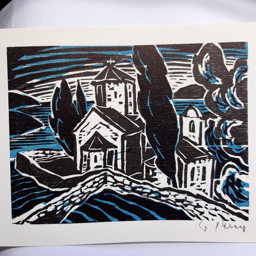 Werner Persy - Griechische Kirche. 2-Farben-Holzschnitt