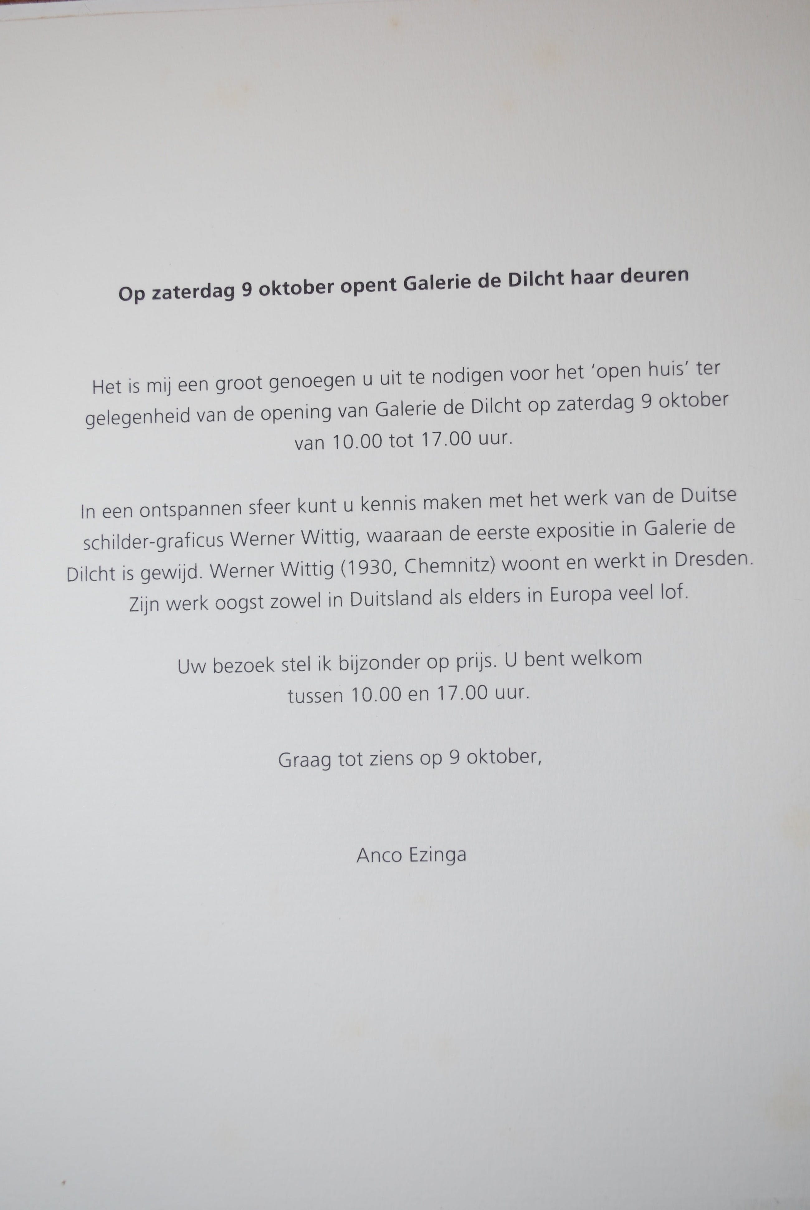 De uitnodigingskaart zit achter de houtsnede als steun.
