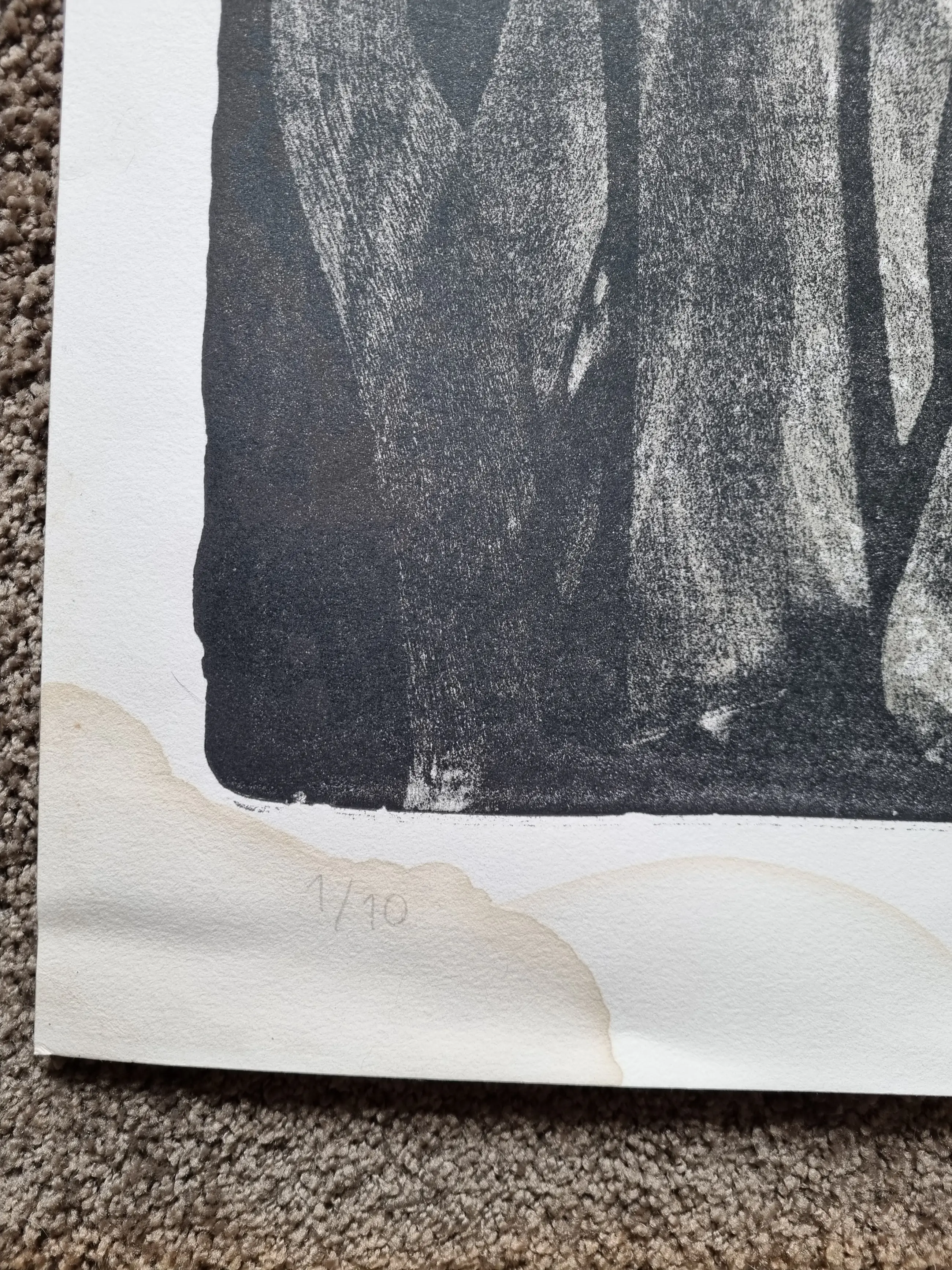 De werken zijn zo'n 78x58 cm groot en hebben onderaan vochtvlekken, welke professioneel te verwijderen zijn.