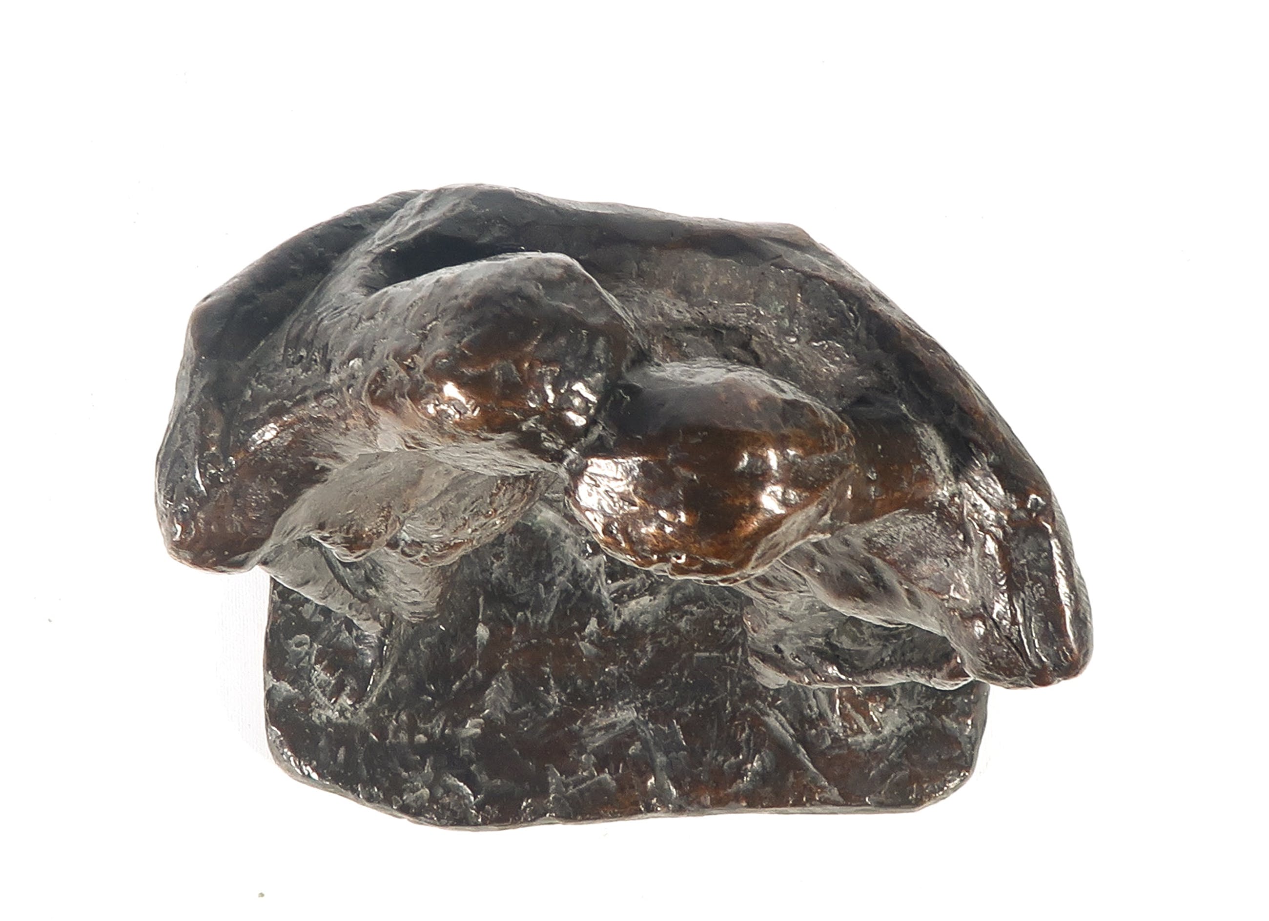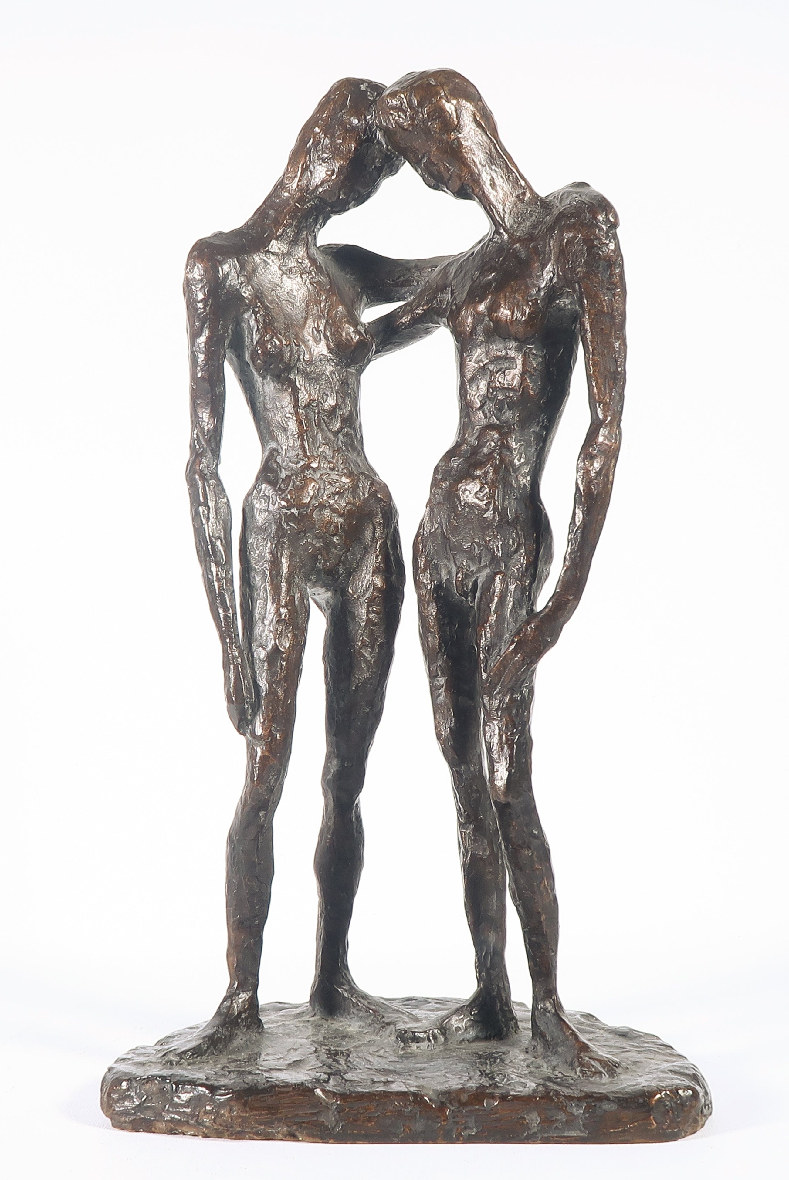 Bruin gepatineerd bronzen beeld van Wessel Couzijn, gesigneerd met W.C.