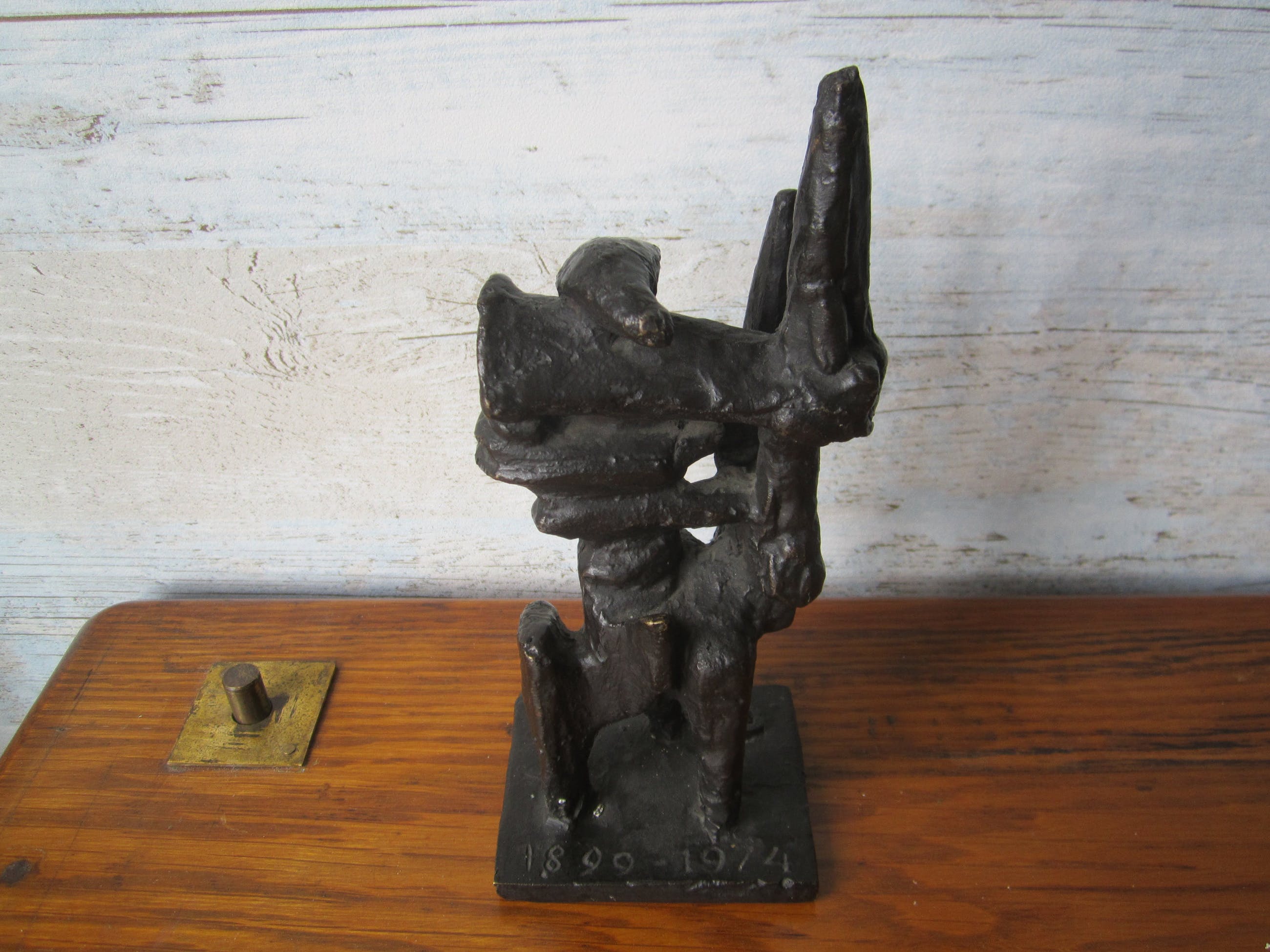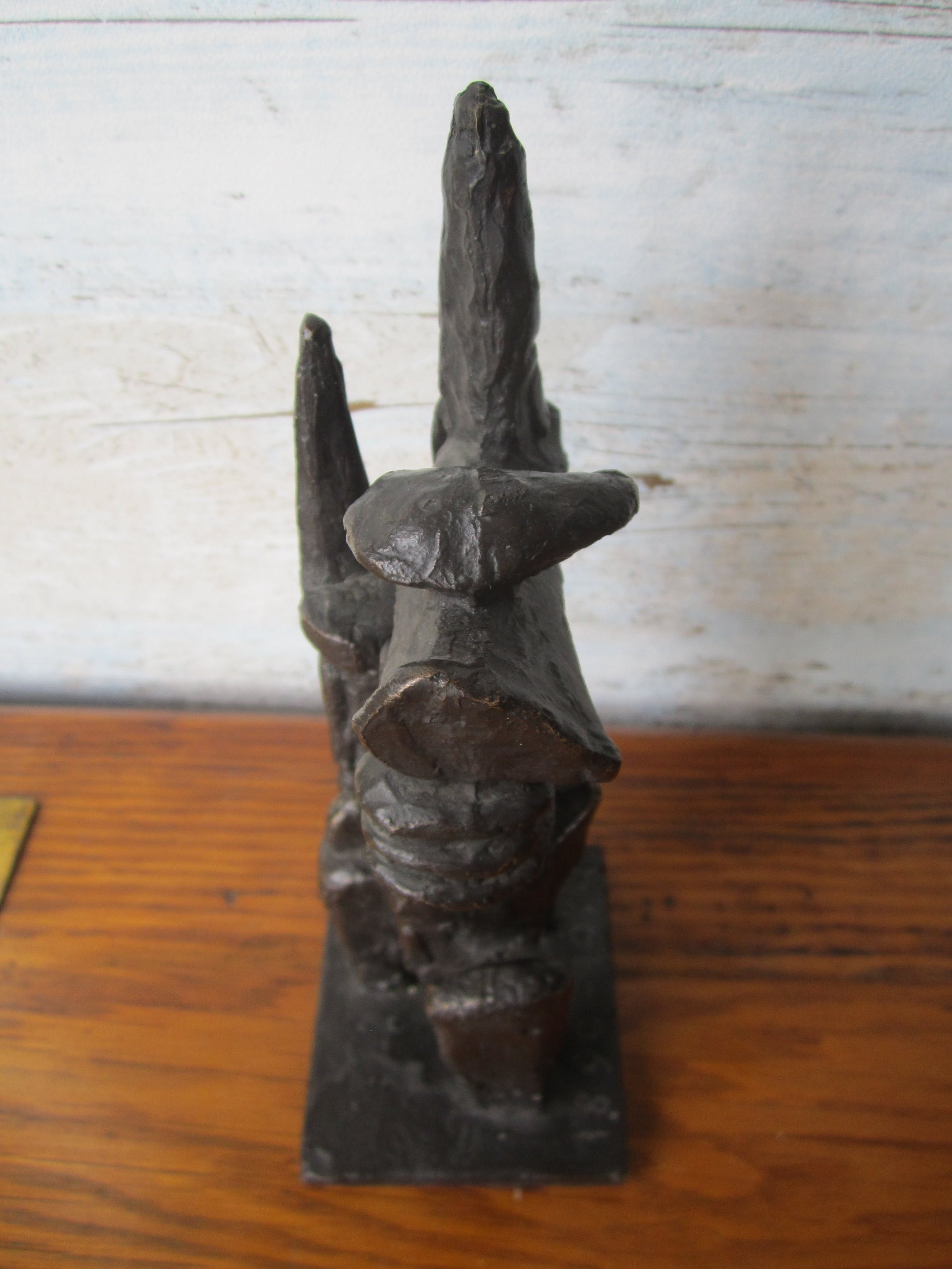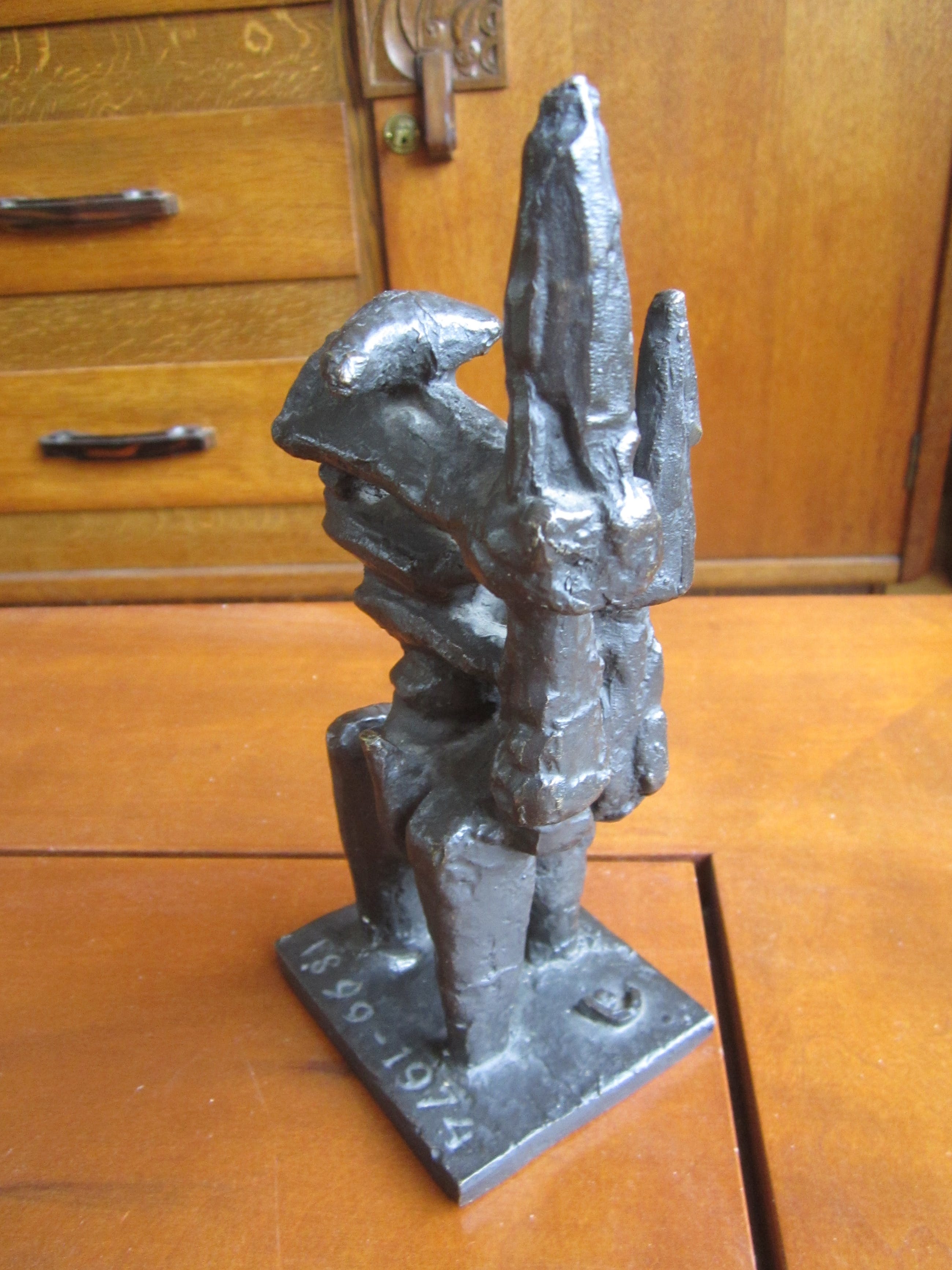 Abstract beeld ruiter te paard - bronzen beeld - gesigneerd met teken en datering 1899 - 1974 Een mooi beeld gemerkt met een teken voor Wessel Couzijn en aan de voet met jaartellen 1899 - 1975. Het is waarschijnlijk gemaakt voor het 75jarige bestaan van een bedrijf. Het beeld is massief gegoten brons en is 20 cm hoog. Mooie donkere patina.