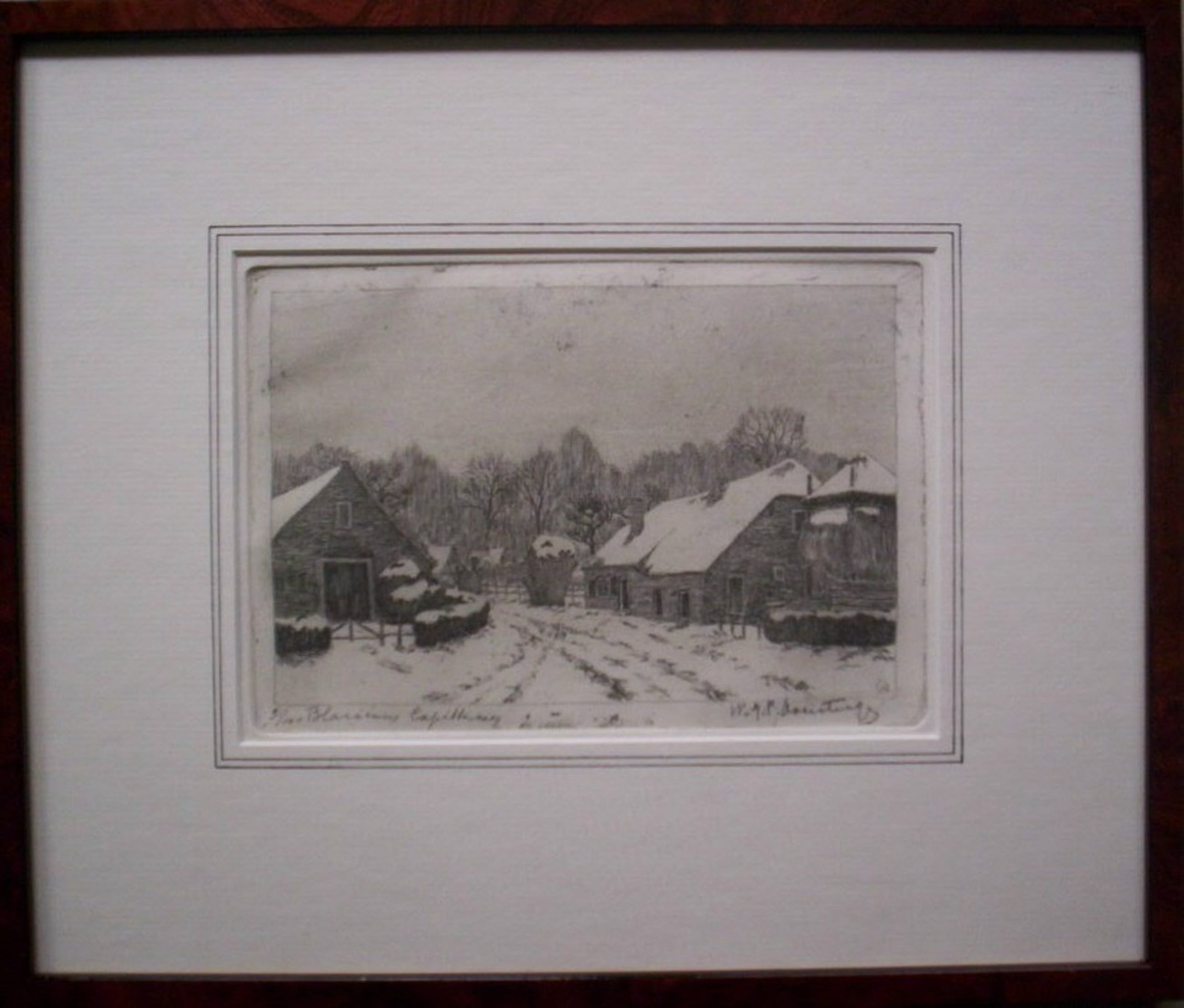 Prachtig gedetaillerde ingelijste ets van de kunstenaar W.G.F.Oversteegen v.d. Capittenweg te Blaricum.