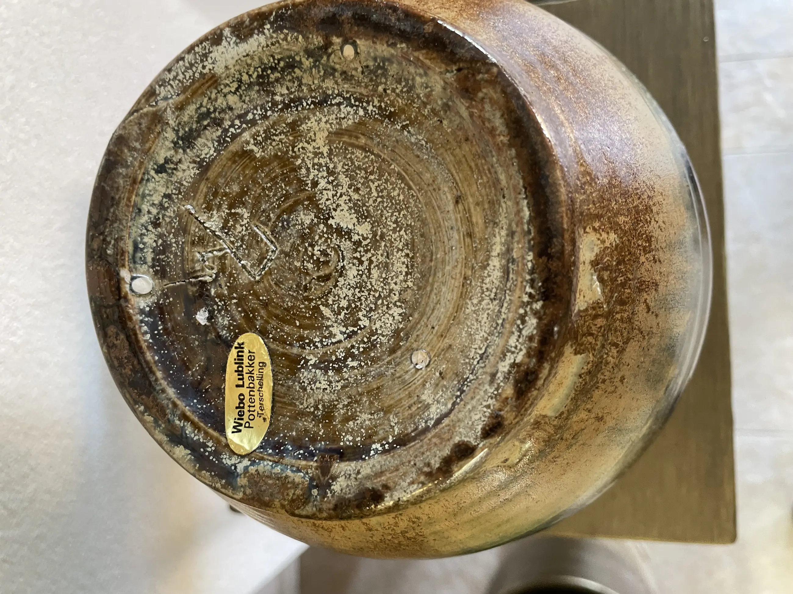 Deze vaas is tussen 1980-1990 op Terschelling gekocht in de pottenbakkerij van Wiebo Lublink. De vaas verkeerd in uitstekende staat.