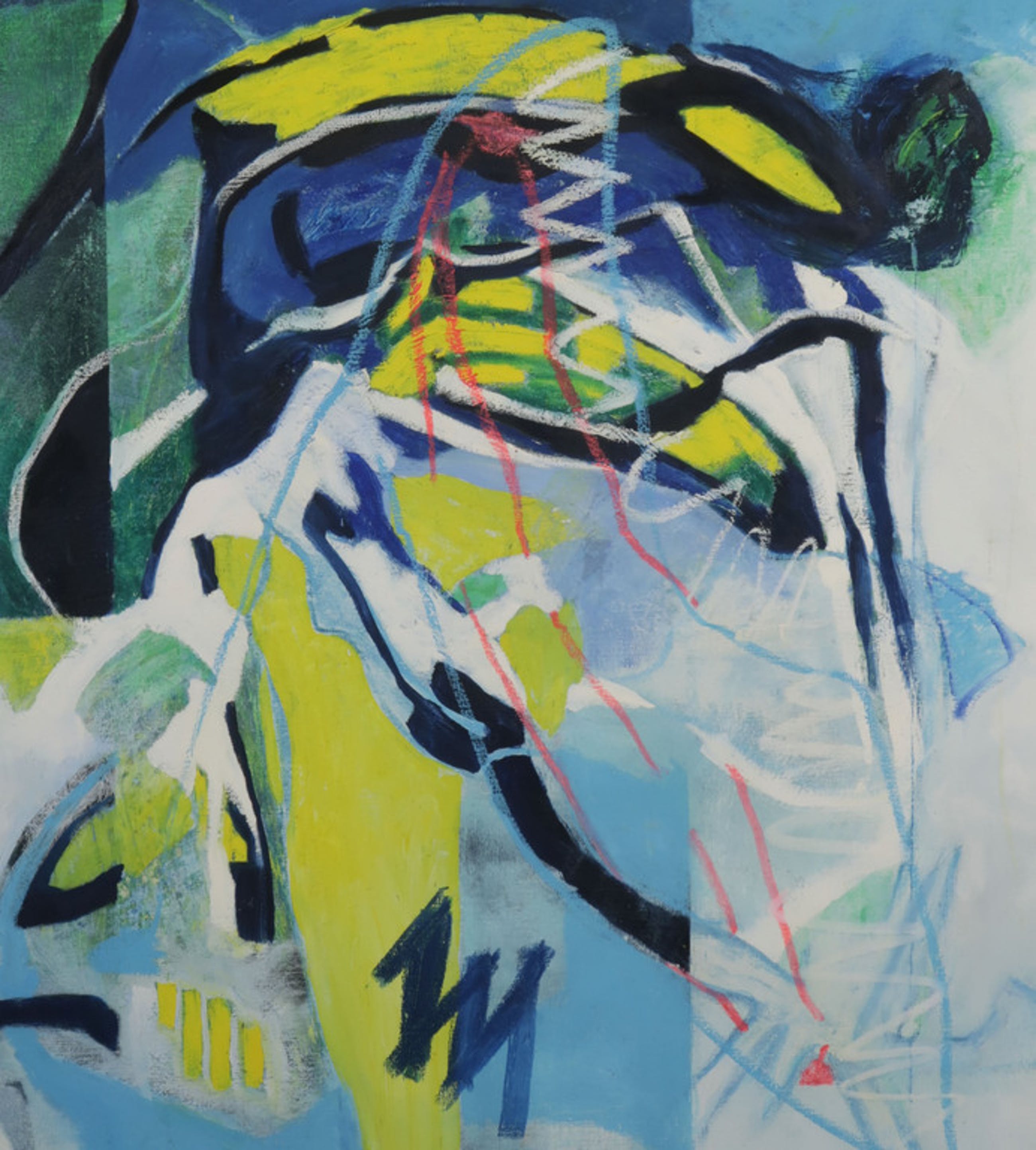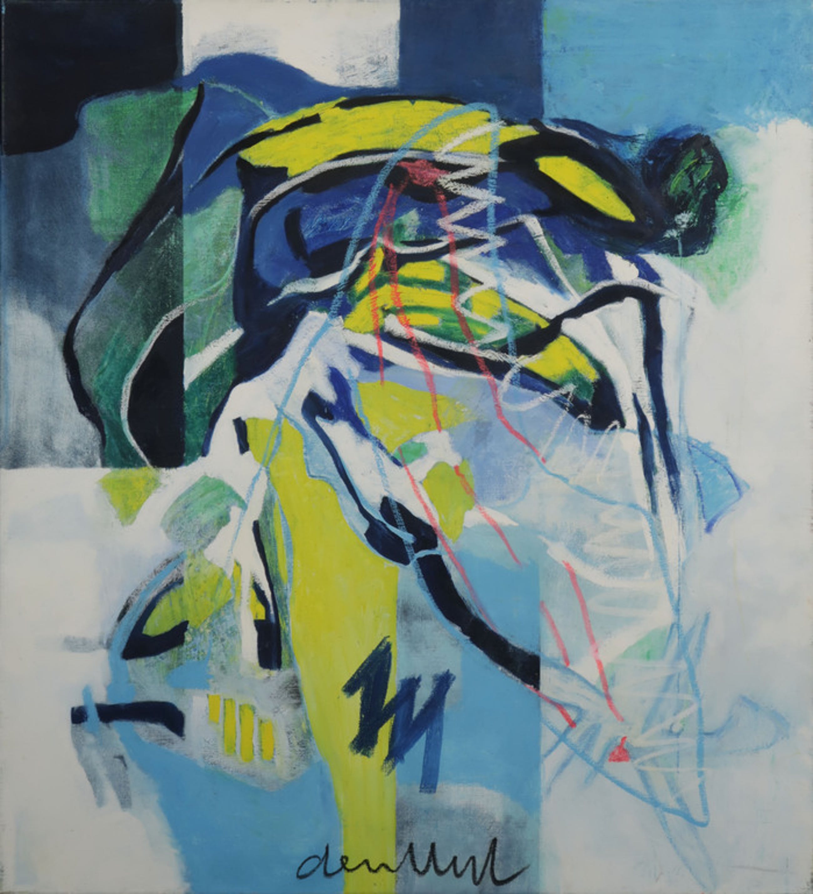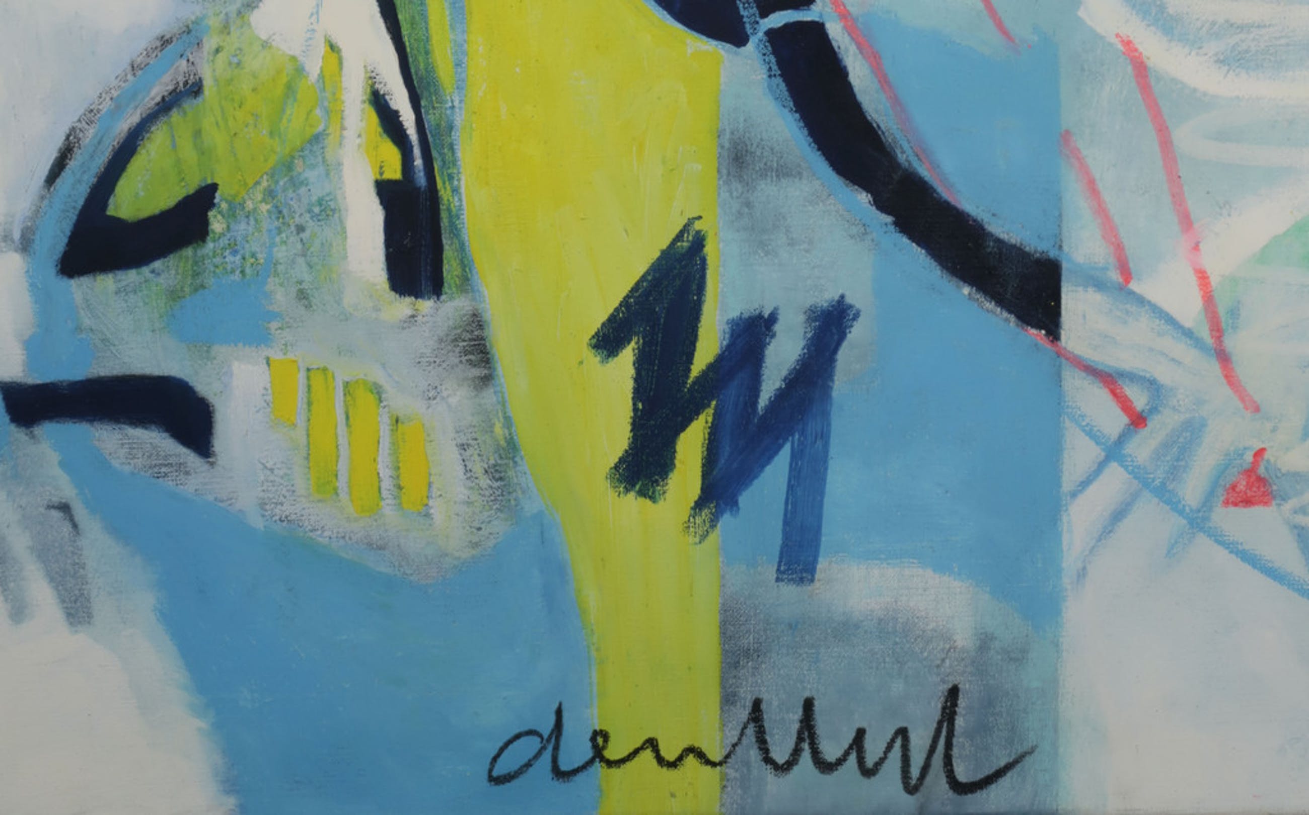 Conditie kunstwerk: In goede staat, maar met wat lichte beschadigingen langs de randen van het doek.