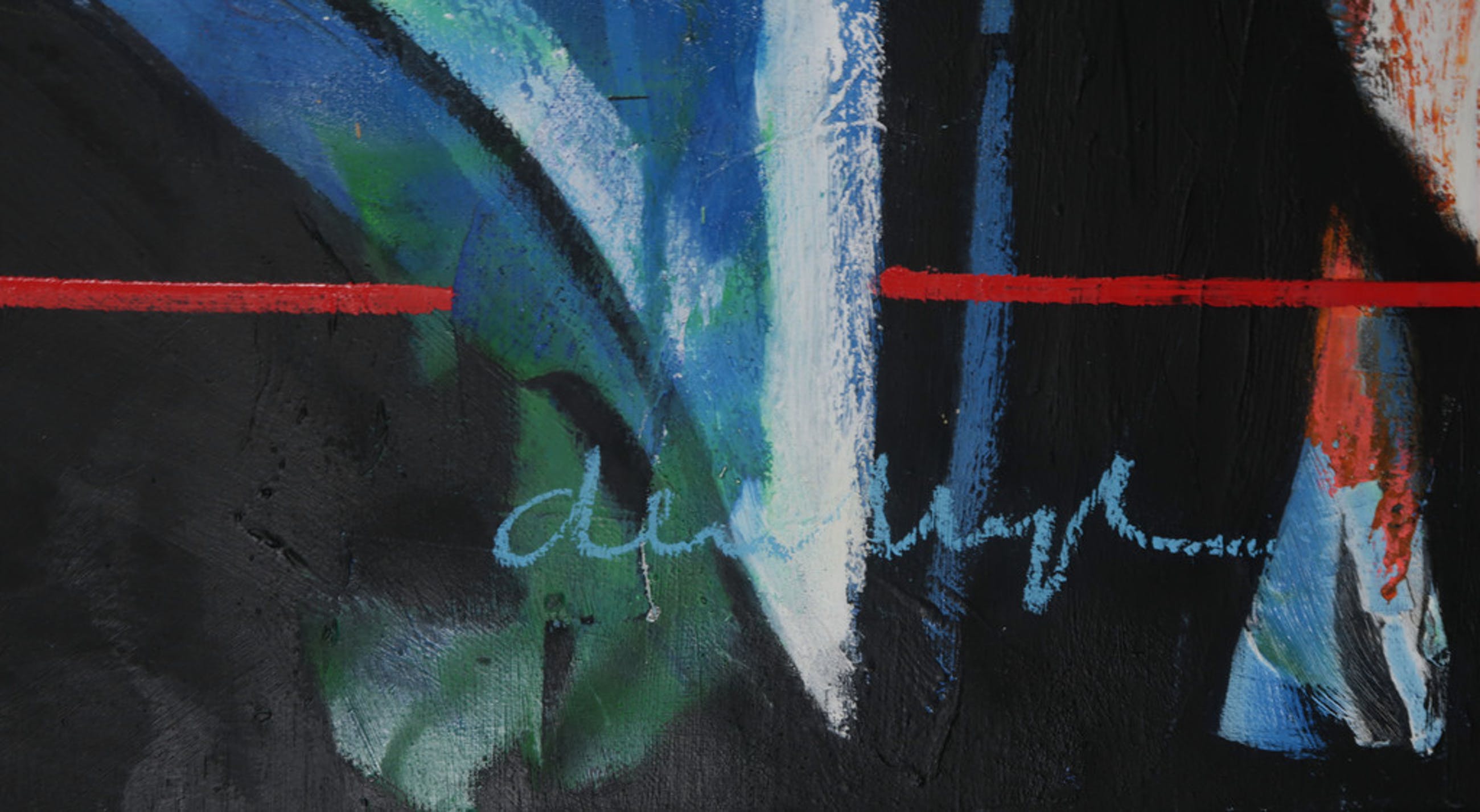 Conditie kunstwerk: In goede staat. Met beschadigingen en stukjes verfverlies langs de randen van het doek.
