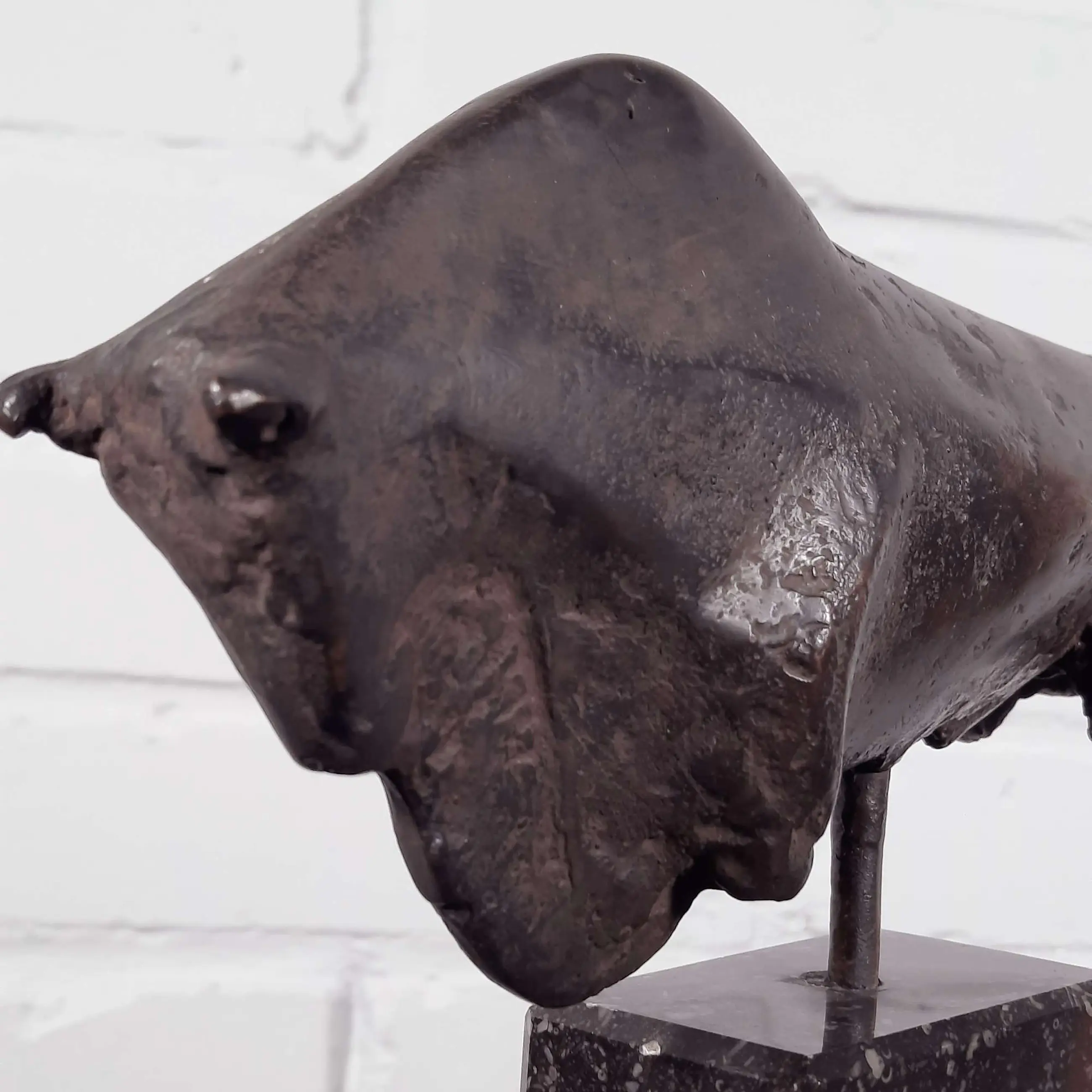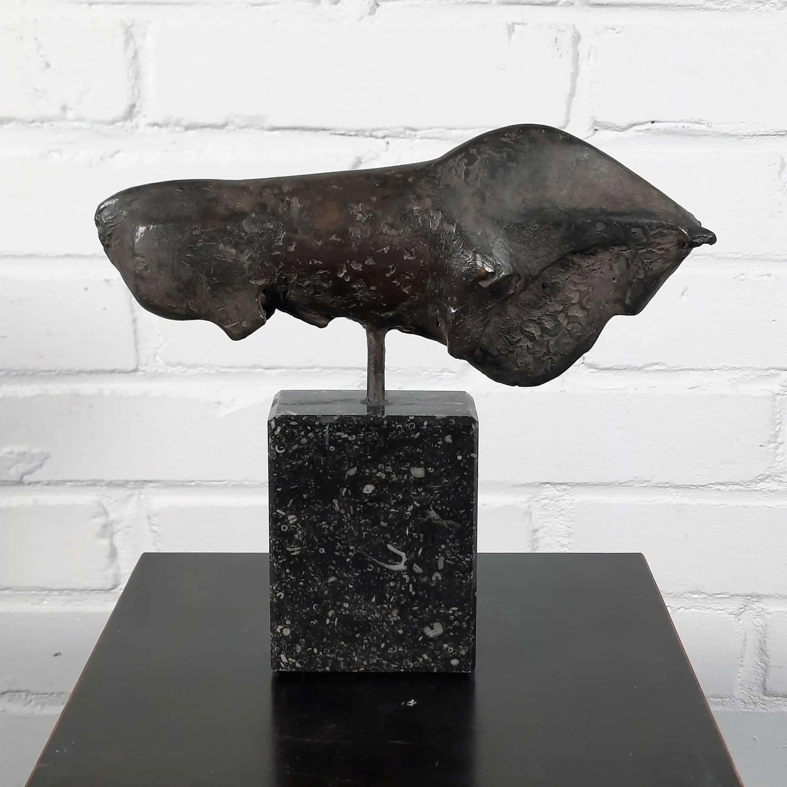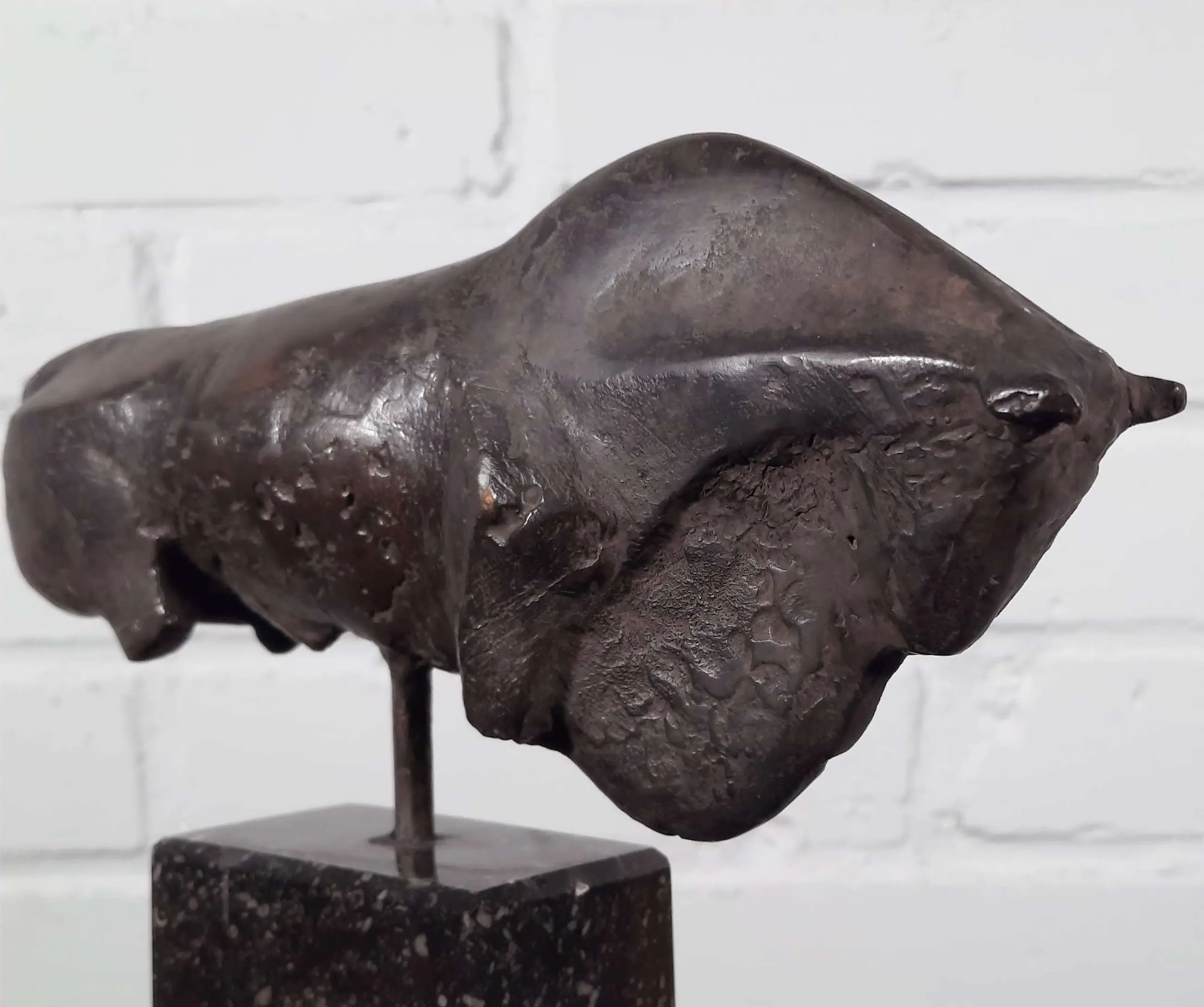 Mooi en gaaf werk van kunstenaar Wien Cobbenhagen op sokkel. Cobbenhagen studeerde aan de Tilburgse academie (1970-1972), bij Gerard Princée en Felix van der Linden, en vervolgens aan de Rijksakademie van beeldende kunsten in Amsterdam (1972-1976), als leerling van Piet Esser, Paul Grégoire en Theresia van der Pant. Hij won de Willem F.C. Uriôt Kunstprijs.