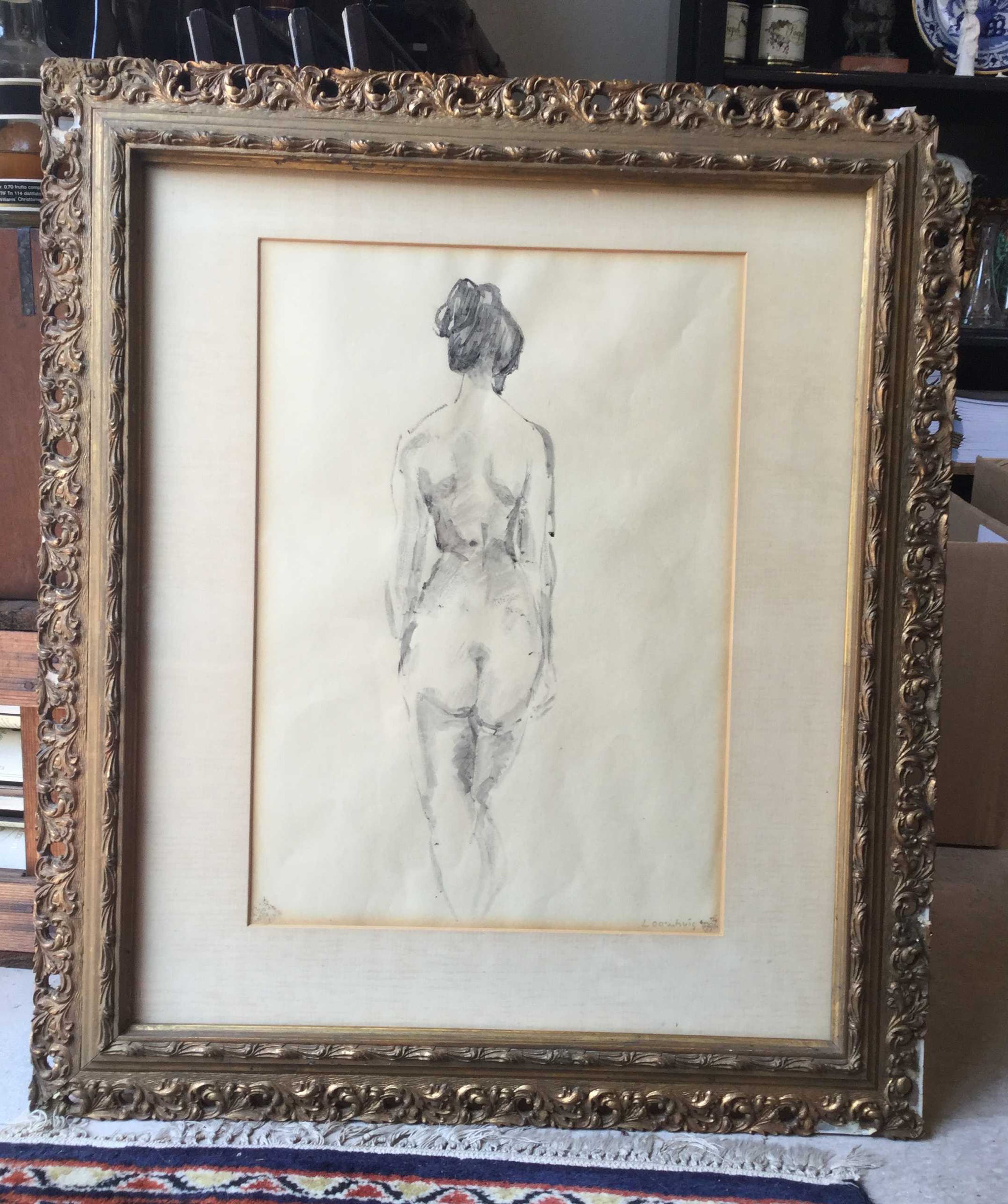 Wiert Hendrik Leemhuis, vrouwelijk naakt, gemengde techniek op papier, r.o. gesign., beeldmaat 41x29, lijst: 63x54.
