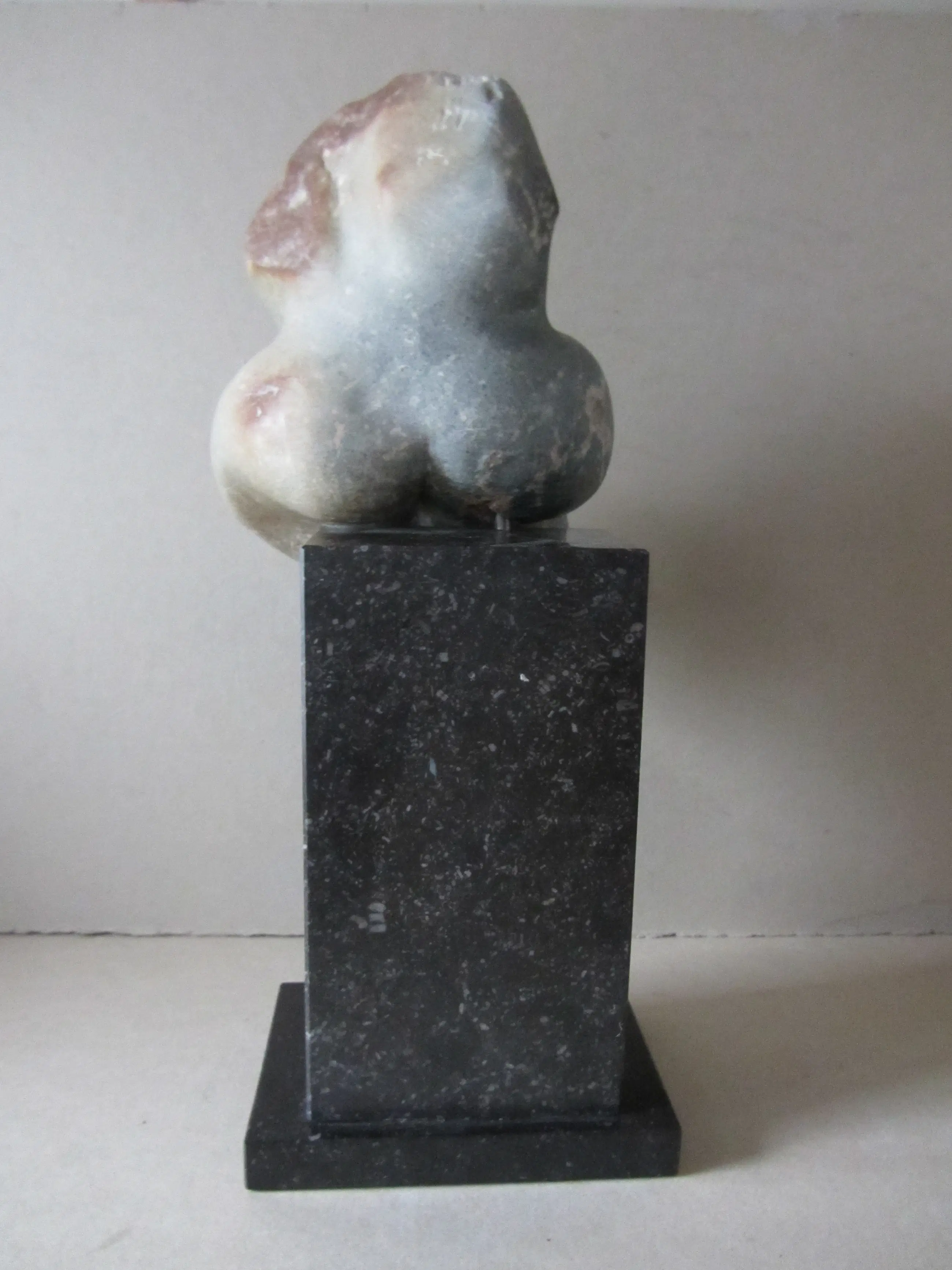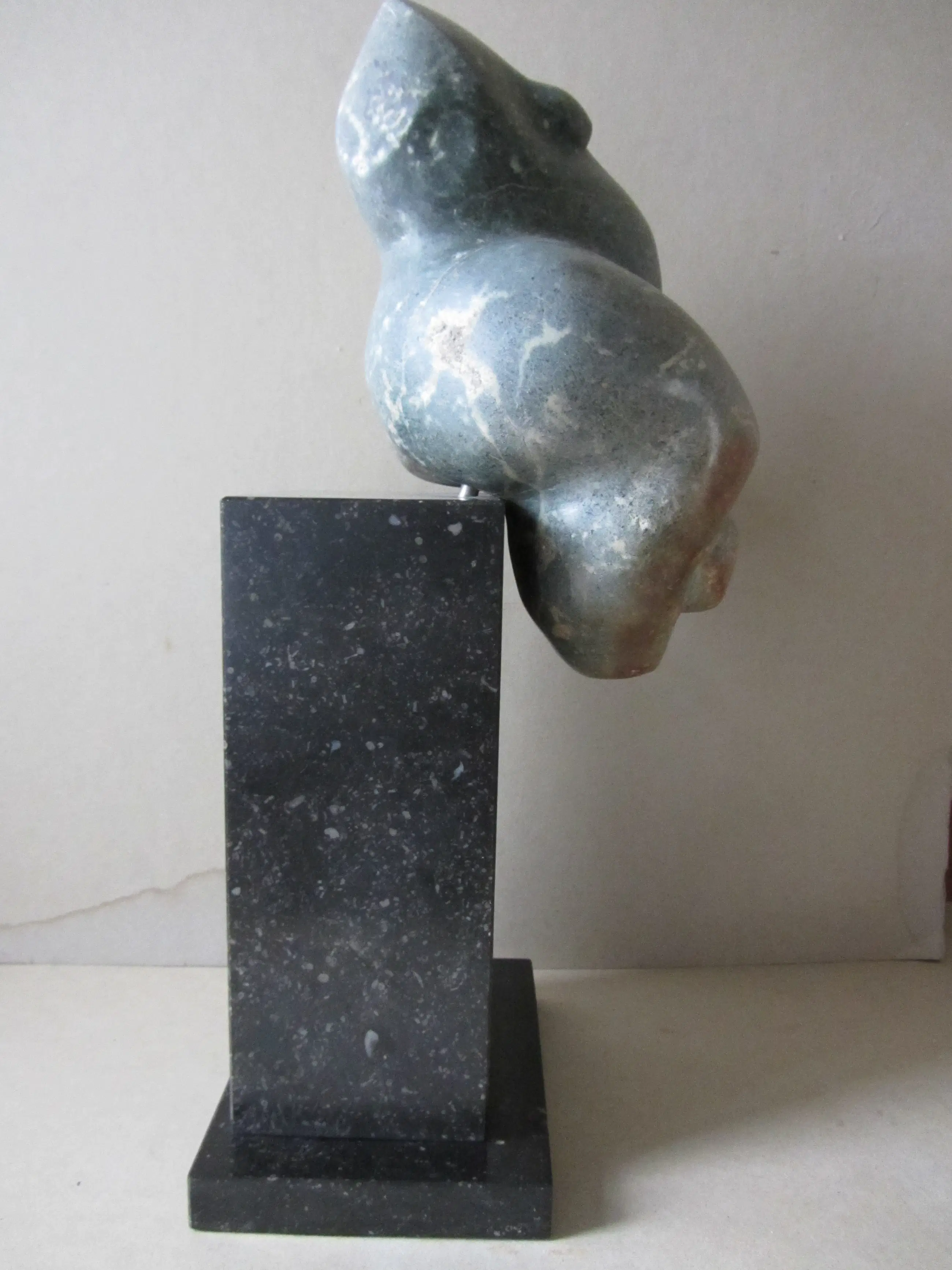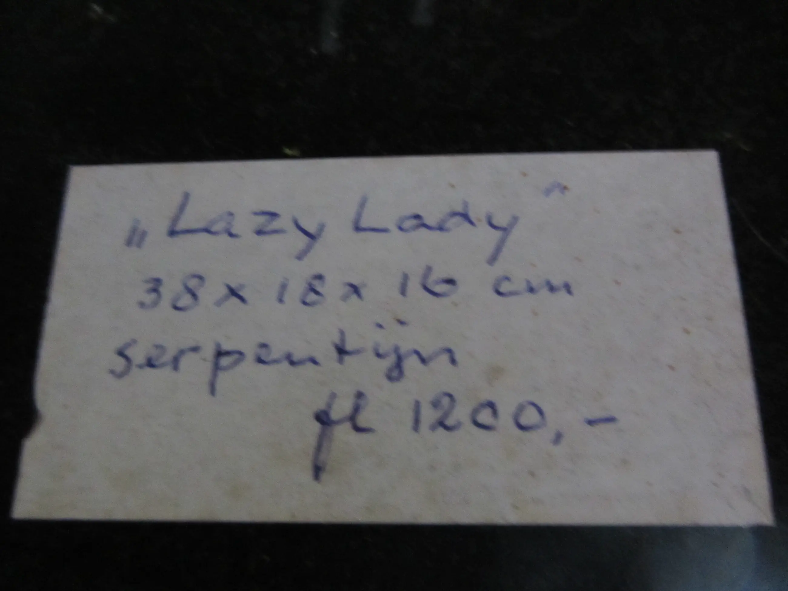 Stenen beeld (Serpentijn) van Wies van Dort. Getiteld: Lazy Lady. Rechtstreeks van Wies van Dort gekocht.