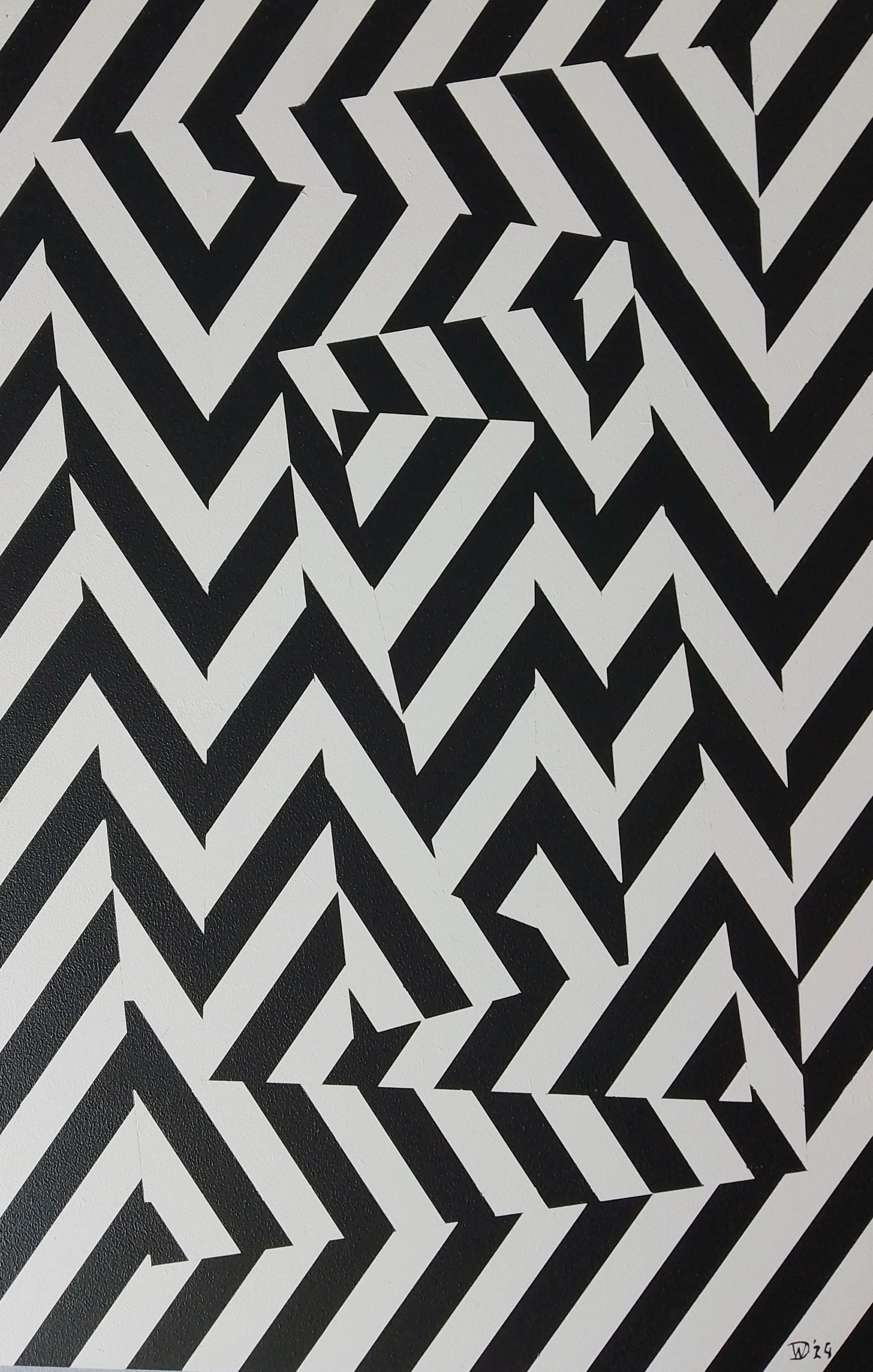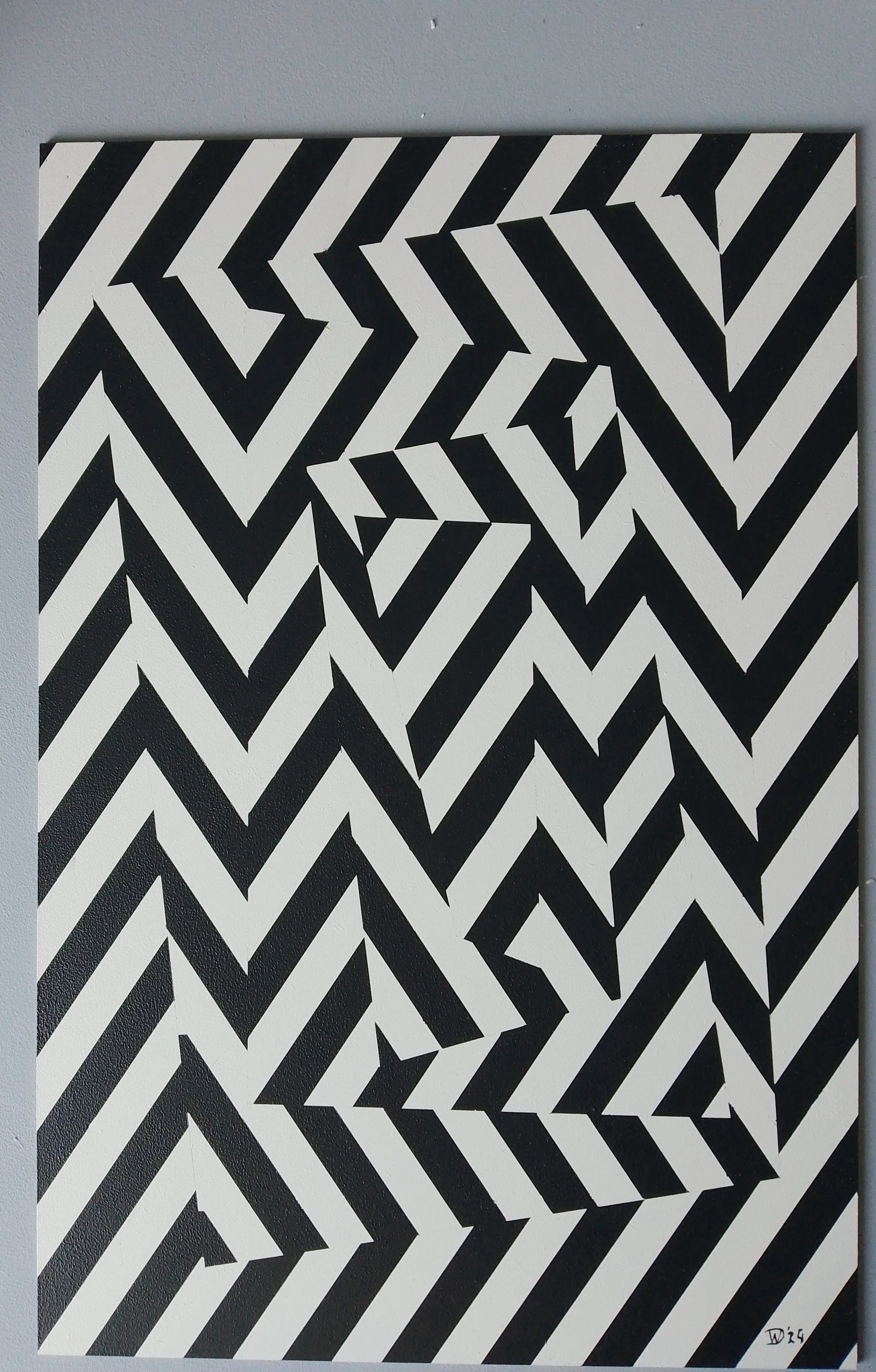 Abstract optisch kunstwerk. In goede staat. Het is gemaakt met acrylverf op MDF-paneel. Voor bescherming gelakt met matte acryllak.
