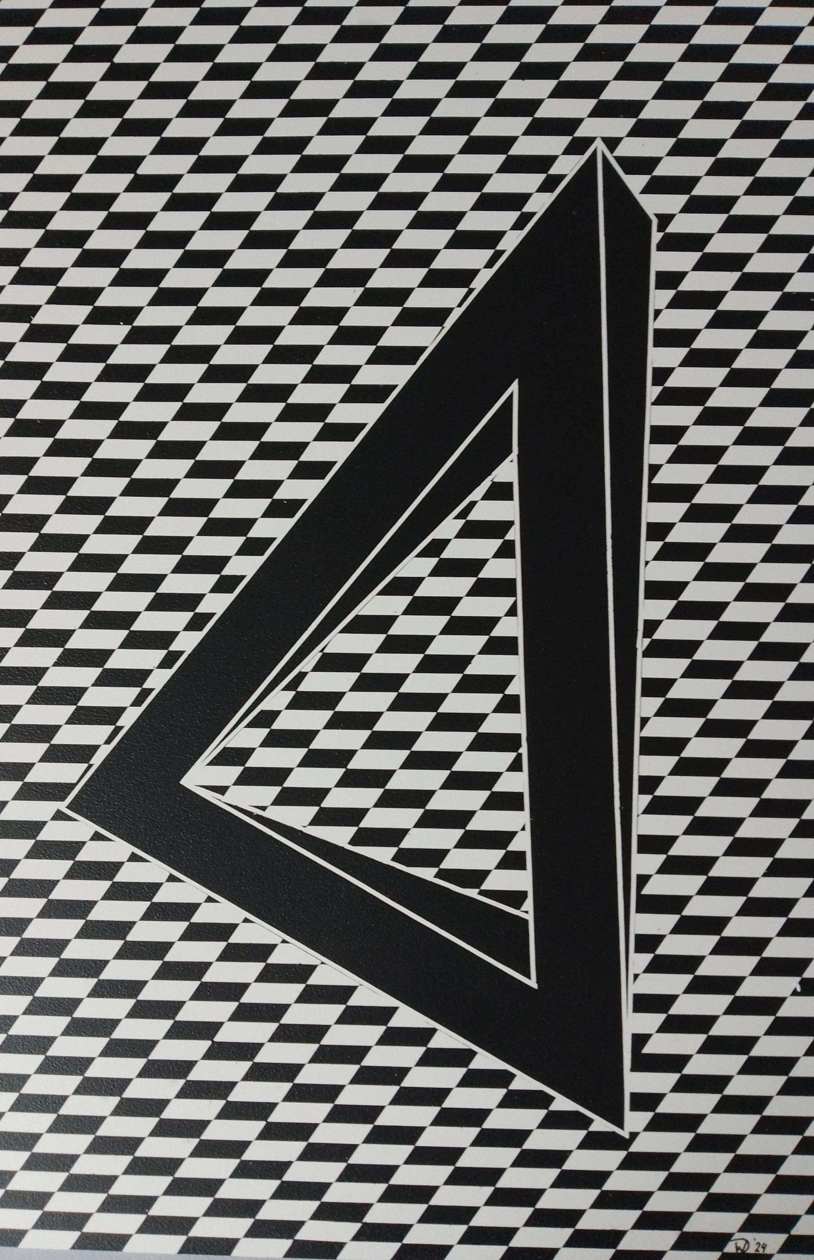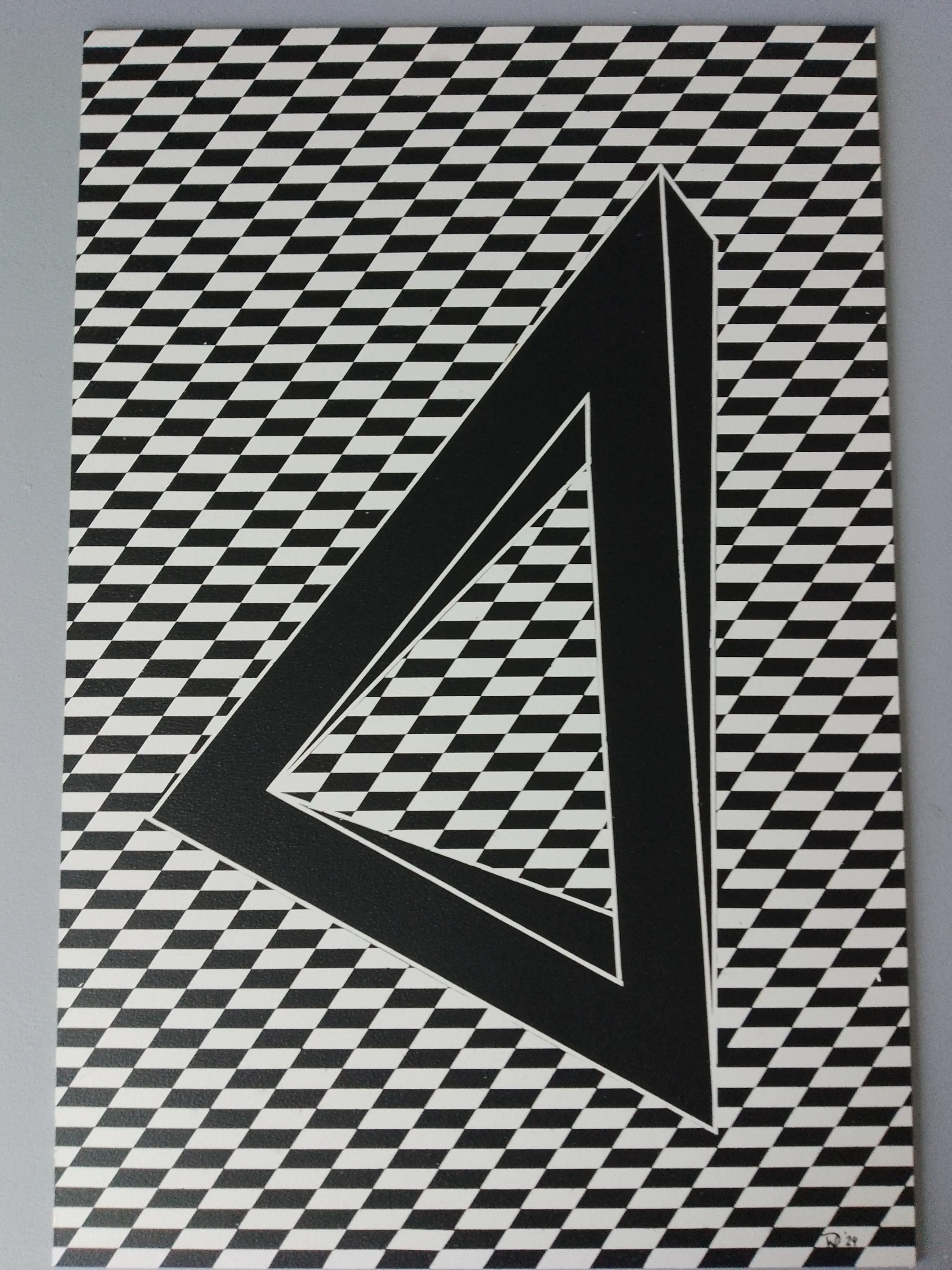 Abstract optisch kunstwerk. In goede staat. Het is gemaakt met acrylverf op MDF-paneel. Voor bescherming gelakt met matte acryllak.