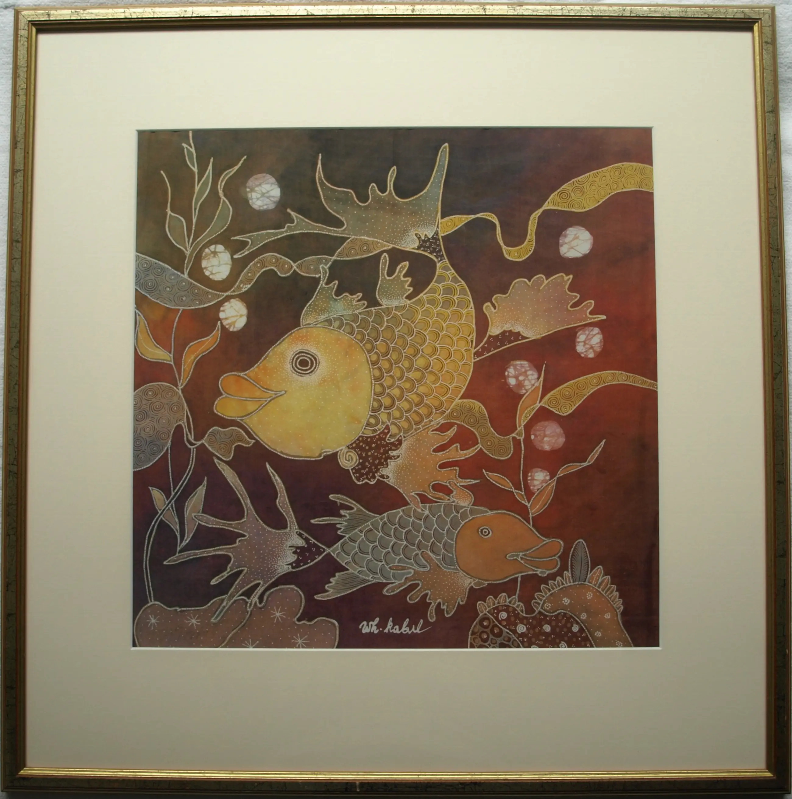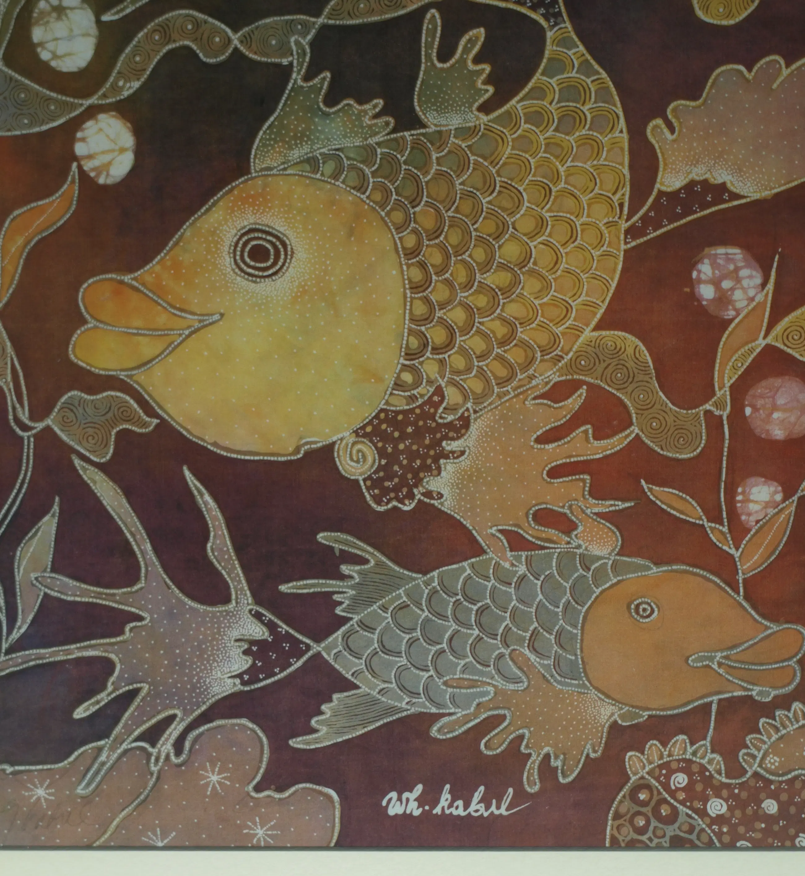 Wiji Hartono Kabul - Batik op zijde , Vissen – Ingelijst, 72 x 71 cm