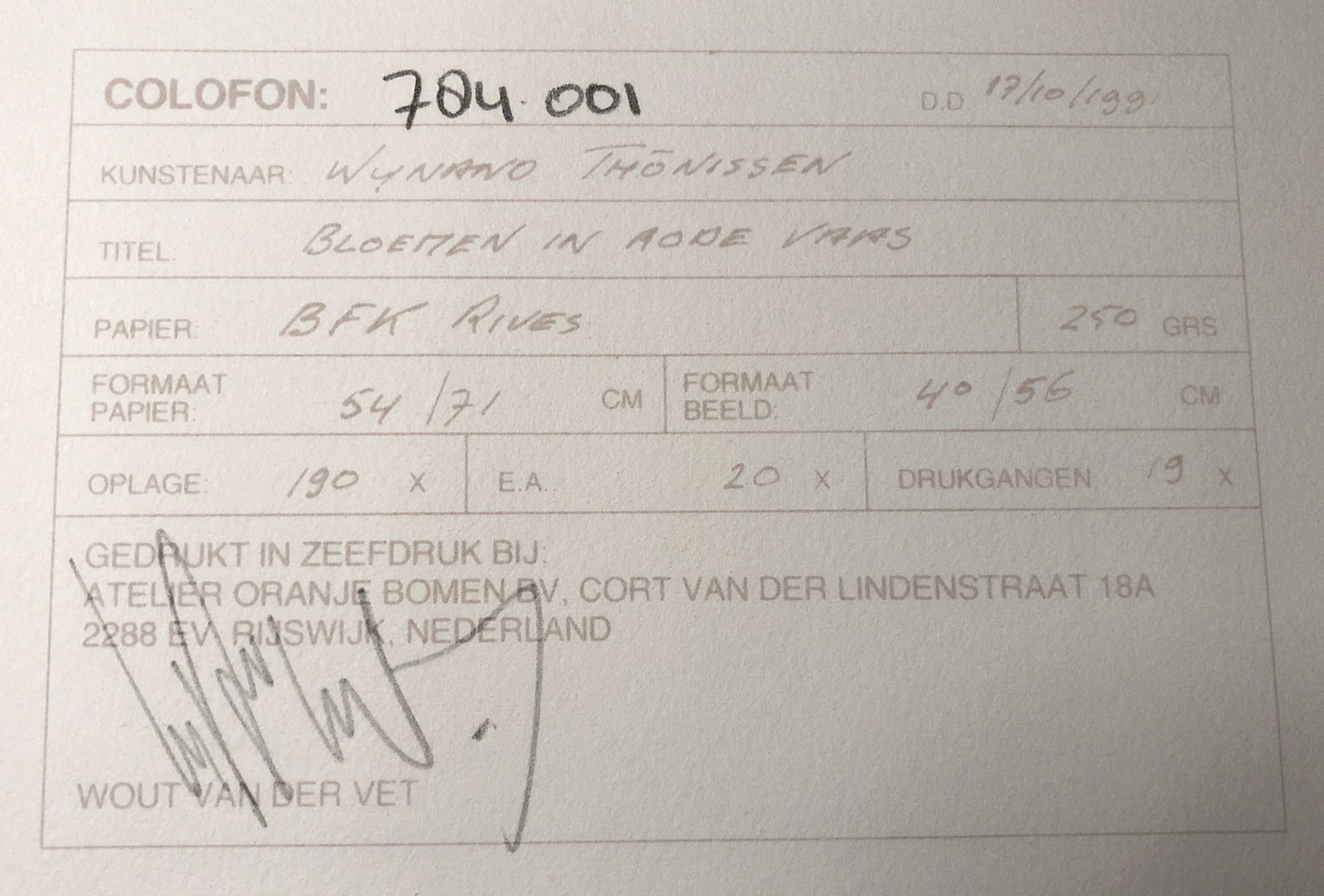 De zeefdruk is met de hand gedrukt door Wout van der Vet