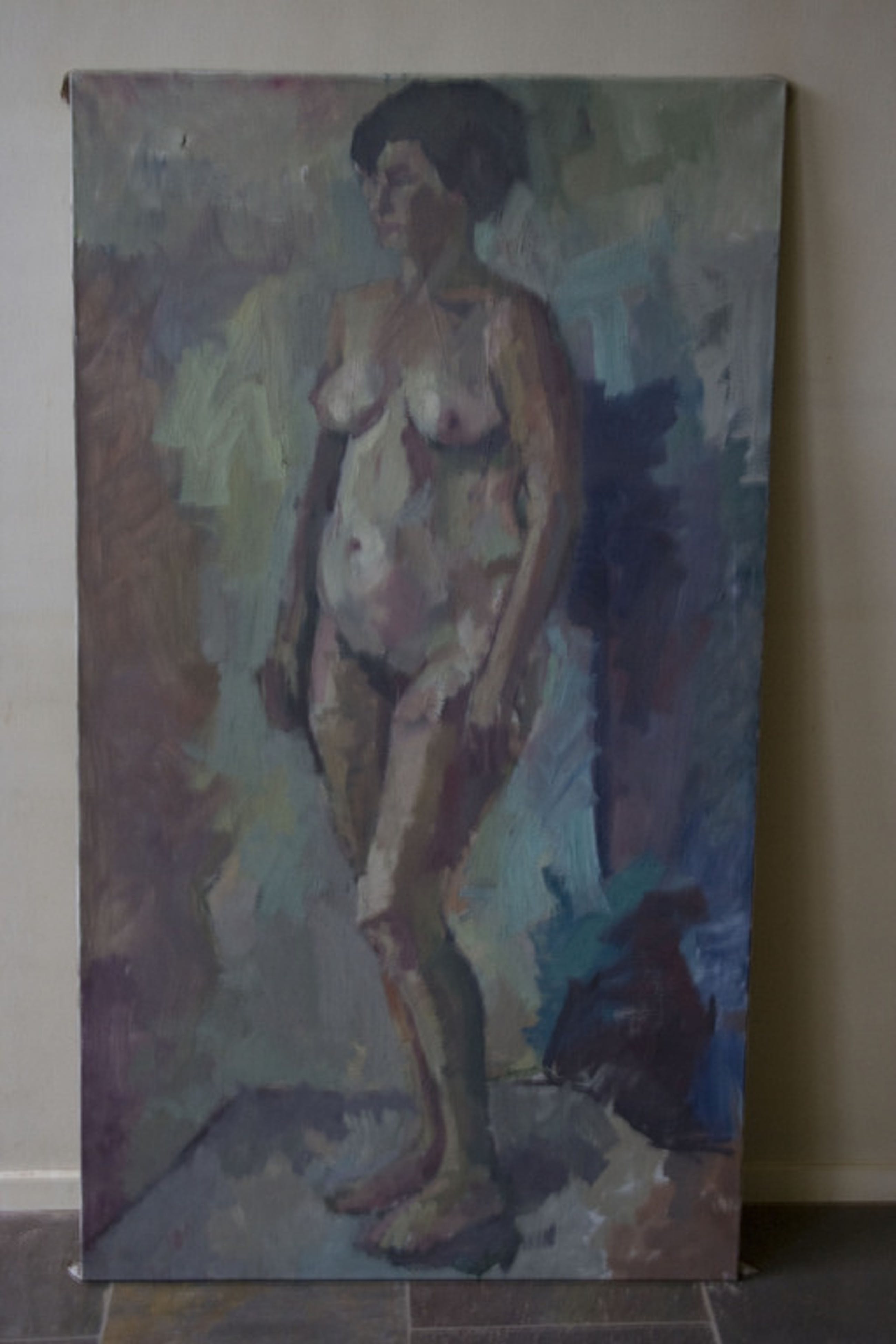 Vroeg werk van Wijnand van Lieshout, olieverf op doek , Staand Naakt hoogte 160cm breedte 90cm.