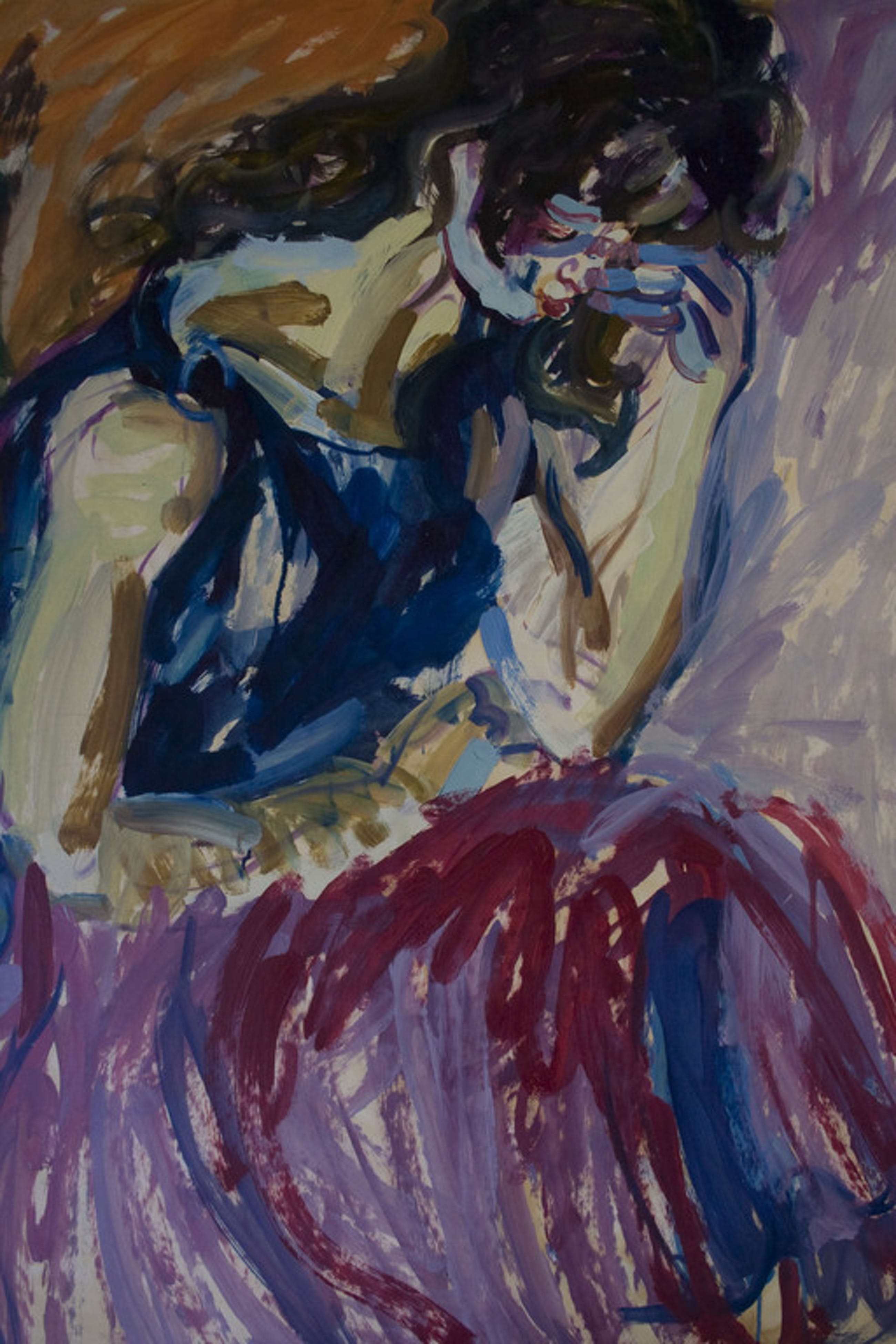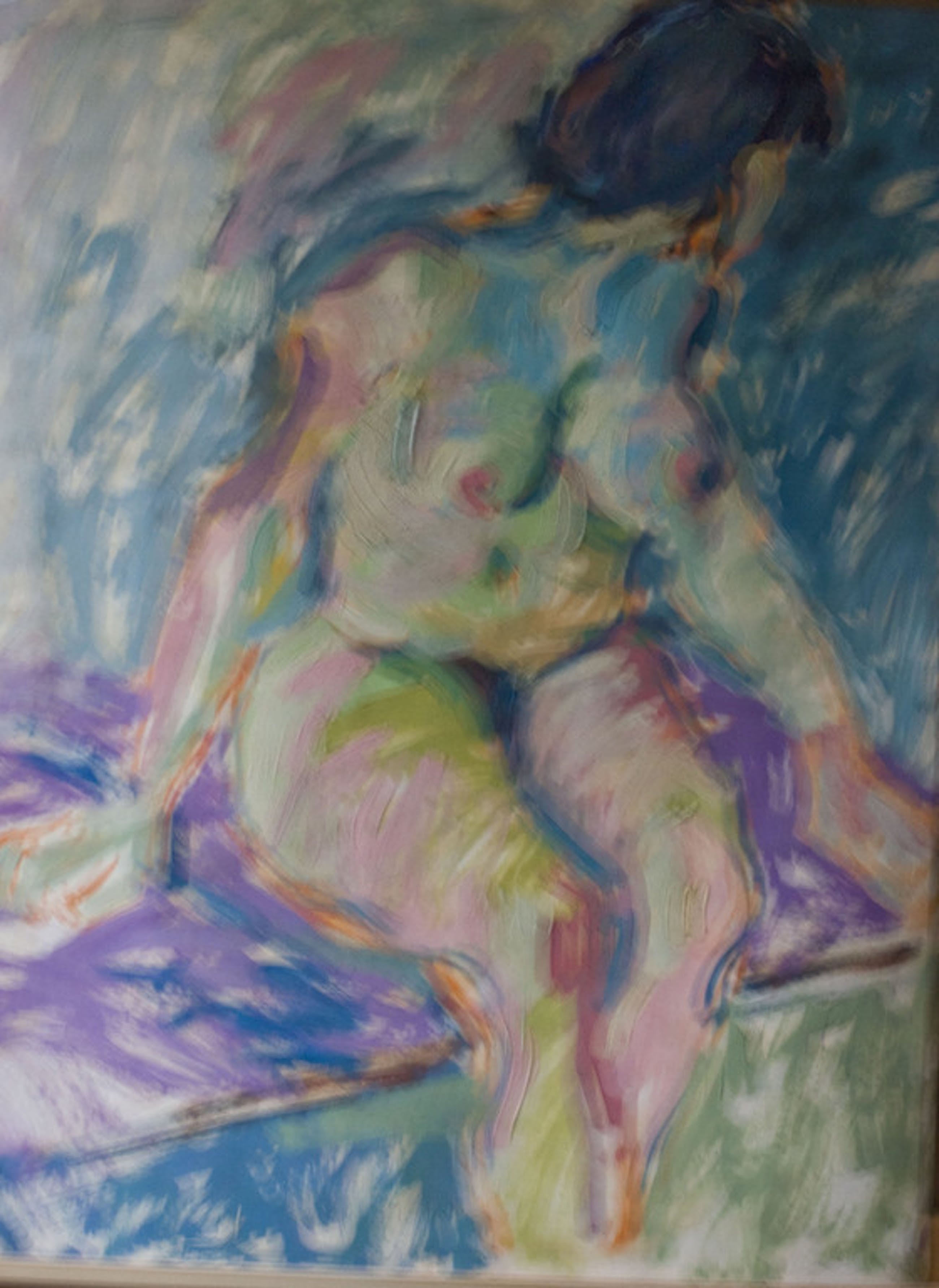Olieverf op papier hoogte 100cm, breedte 78cm. Aan ene kant naaktfiguur andere kant jonge vrouw. Zie foto.