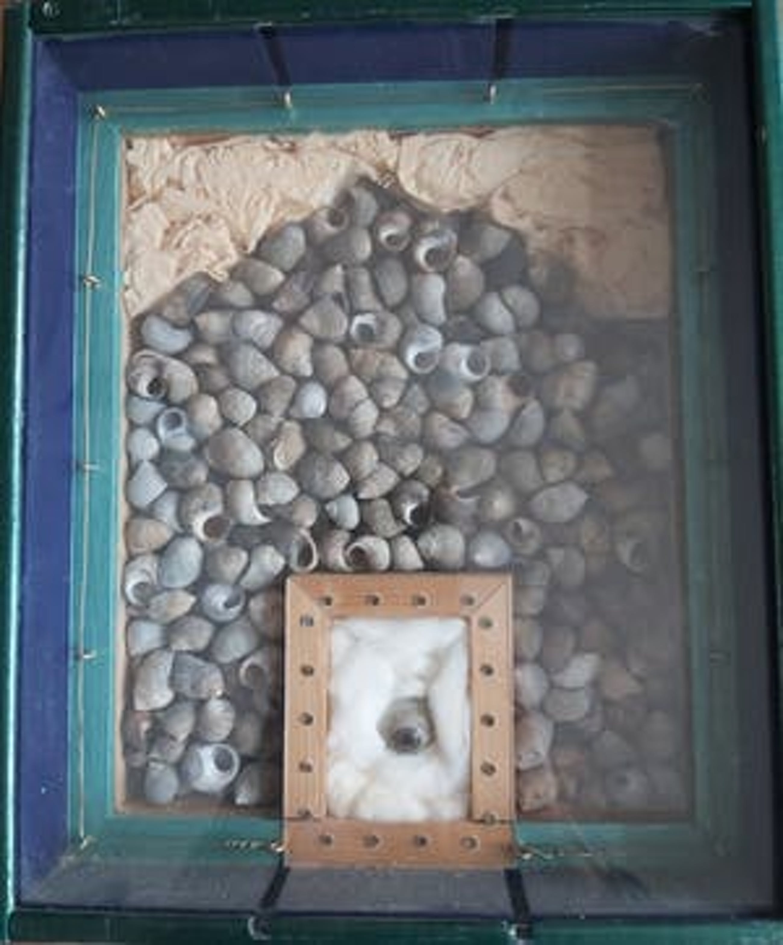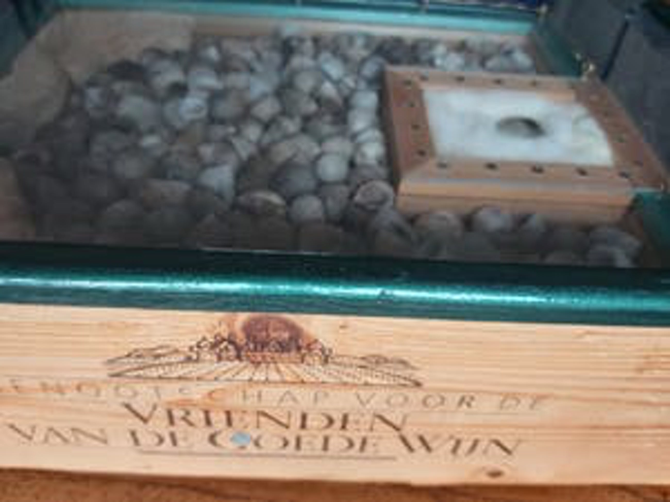 Bijzonderkunst object . Houten kist met glas (Zie fotos)