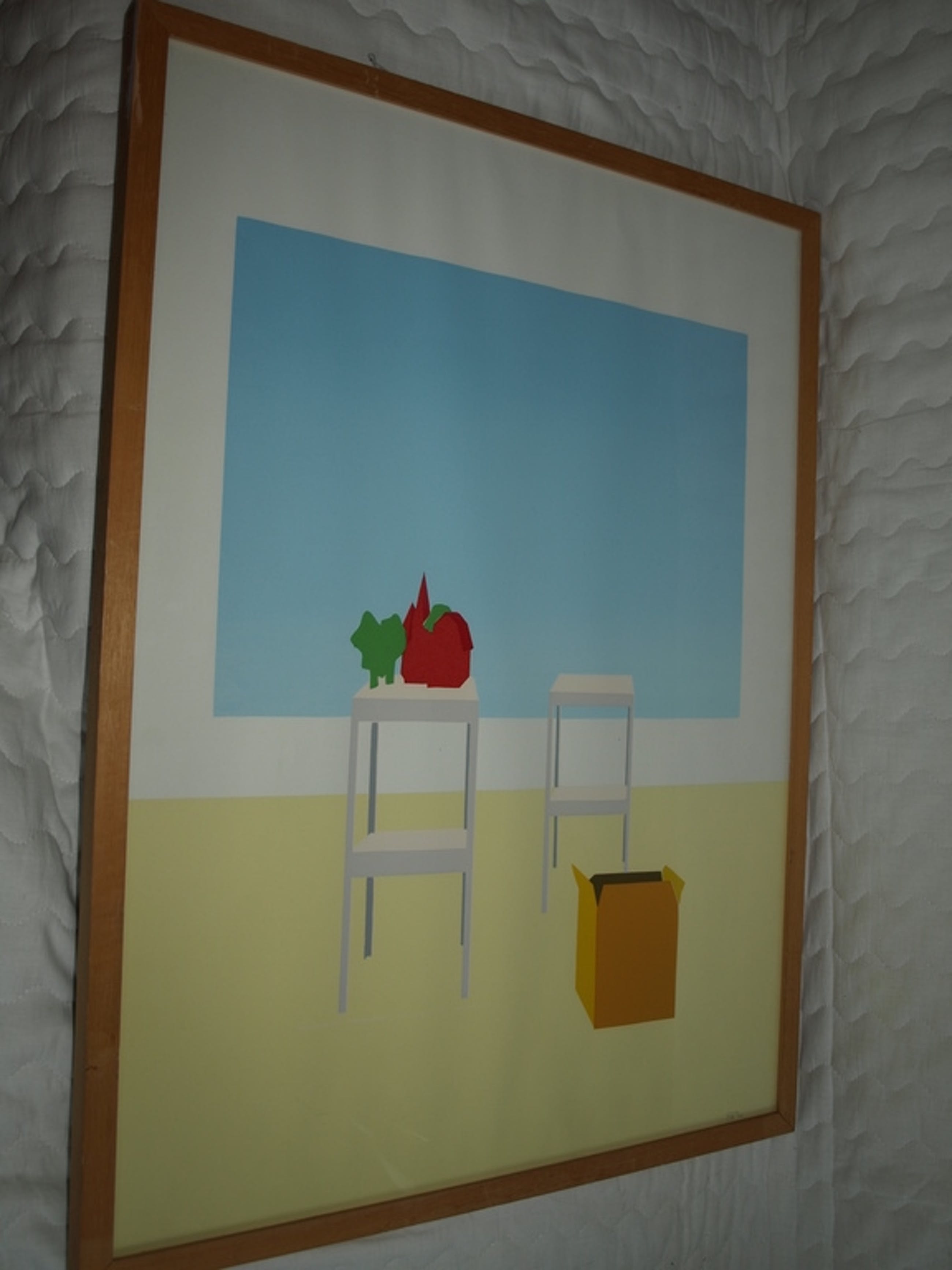 Een zeefdruk van Wil Klaassen: “Dorp”. Een “Frans” werk van de kunstenaar.