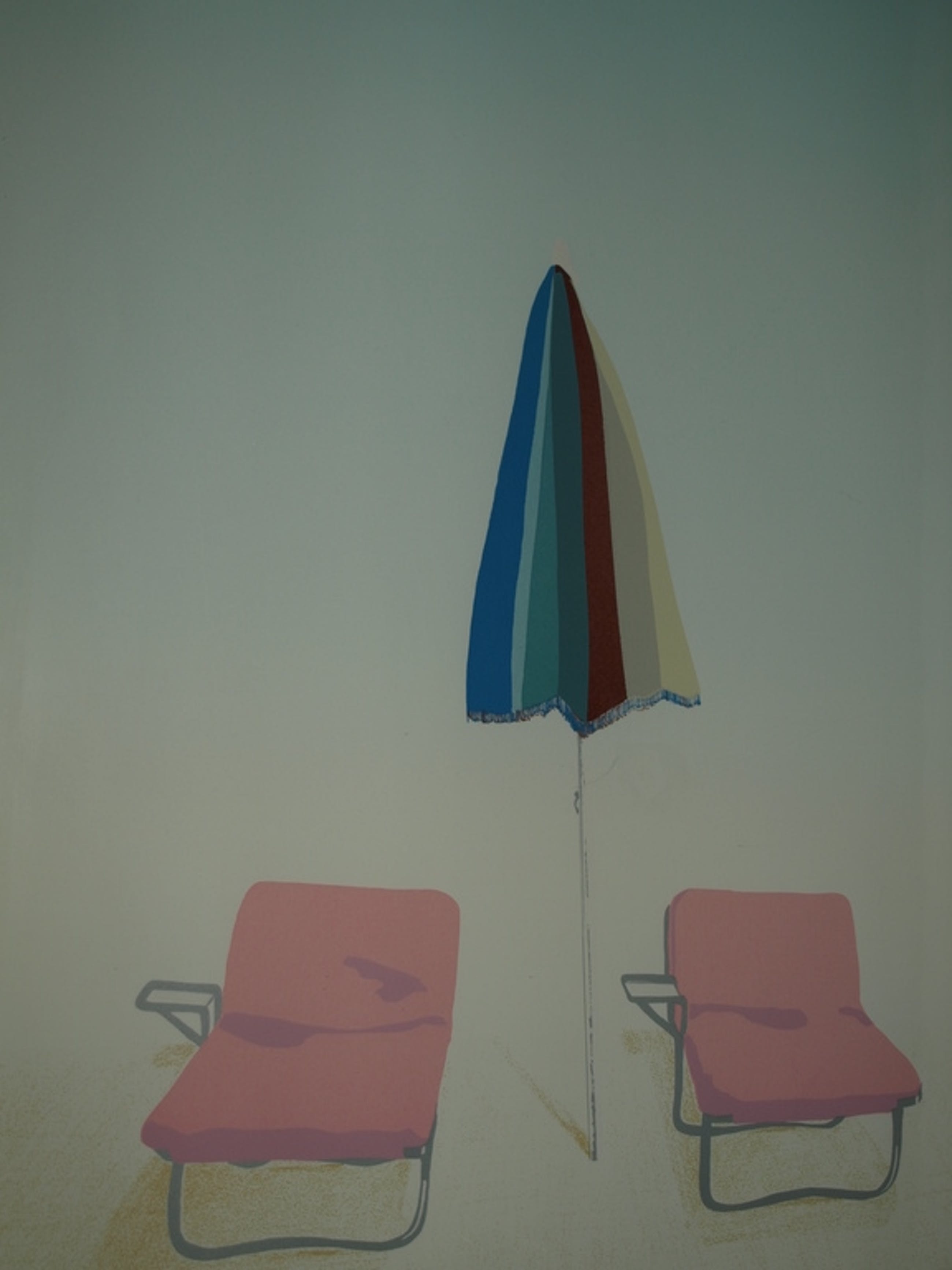 Een zeefdruk van Wil Klaassen: “Parasol”. Een “Frans” werk van de kunstenaar.