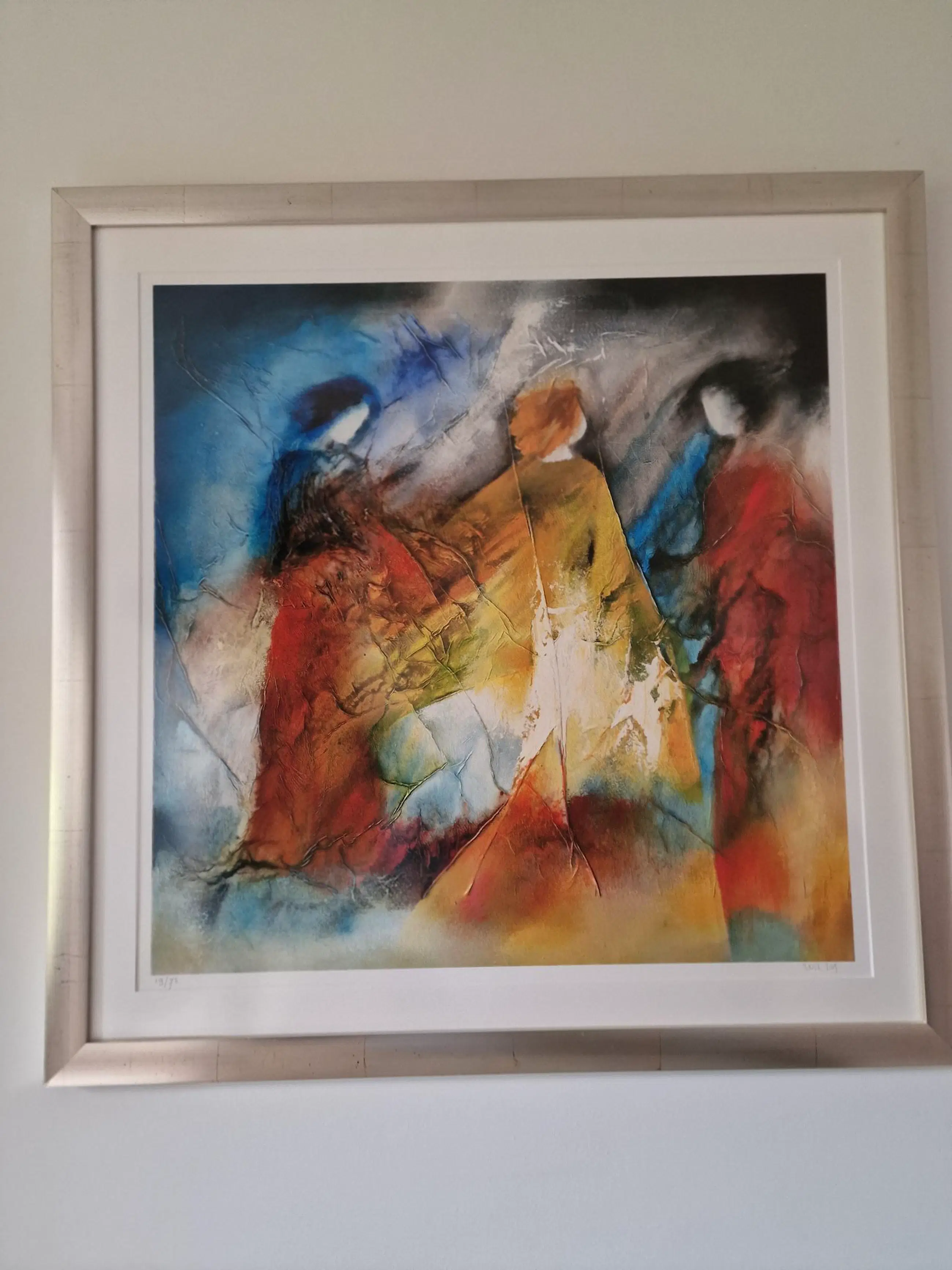 Prachtige giclée van Wil Lof. De titel van dit werk is Sophia. ( 70_06_01) Het is nr. 19 in een oplage van 75 stuks. Beeldmaat is 70 x 70 cm. Papiermaat is 90 x 90 cm. De prijs is voor de giclée zonder lijst. Bij interesse kan de lijst worden overgenomen. Het werk is ingelijst in een handgemaakte houten lijst met een zilverachtige glow, wat het werk extra accentueert. Verzending of afhaling gebeurt in overleg. Verzending voor enkel de giclée is mogelijk. De standaardprijzen die daarvoor worden weergegeven zijn enkel voor de verzending en kunnen lichtjes afwijken. De prijs voor een eventuele koker is niet inbegrepen. Bij interesse voor de giclée inclusief de lijst, kan het werk enkel afgehaald worden.