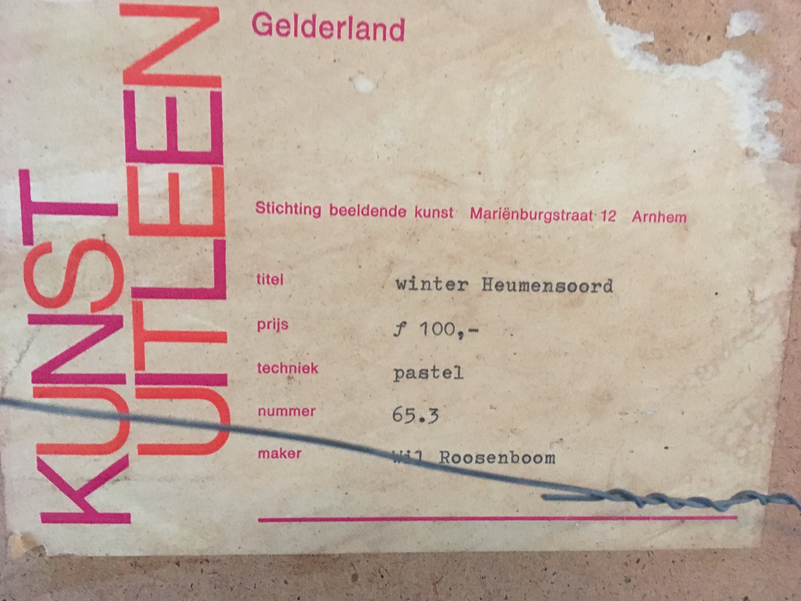 Het werk is af te halen op locatie. Als koper dient u zelf verpakkingsmateriaal mee te nemen. De locatie is: Overveen, Nederland