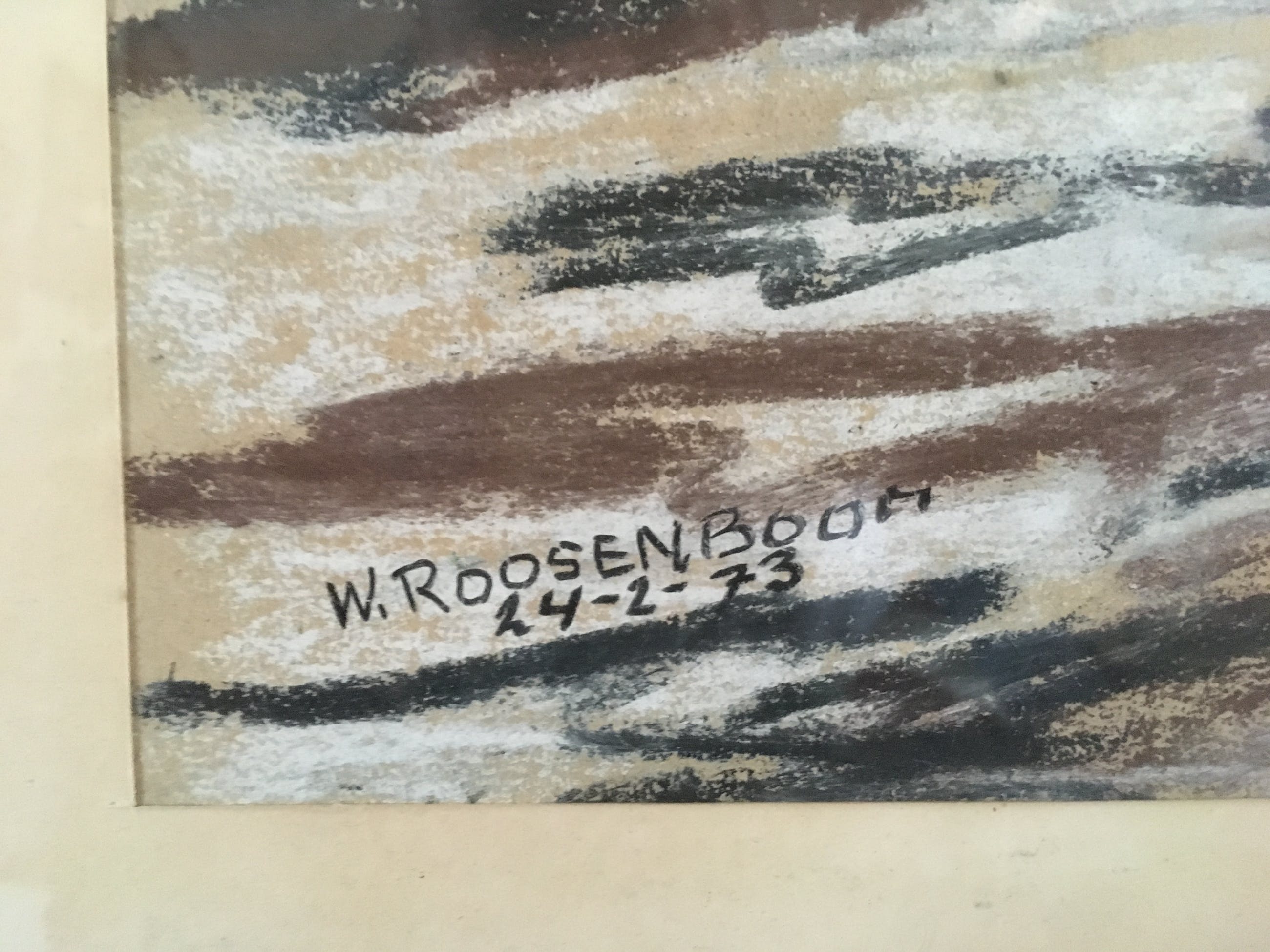 Mooie pastel van Wil Roosenboom, gesigneerd en gedateerd 24 februari 1973. Goede conditie van het werk, alsook van de lijst.
