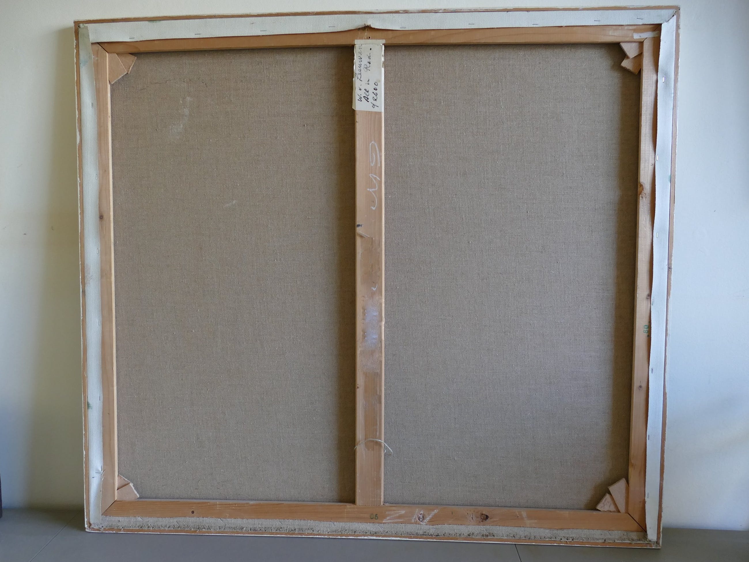 Het doek verkeert in goede staat en heeft een witte smalle houten omlijsting.