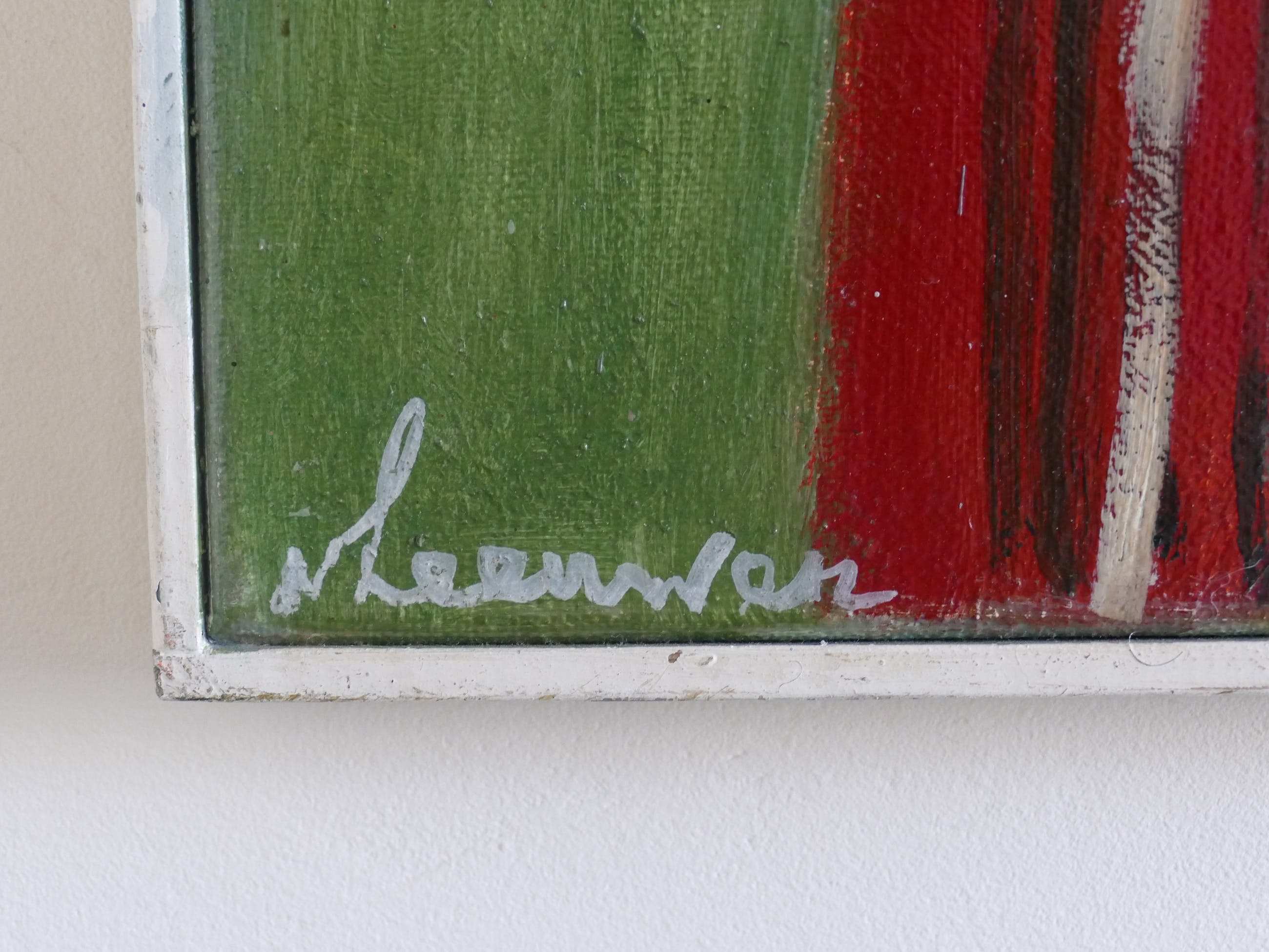 ' Gevoel voor kleur en een poetische voordracht' zo omschrijft Willem Sandberg de stijl van Leeuwen. Zelf noemt hij het ' progressief expressionistisch ' Het aangeboden werk is hier een goed voorbeeld van..