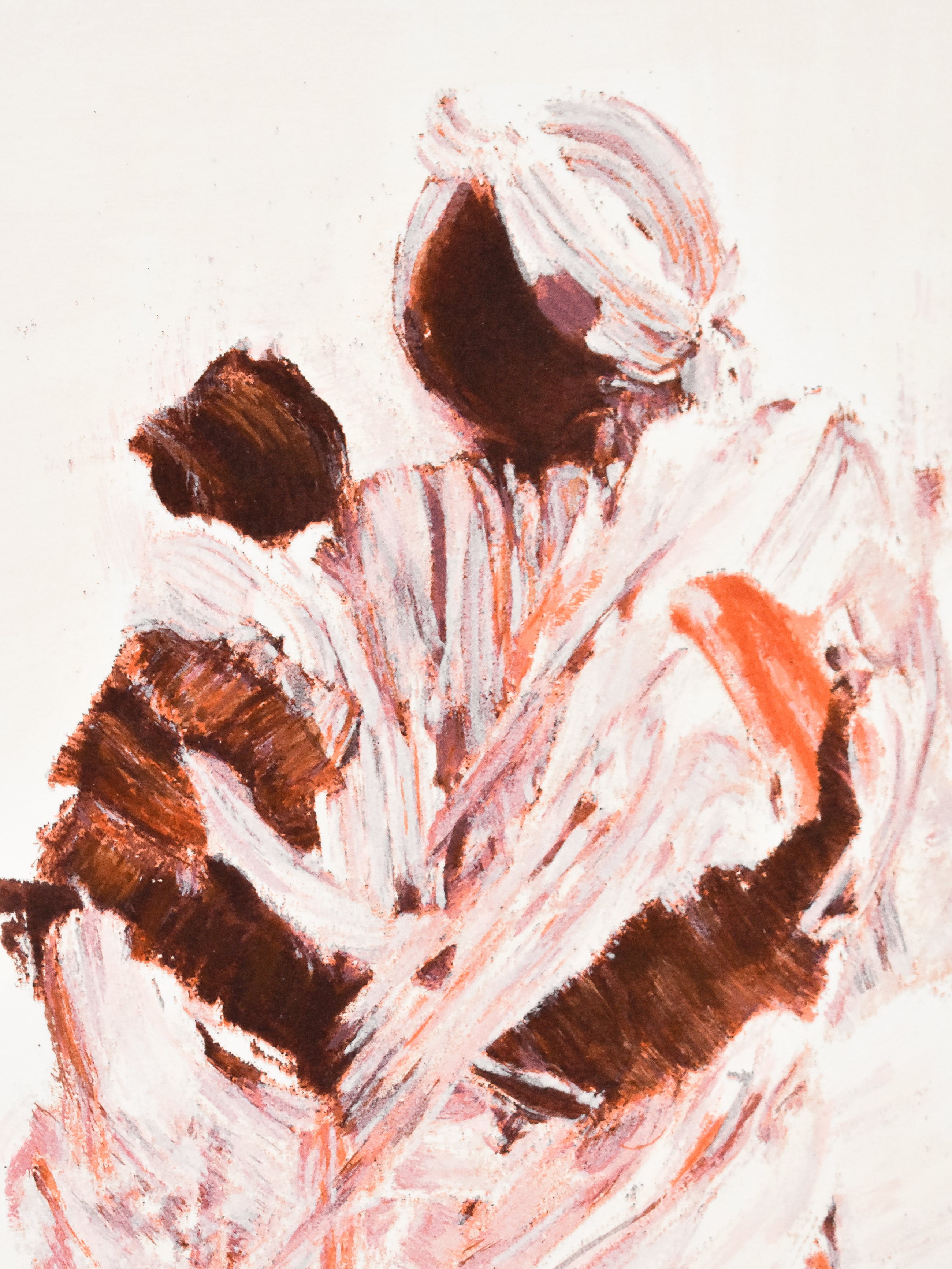 Wil Willemsen (1943) is gefascineerd door mensen. Mensen op straat, op hun werk en tijdens het sporten. Ook in dit werk heeft Willemsen de samenkomst tussen personen centraal gezet, wat gezien de huidige tijd direct een diepere lading met zich meebrengt. Dit alles maakt dit imposante kleurrijke originele werk tot een waar spektakel stuk voor elke woonkamer.