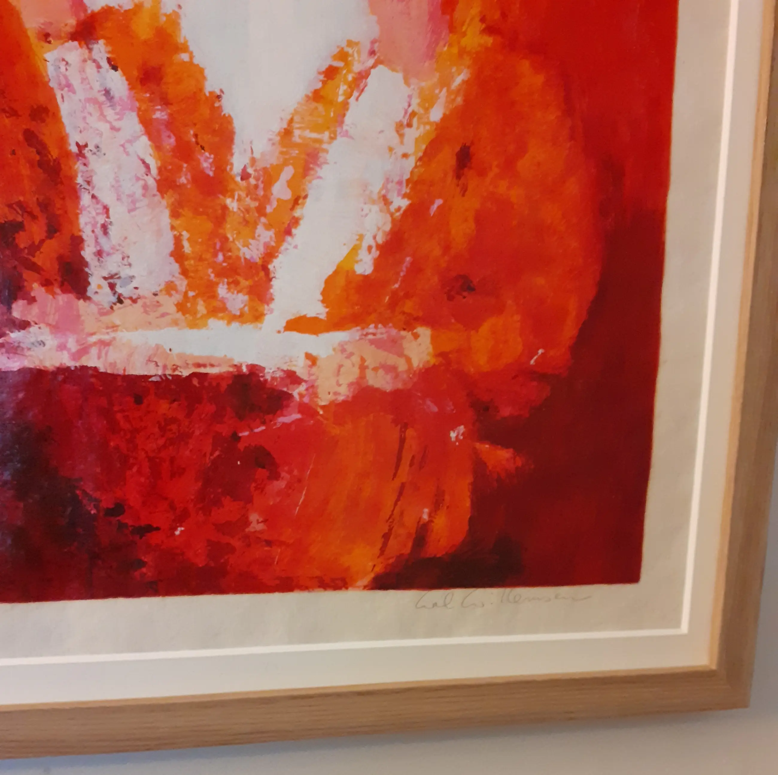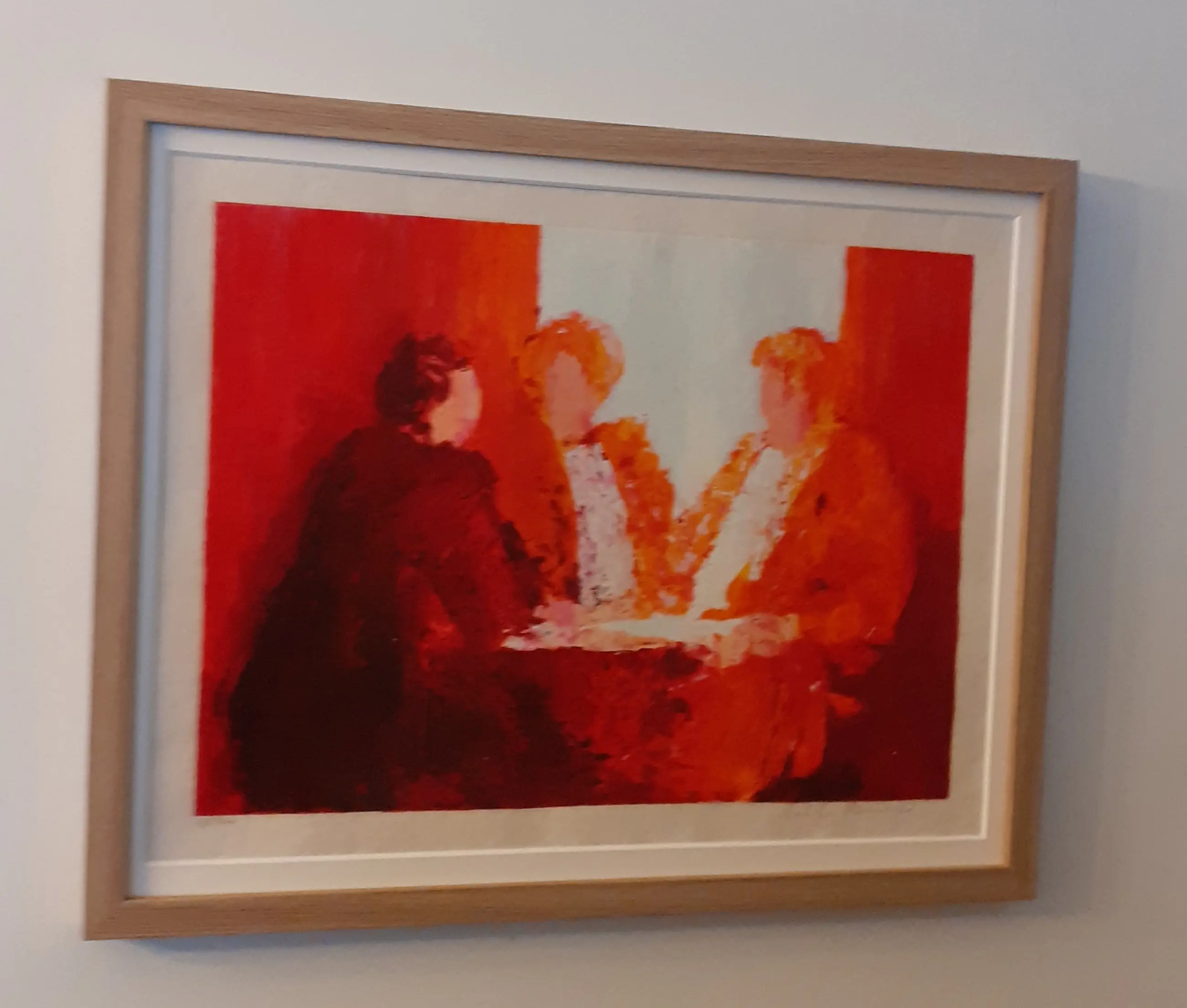 Zeefdruk op handgeschept papier in warme kleuren. Handgesigneerd en genummerd in potlood. Prachtig ingelijst in een nieuwe houten lijst met passepartout. Centraal in Willemsens werk staan mensen in het dagelijks leven.